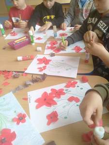 Dzieci z grupy ,,Deszczowe Kropelki" zrealizowały zadanie majowe z projektu ,,Oto Halabała zna go Polska cała". Wykonały pracę plastyczną pt,, Maki".