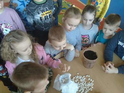 Chcąc przyspieszyć przyjście wiosny przedszkolaki z grupy ,,Deszczowe Kropelki” postanowiły założyć zielony ogródek w sali. Przed przystąpieniem do pracy dzieci poznały warunki potrzebne roślinom do wzrostu. Posadziły cebulę na szczypior i fasolę. Po podlaniu rośliny zostały...