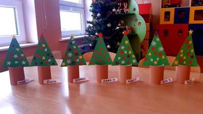 22 grudnia "Tęczowe Nutki" wykonały pracę plastyczną pt.: "Ekologiczna choinka". Jest to kolejne zadanie z projektu "Świat przyrody w oczach dziecka". Podczas zajęć przedszkolaki śpiewały kolędy.