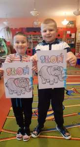 27 października Tęczowe Nutki zrealizowały temat "Jak pije słoń?" z projektu "Mamo, tato wolę wodę". Dzieci dowiedziały się, co piją słonie, jak piją i gdzie mieszkają. Podczas zajęć wykonały doświadczenie ze szklanką wody i słomką. Na koniec pokolorowały rysunek słonia.