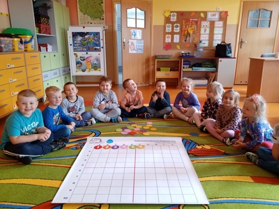 Realizując temat kompleksowy "Biedronki" dostrzegały zmiany zachodzące w przyrodzie jesienią w sadzie i ogrodzie, nazywały owoce i warzywa, porządkowały według gatunków oraz wykonanych z nich przetworów. Kształtowały właściwe nawyki żywieniowe. Dzieci pogłębiły swoją wiedzę...