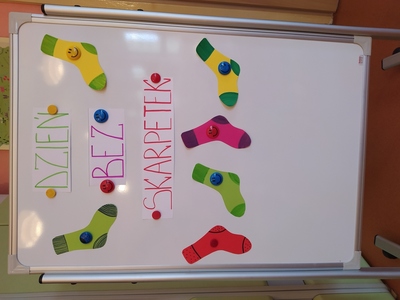 21 października obchodziliśmy bardzo nietypowe święto- Dzień Bez Skarpetek. Mimo, że pogoda za oknem nie rozpieszcza to w naszej sali od rana odczuwało się wakacyjny klimat. Zaraz po śniadaniu wszyscy zdjeliśmy skarpetki i rozpoczeliśmy zabawy na dywanie. Dzieci segregowały i dopasowały skarpety...
