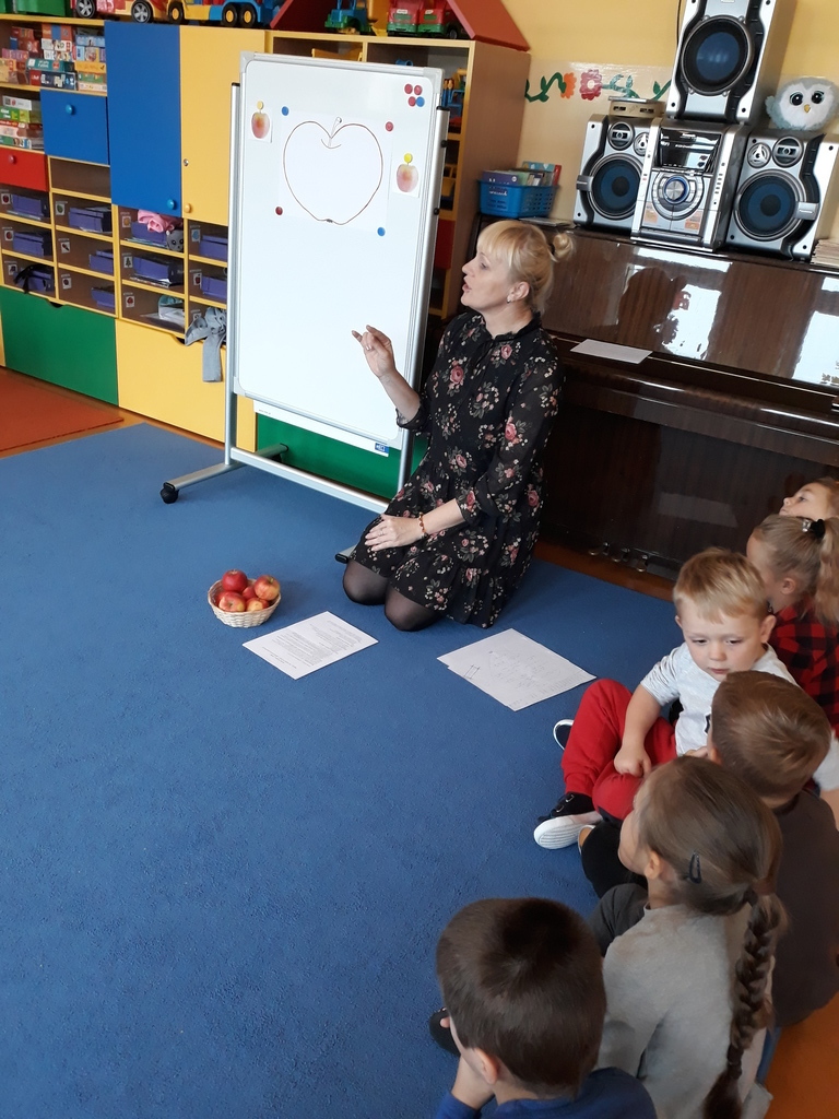 3 października grupy "Tęczowe Nutki" i "Deszczowe Kropelki" rozpoczęły "Projekt badawczy - JABŁKO". Metoda projektów zaliczana jest do metod praktycznych i polega na samodzielnym realizowaniu przez dzieci zadania przygotowanego przez nauczyciela na podstawie wcześniej ustalonych założeń. Projekt badawczy ma na celu rozwijać wiedzę i umiejętności dzieci. Jest on najbardziej ambitną i skuteczną metodą edukacji, czyli samodzielną pracą dzieci, indywidualną lub grupową nad danym tematem. Może trwać kilka dni, tygodni lub miesięcy. Naszym celem jest pomoc dzieciom w budowaniu bogatego obrazu świata. Podczas realizacji projektu badawczego, dzieci stają się czujnymi poszukiwaczami wiedzy i aktywnymi badaczami otaczającego świata. Podejmowane działania pozwalają dzieciom poznać poszczególne zagadnienia wieloaspektowo. W I etapie projektu dzieci wspólnie ze swoimi Paniami ustaliły listę pytań - siatkę - dotyczącą jabłka, które je nurtują i na które chcą uzyskać odpowiedź. Powodzenia i udanej zabawy!