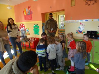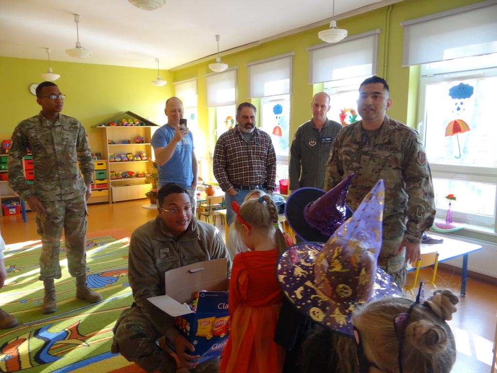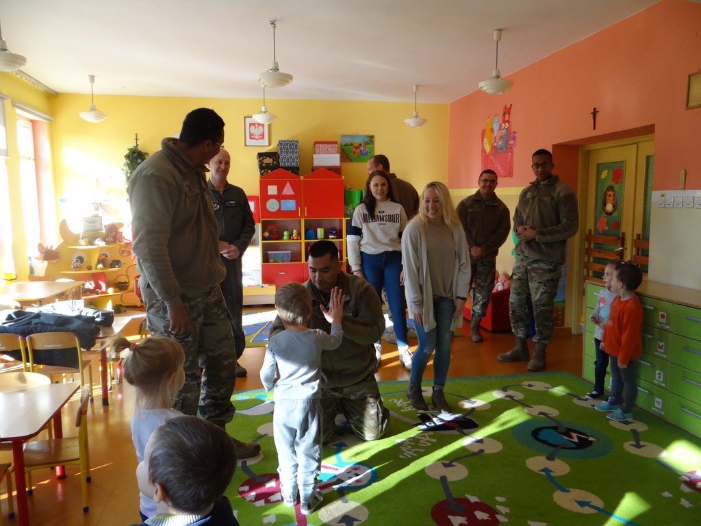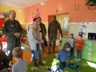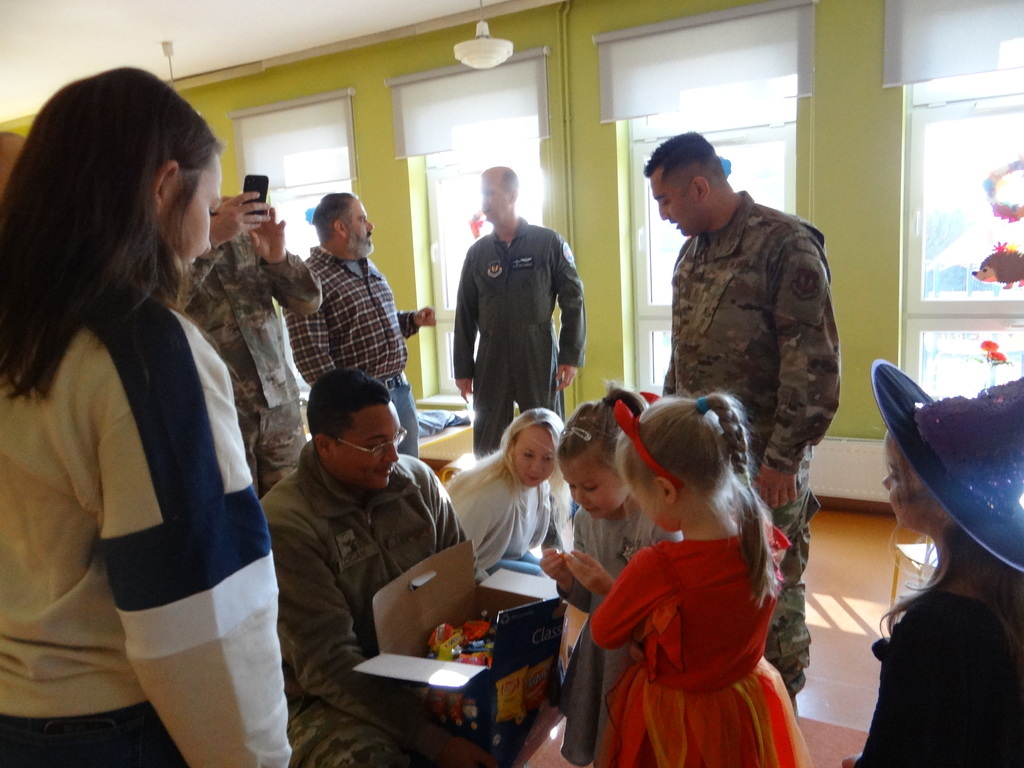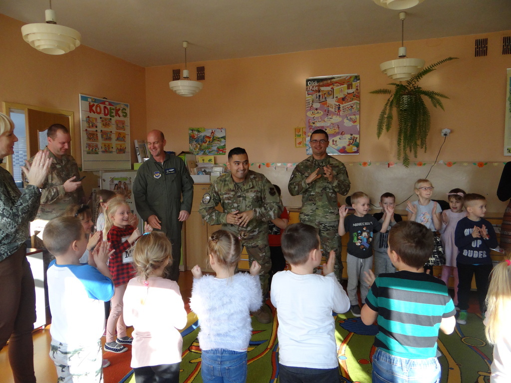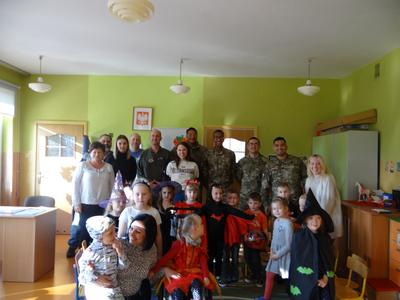 Podczas pobytu w Polsce, amerykańscy żołnierze poznają różne polskie tradycje i zwyczaje. W związku z powyższym nadszedł czas na rewanż i podzielenie się z przedszkolakami zwyczajem związanym z maskaradą, odnoszącą się do Halloween. Dnia 31 października amerykańscy Goście pogłębili wiedzę dzieci o treści, jakie symbolizują to amerykańskie święto. Głównym symbolem Halloween jest wydrążona i podświetlona od środka dynia z wyszczerbionymi zębami. Inne popularne motywy to duchydemonyzombiewampiryczarownice, trupie czaszki, nietoperze, czarne koty itp. Tego dnia mali i duzi wymieniali się wiedzą i w zabawowy sposób poznawali polską i amerykańską tradycję związaną ze świętem zmarłych.