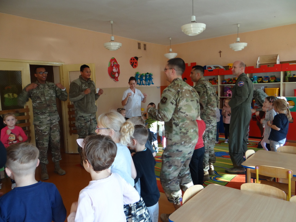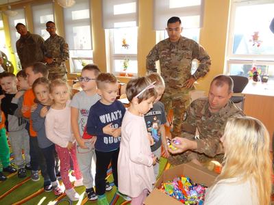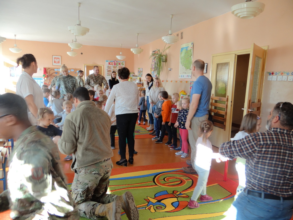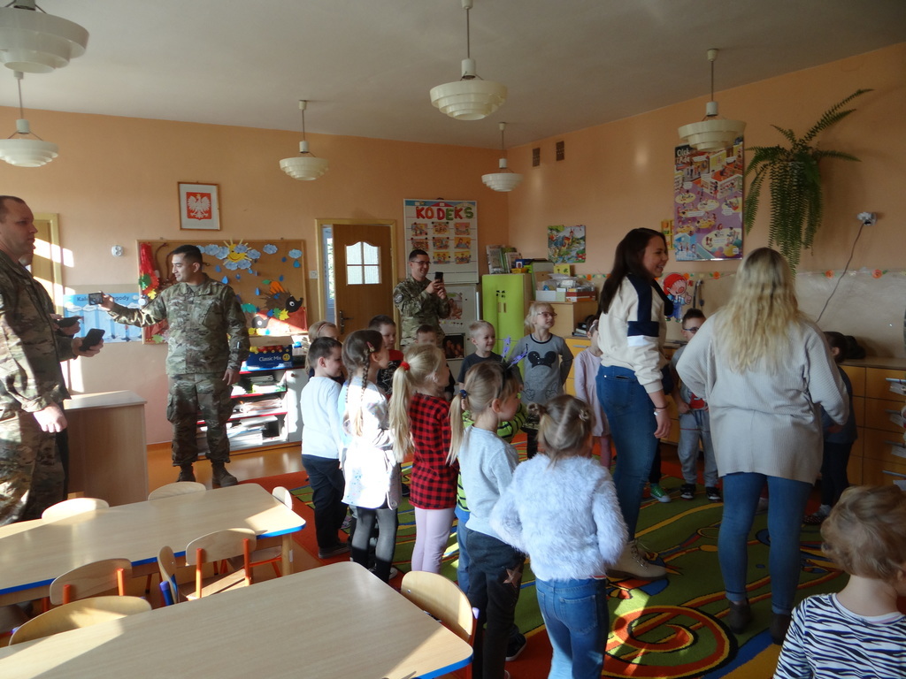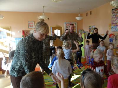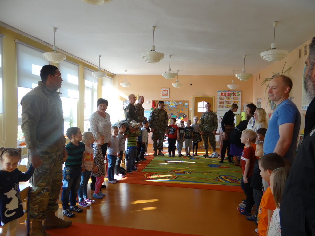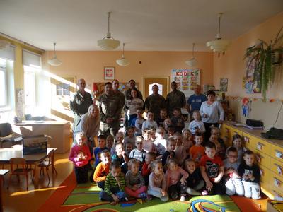 Podczas pobytu w Polsce, amerykańscy żołnierze poznają różne polskie tradycje i zwyczaje. W związku z powyższym nadszedł czas na rewanż i podzielenie się z przedszkolakami zwyczajem związanym z maskaradą, odnoszącą się do Halloween. Dnia 31 października amerykańscy Goście pogłębili wiedzę dzieci o treści, jakie symbolizują to amerykańskie święto. Głównym symbolem Halloween jest wydrążona i podświetlona od środka dynia z wyszczerbionymi zębami. Inne popularne motywy to duchydemonyzombiewampiryczarownice, trupie czaszki, nietoperze, czarne koty itp. Tego dnia mali i duzi wymieniali się wiedzą i w zabawowy sposób poznawali polską i amerykańską tradycję związaną ze świętem zmarłych.