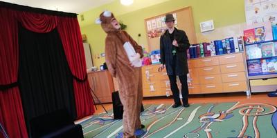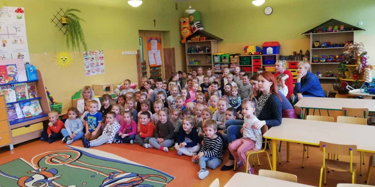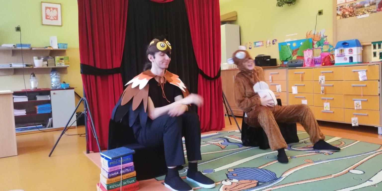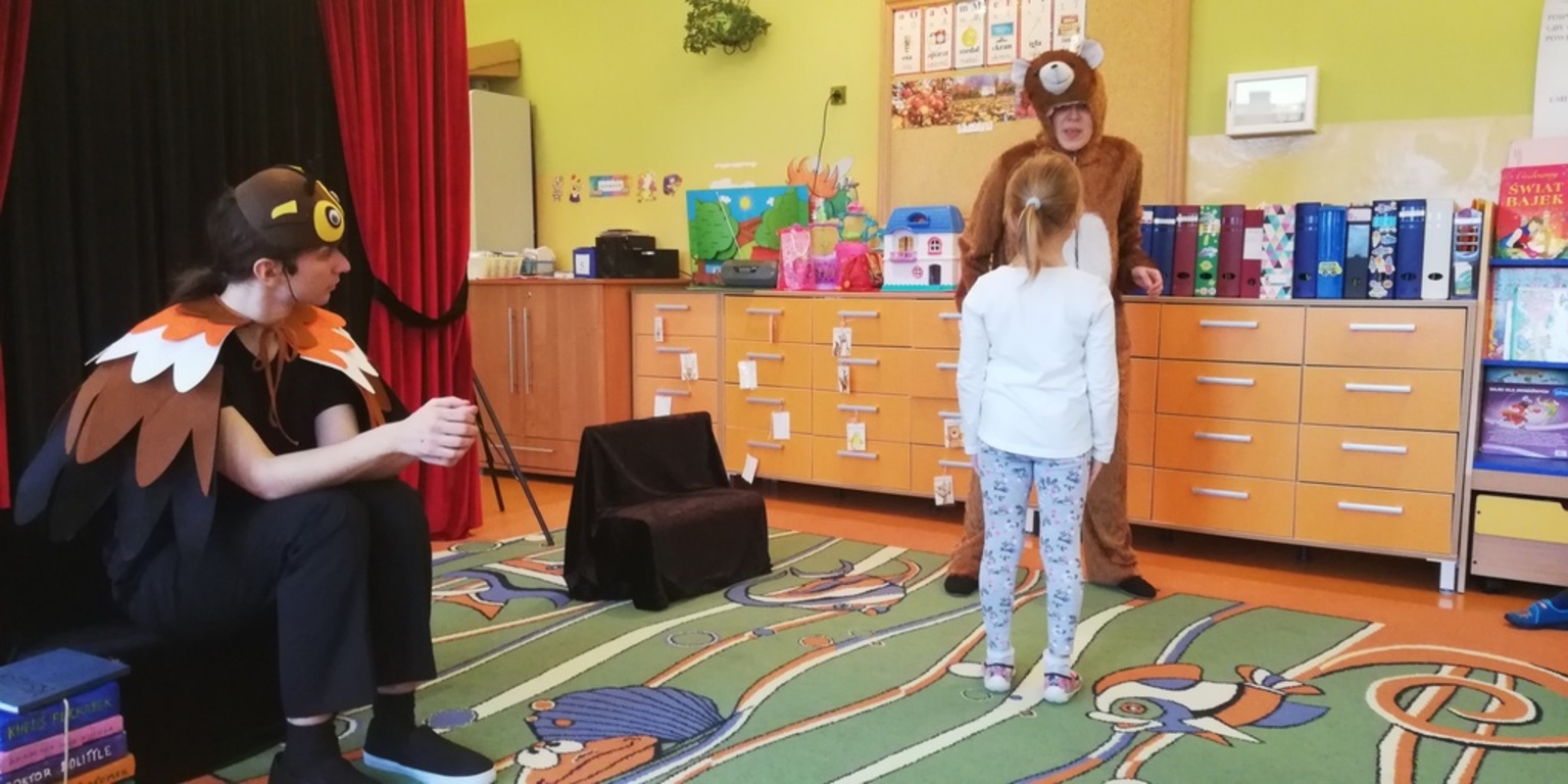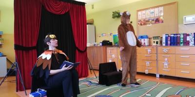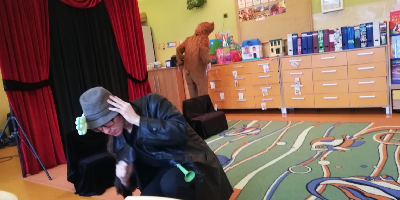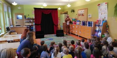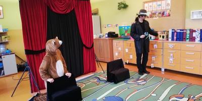5 listopada 2019r. gościliśmy w naszym przedszkolu aktorów Teatru Kurtyna z Krakowa, którzy dla najmłodszych zaprezentowali przedstawienie profilaktyczno - edukacyjne pt.: „Miś Niegrzeczniś”. Dzieci poznały rozbrykanego misia, który był bardzo niegrzeczny. Nie słuchał mamy, pani w przedszkolu i ciągle wpadał w jakieś kłopoty. Pewnego dnia Miś zrozumiał swoje złe zachowanie i postanowił się zmienić. Nie wiedział jak ma to zrobić i gdzie szukać pomocy, ale na szczęście spotkał detektywa, który uświadomił mu, że odpowiedź znajdzie czytając książki. Ta urocza bajkowa przypowieść była pełna zwrotów akcji, humoru, wesołych piosenek i wspaniałej pouczającej zabawy. Dzieci dowiedziały się, jak należy postępować w sytuacjach zwycięstwa i porażki, poznały tajniki kulturalnego zachowania się oraz uczyły się nawiązywania i podtrzymywania relacji z rówieśnikami.