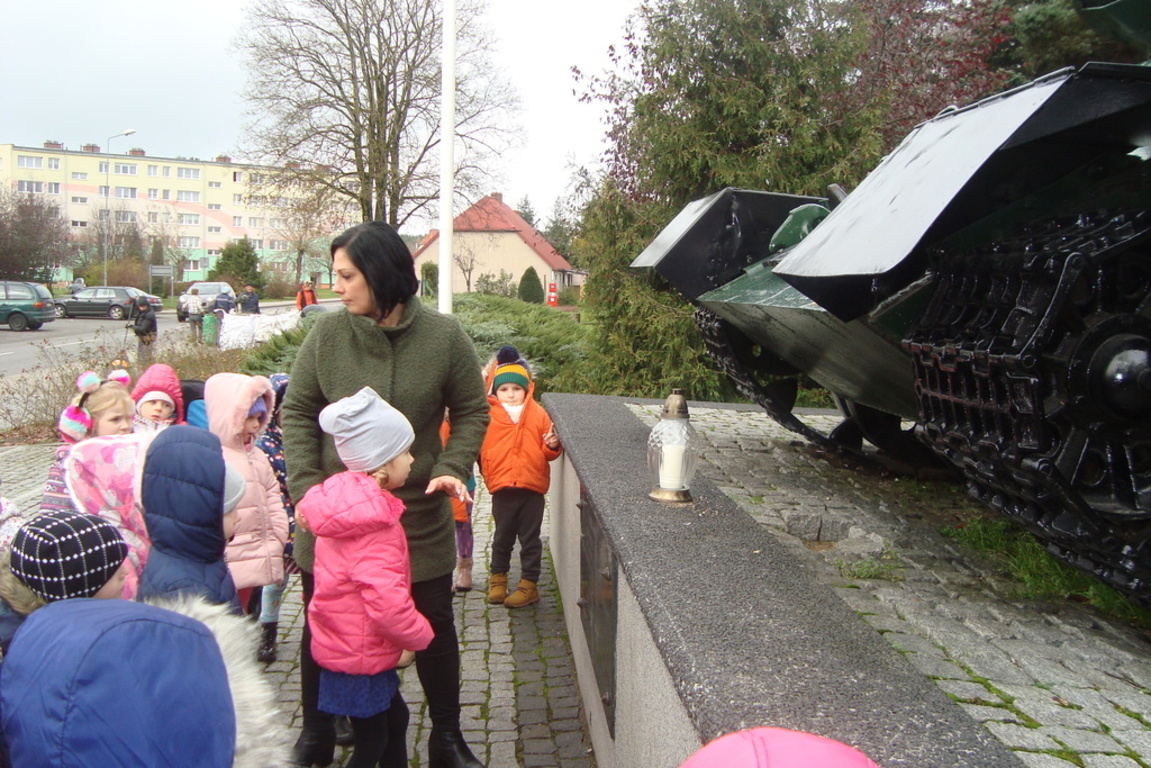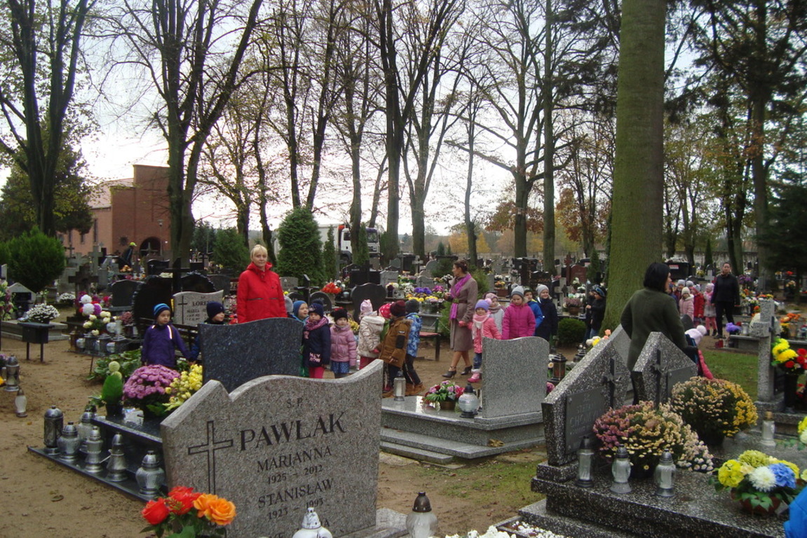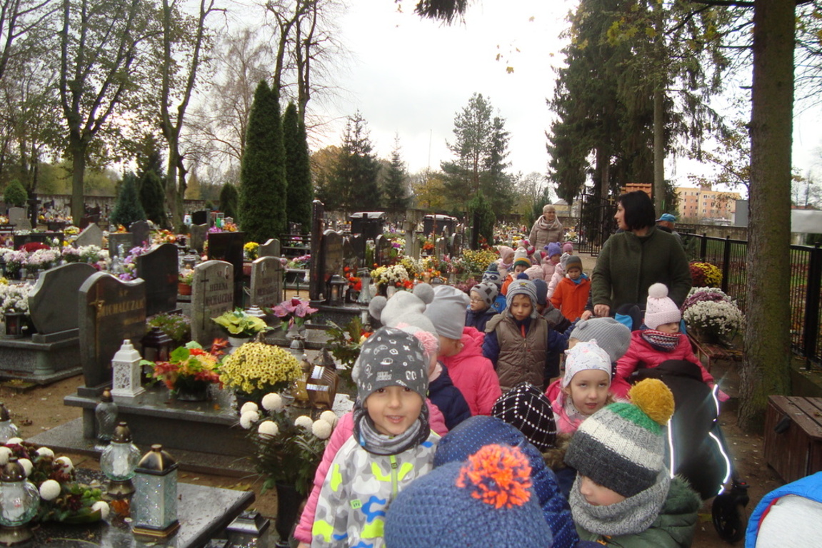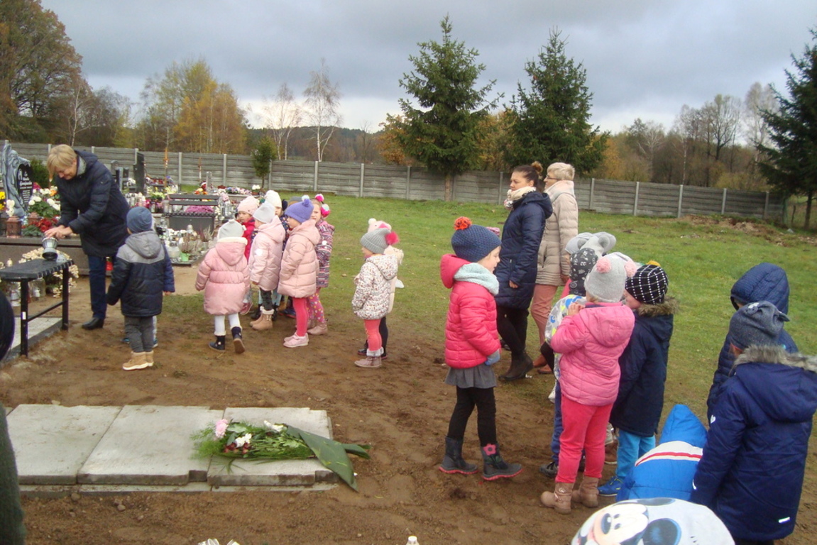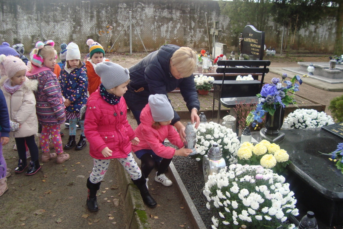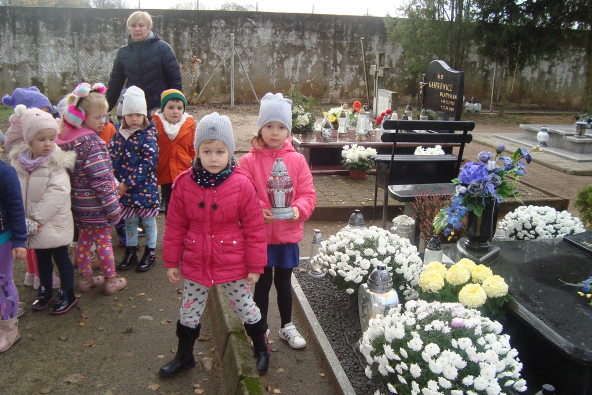 Święto Zmarłych to również dla naszych podopiecznych czas zadumy i przemyśleń o naszym życiu. Przedszkolaki oddały cześć wszystkim tym pracownikom przedszkola, którzy odeszli z tego Świata na wieczny odpoczynek. Ponadto został zapalony znicz pod pomnikiem poległych żołnierzy jako symbol pamięci i hołdu im oddanego.