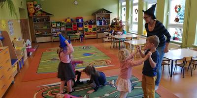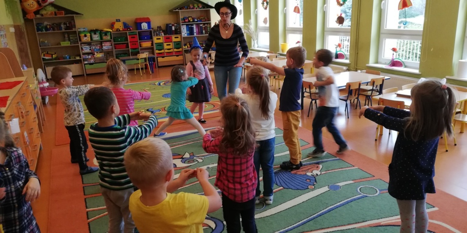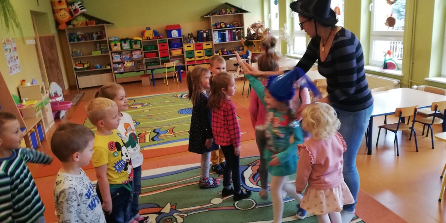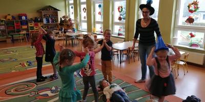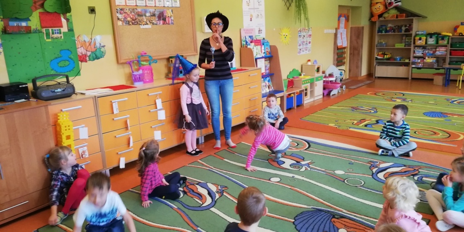12  listopada w ramach  realizacji Międzynarodowego Projektu Czytelniczego „Magiczna Moc Bajek”, czyli podróż do krainy wartości  i dziecięcej wyobraźni, do Muchomorków przyszła Mama Tosi i Zosi, która przeczytała dla całej grupy bajkę „Tupcio Chrupcio. Nie chcę jeść!” Tupcio Chrupcio to myszka, która jest małym łakomczuszkiem, ale tego wieczoru nie chce nawet spojrzeć na swoją pyszną zupkę z marchewki… Tupciowi Chrupciowi, podobnie jak dzieciom, zdarza się kaprysić. Ale jego mama umie sprawić, że Tupcio znów jest grzeczną, posłuszną myszką. Muchomorki już wiedzą co mama zrobiła, żeby jej dziecko jadło pyszne jedzonko. Po przeczytaniu, na dzieci czekały pytania, które przygotowała mama do wysłuchanej bajki. Na koniec, zaproszony gość zamienił się we wróżkę, która potrzebowała asystentki do pomocy.  W sali zaczęły się czary… Dzieci najpierw stały się balonami potem kamieniami następnie kartami oraz sprężynami.  Muchomorki dały Mamie Tosi i Zosi  upominek w ramach podziękowania za przeczytanie bajki. Jeszcze raz dziękujemy i zachęcamy kolejnych rodziców do czytania bajek dzieciom.