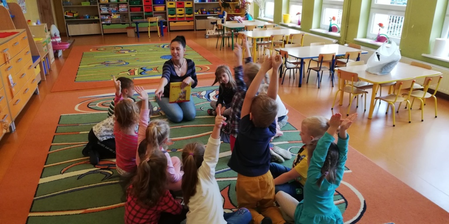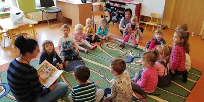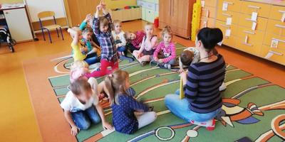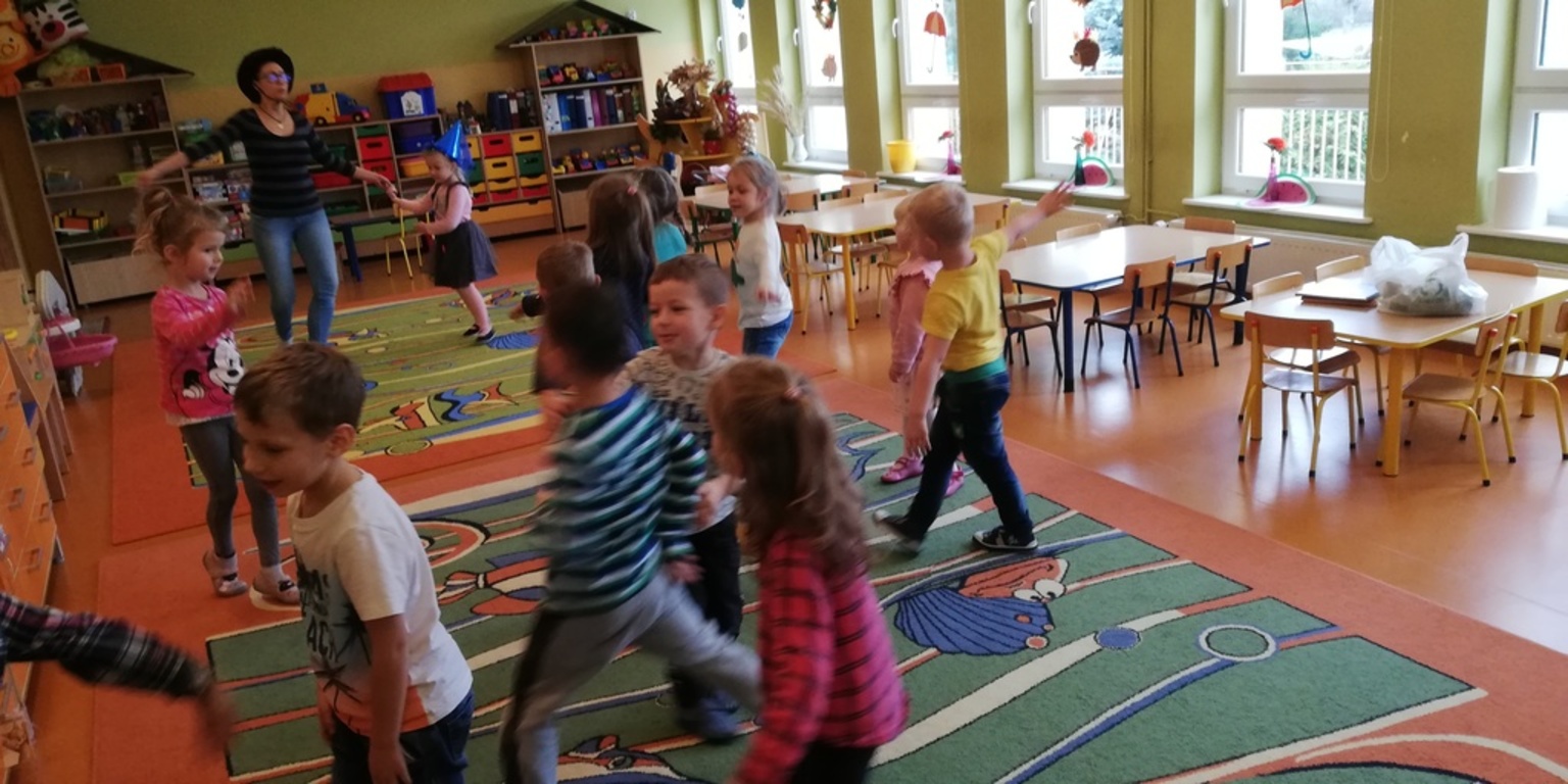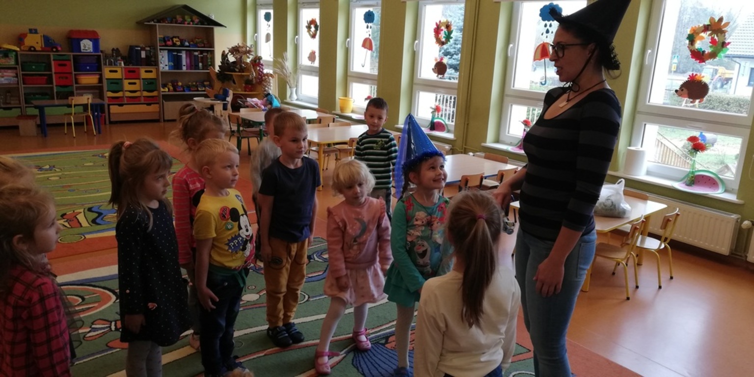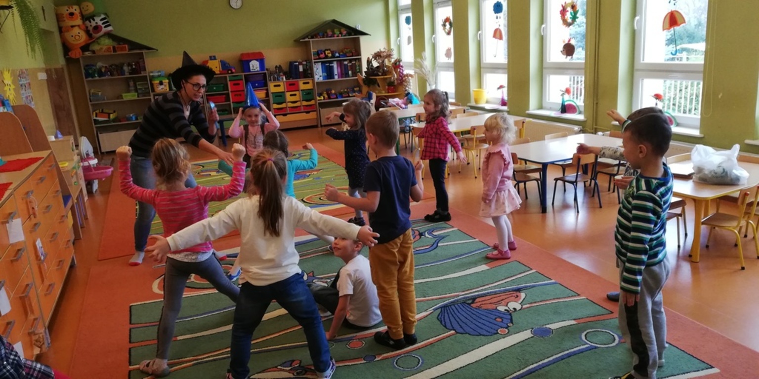 12  listopada w ramach  realizacji Międzynarodowego Projektu Czytelniczego „Magiczna Moc Bajek”, czyli podróż do krainy wartości  i dziecięcej wyobraźni, do Muchomorków przyszła Mama Tosi i Zosi, która przeczytała dla całej grupy bajkę „Tupcio Chrupcio. Nie chcę jeść!” Tupcio Chrupcio to myszka, która jest małym łakomczuszkiem, ale tego wieczoru nie chce nawet spojrzeć na swoją pyszną zupkę z marchewki… Tupciowi Chrupciowi, podobnie jak dzieciom, zdarza się kaprysić. Ale jego mama umie sprawić, że Tupcio znów jest grzeczną, posłuszną myszką. Muchomorki już wiedzą co mama zrobiła, żeby jej dziecko jadło pyszne jedzonko. Po przeczytaniu, na dzieci czekały pytania, które przygotowała mama do wysłuchanej bajki. Na koniec, zaproszony gość zamienił się we wróżkę, która potrzebowała asystentki do pomocy.  W sali zaczęły się czary… Dzieci najpierw stały się balonami potem kamieniami następnie kartami oraz sprężynami.  Muchomorki dały Mamie Tosi i Zosi  upominek w ramach podziękowania za przeczytanie bajki. Jeszcze raz dziękujemy i zachęcamy kolejnych rodziców do czytania bajek dzieciom.