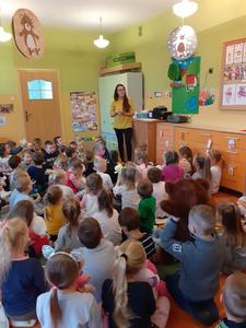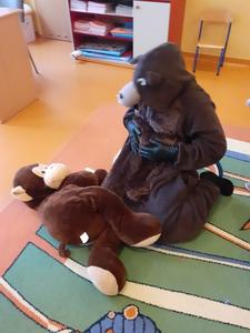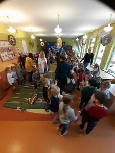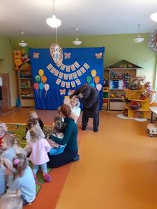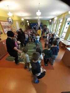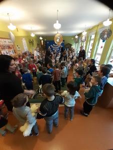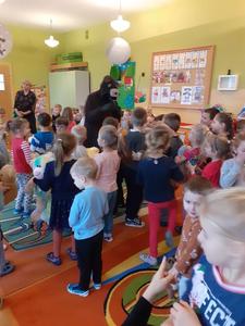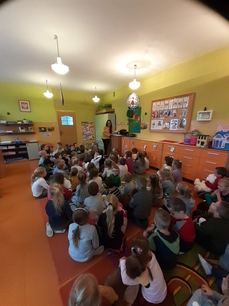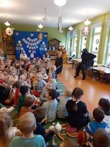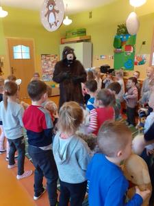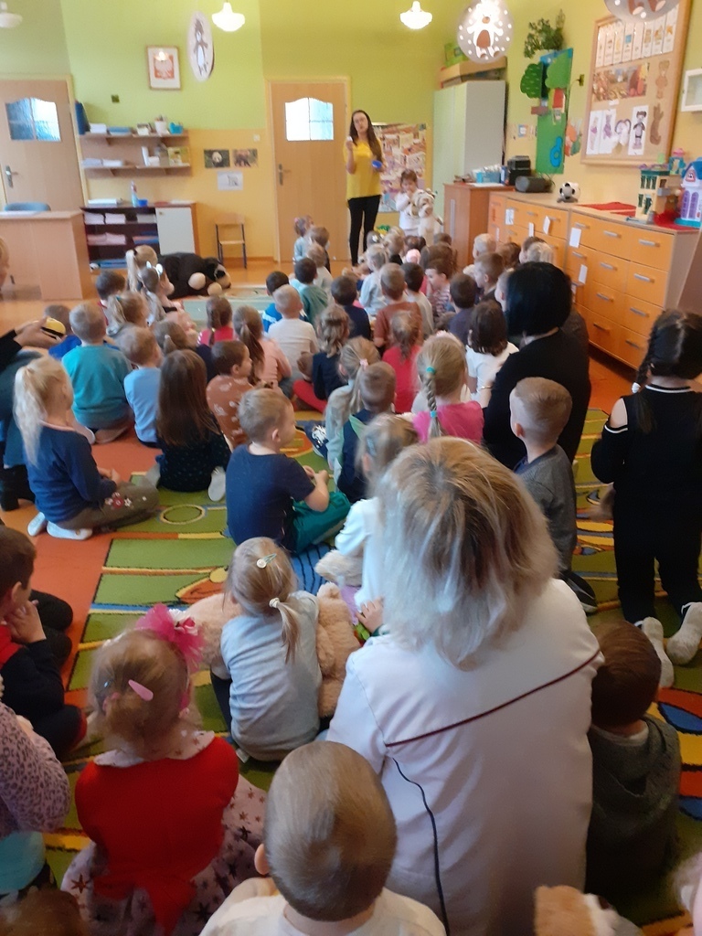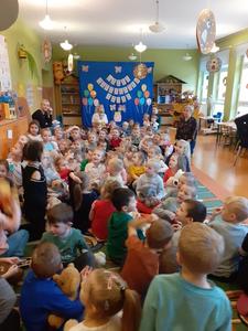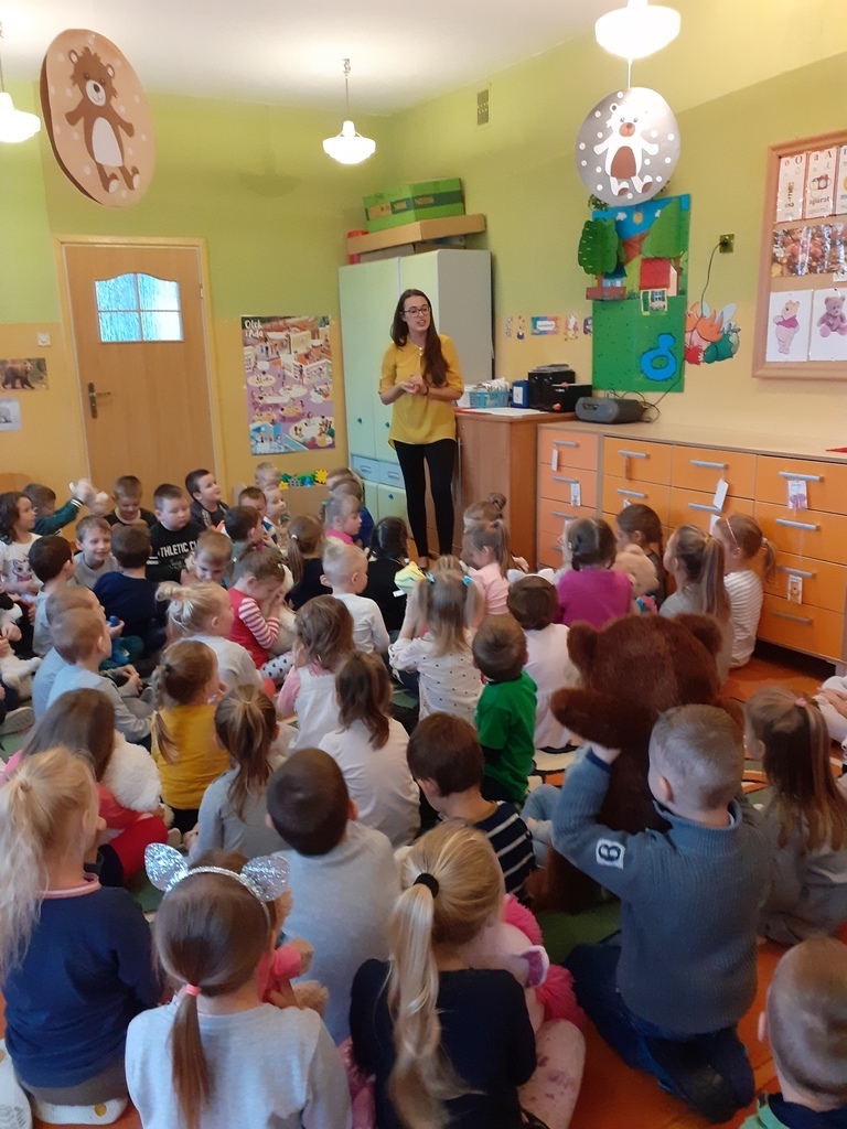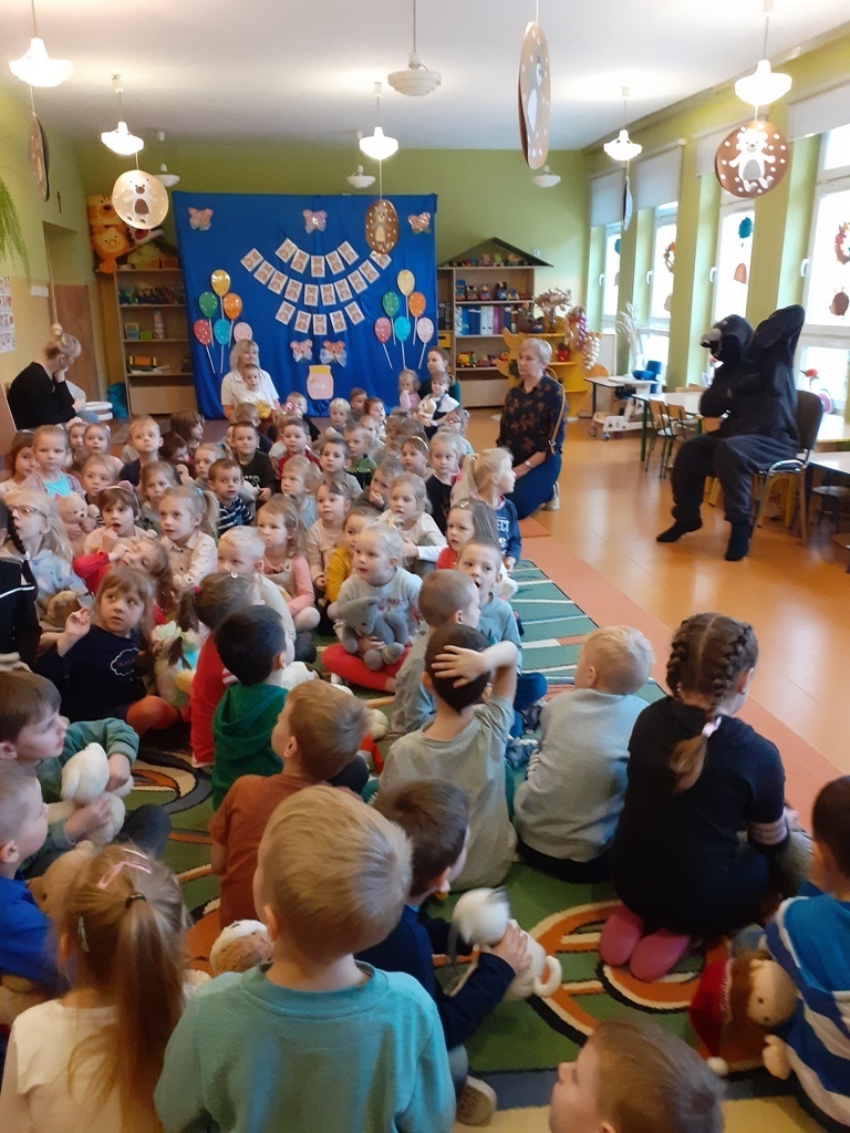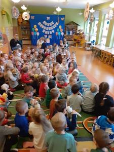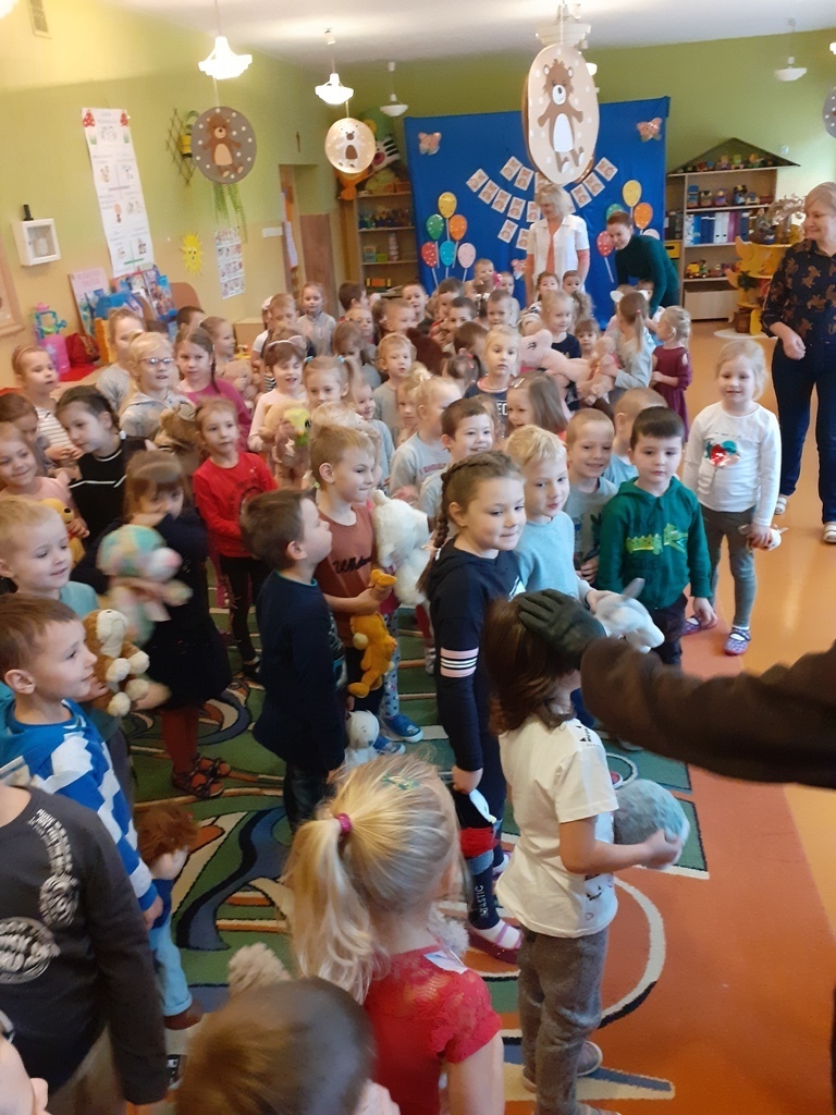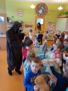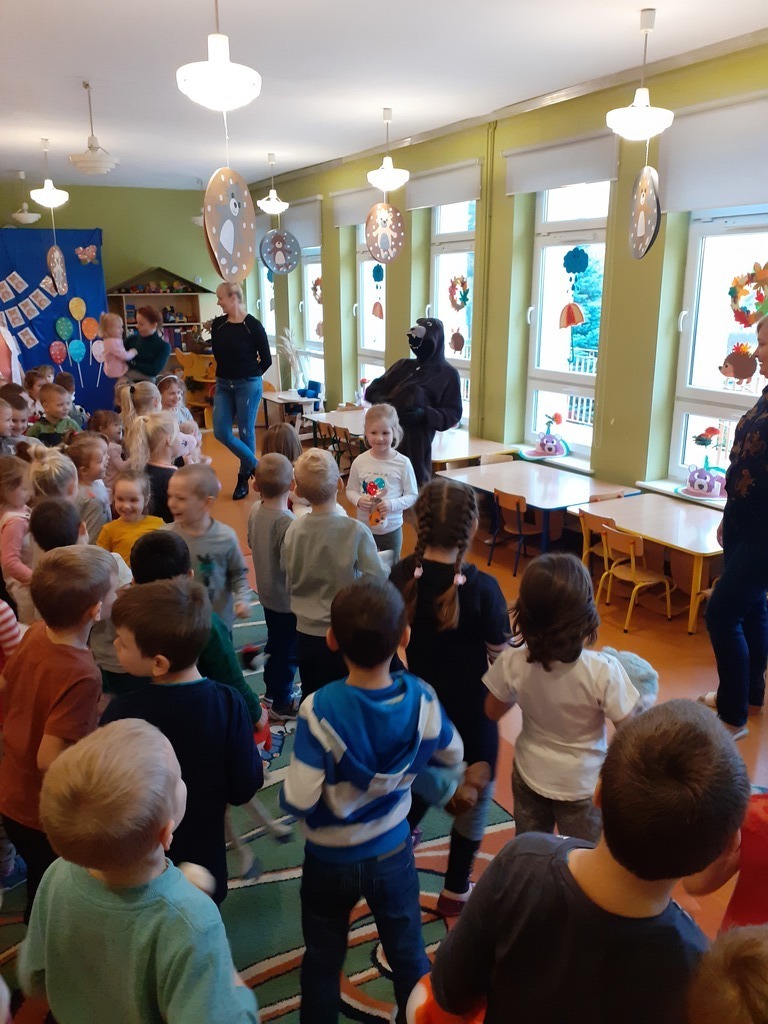 25 listopada to dzień, kiedy na świecie obchodzi się urodziny pluszowego misia. Miś jest przyjacielem dzieci, czy wypada zapomnieć o urodzinach przyjaciela? Oczywiście, że nie!! Z tej właśnie okazji w naszym przedszkolu odbyły się obchody Światowego Dnia Pluszowego Misia. Każde dziecko przyniosło swojego misia-pluszaka. Zabawka ta towarzyszy dzieciom wiele lat, to nie tylko pluszowa przytulanka, to "ktoś" bardzo bliski, czuły, cierpliwy i często niezastąpiony. Na początku dzieci zaprosiły do sali Misia, by następnie mógł z nimi świętować ten ważny dzień. Dzieci dowiedziały się, że oprócz Misiów- przytulanek oraz tych, które występują w bajkach, są na świecie prawdziwe Misie. Następnie przedszkolaki przystąpiły do zabawy ruchowo – naśladowczej pt.: „Misiowe Figle” oraz zatańczyły z misiem do następujących piosenkek „Gumi Miś”, „Misie Szare” oraz „Mały misio robi bach”. Na koniec dzieci zaśpiewały dla Misia „Sto lat”. Misiowi bardzo podobała się wspólna zabawa oraz na pamiątkę chciał sobie zrobić zdjęcie z każdą grupą dzieci. Oprócz słodkich niespodzianek na dzieci czekała jeszcze jedna niespodzianka na przedszkolnym holu. Była to „Foto-budka Miś”, którą przygotowała Pani Anna Kasperska-Czech. Bardzo dziękujemy.