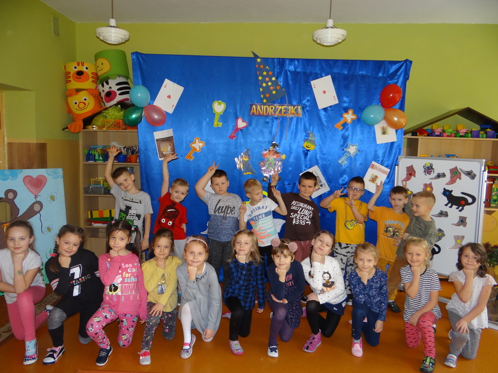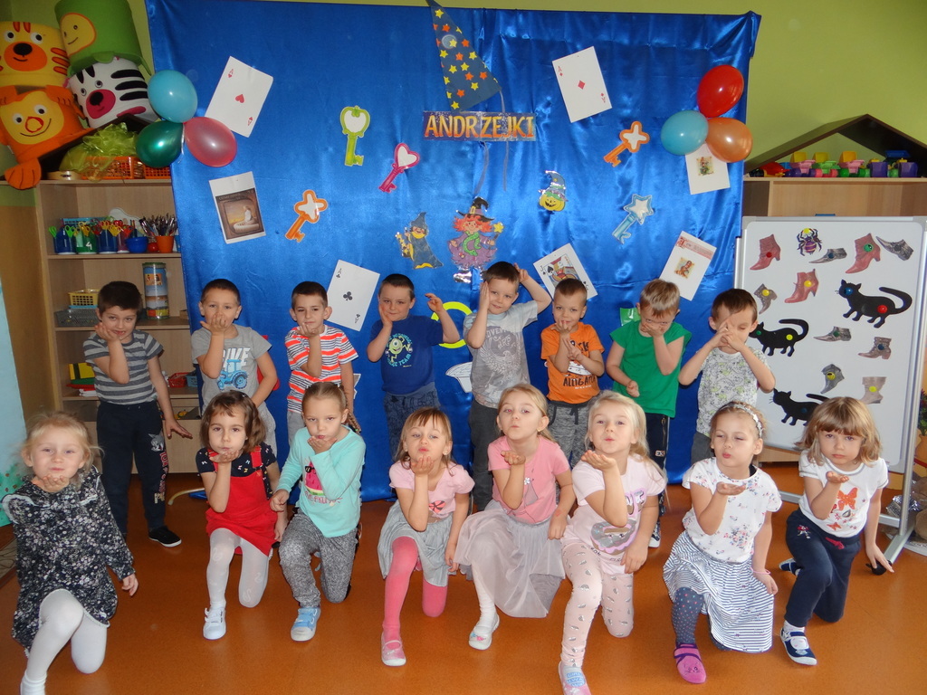 Dnia 29 listopada zebrała się nasza gromada, gdy już wieczór zapada. Chętna do zabawy w andrzejkową noc, bo dziś wróżb i magii moc. Która pierwsza za mąż wyjdzie? I do której szczęście przyjdzie? Która dziś odpowiedź na pytanie znajdzie? A która swą miłość odnajdzie? Odpowiedzi na pytania i marzenia znamy, ale na wyniki jeszcze poczekamy.