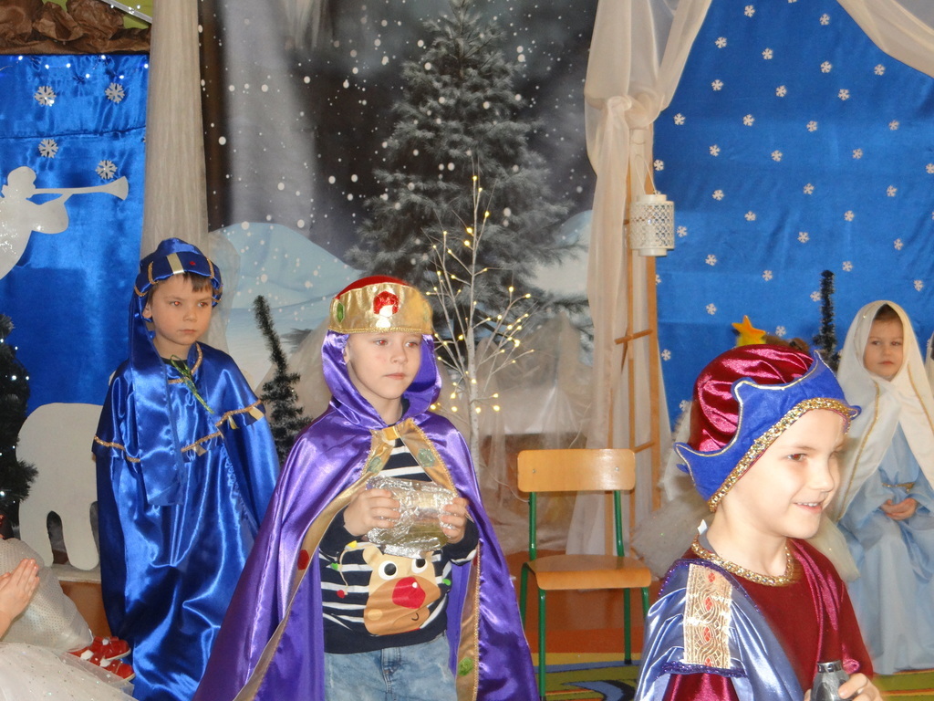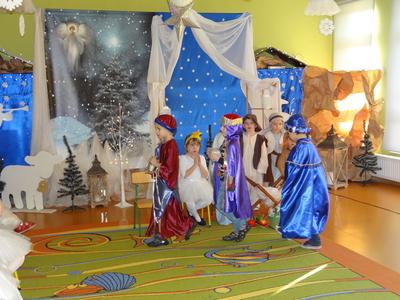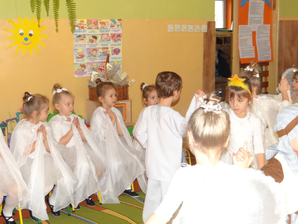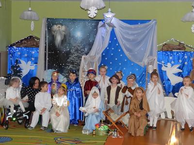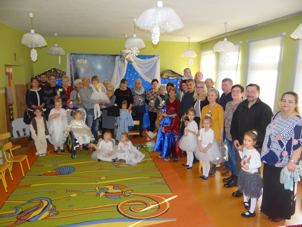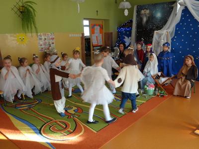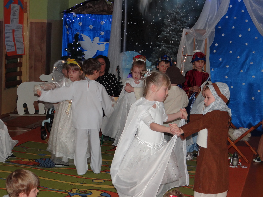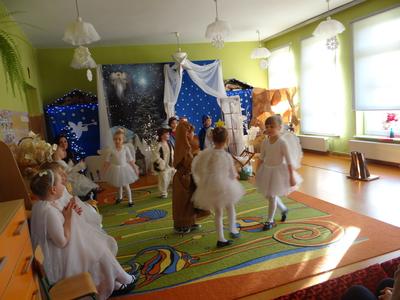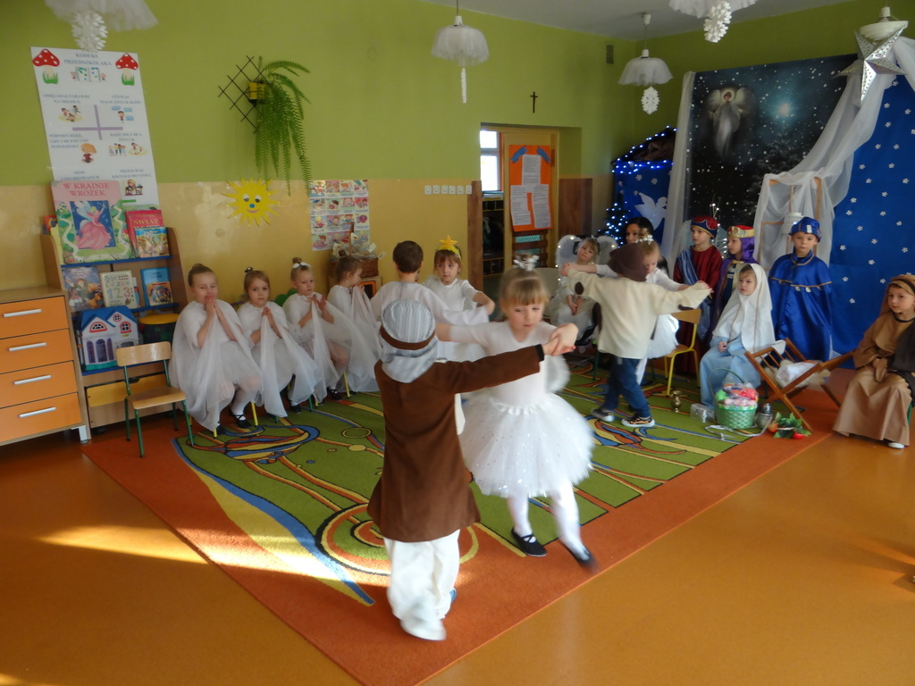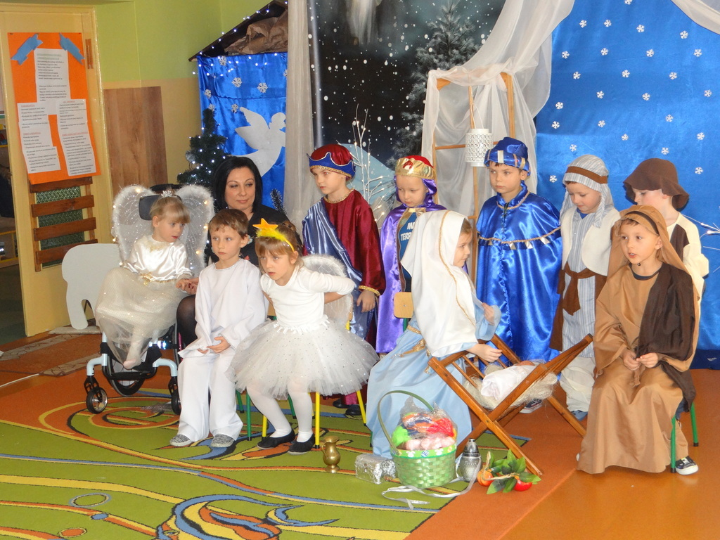 Aby Święta Bożego Narodzenia były bliskością i spokojem, dzieci z grupy „Muchomorków” dnia 16 grudnia zaprosiły personel  przedszkola i wszystkie pozostałe grupy na przygotowane przez siebie Jasełka. W atmosferze magii i narodzin Jezusa  zaproszeni goście mieli możliwość wysłuchania szeregu kolęd i pastorałek a wypowiadane teksty wprowadziły  zebranych w odległe czasy Narodzenia Pańskiego. Na zakończenie pani Dyrektor życzyła wszystkim, aby Święta Bożego Narodzenia były pełnego ciepła spojrzeniem na innych ludzi i otaczający świat oraz wytchnieniem  w gronie rodziny i przyjaciół.