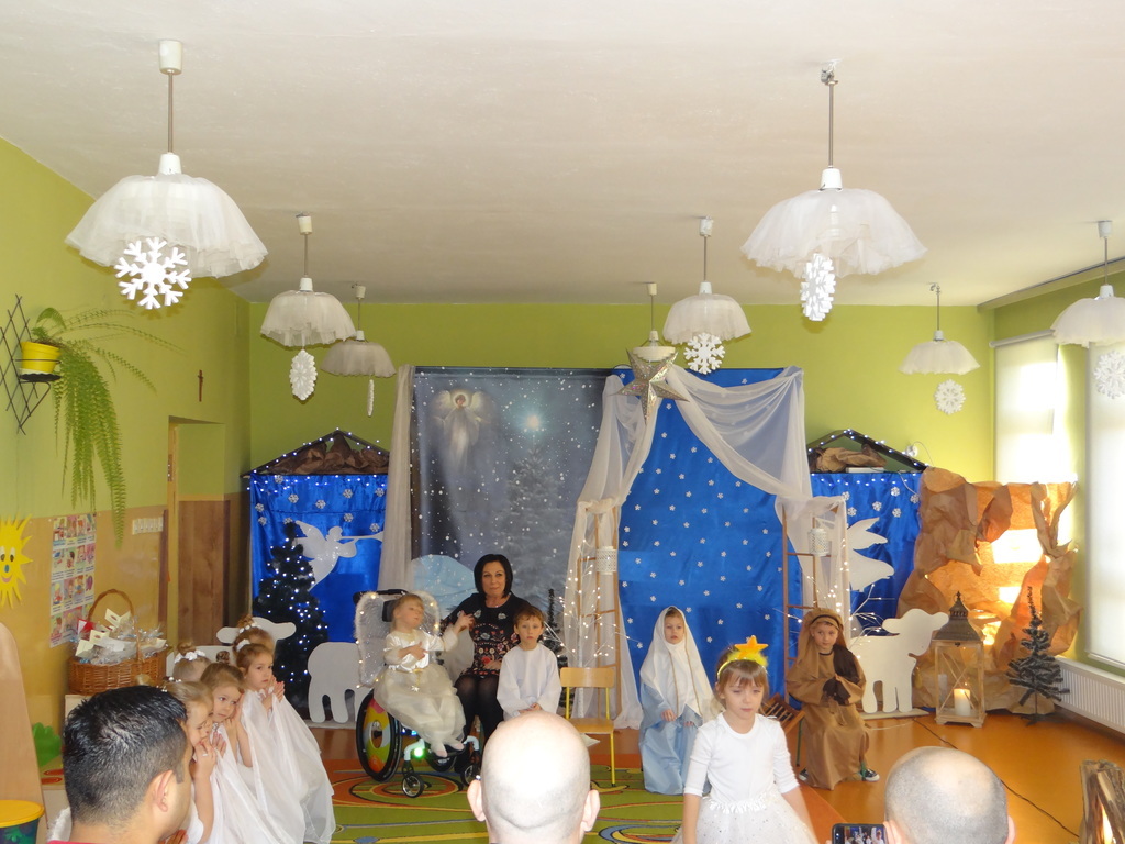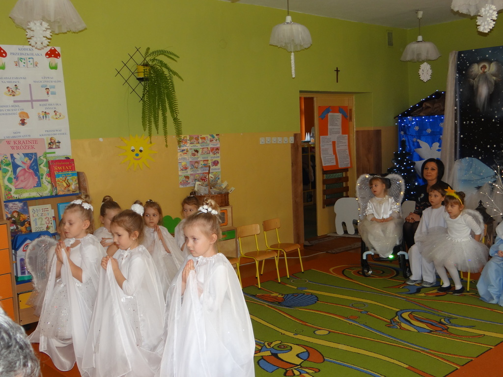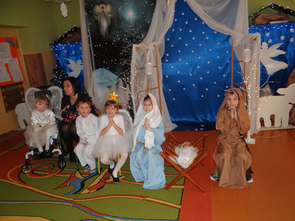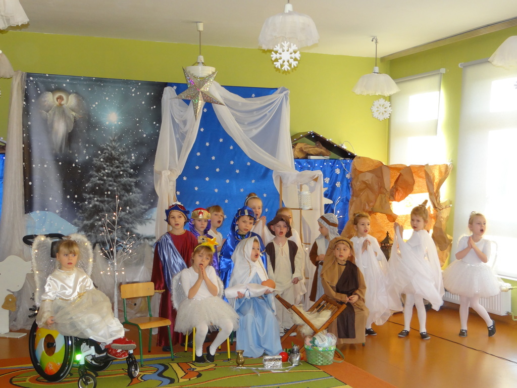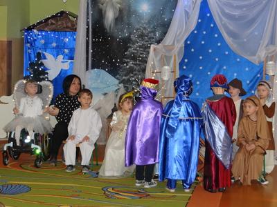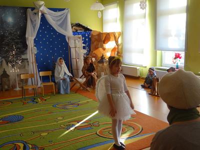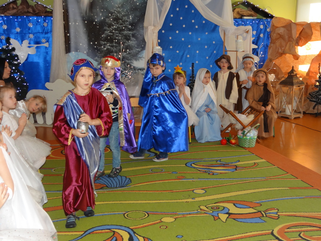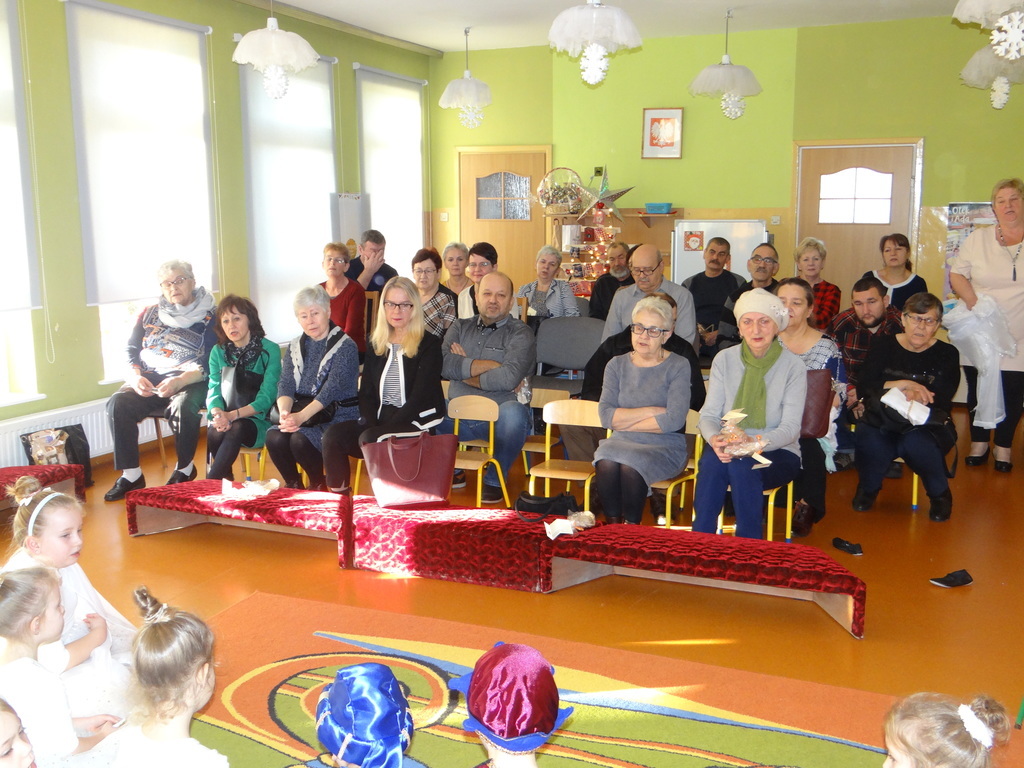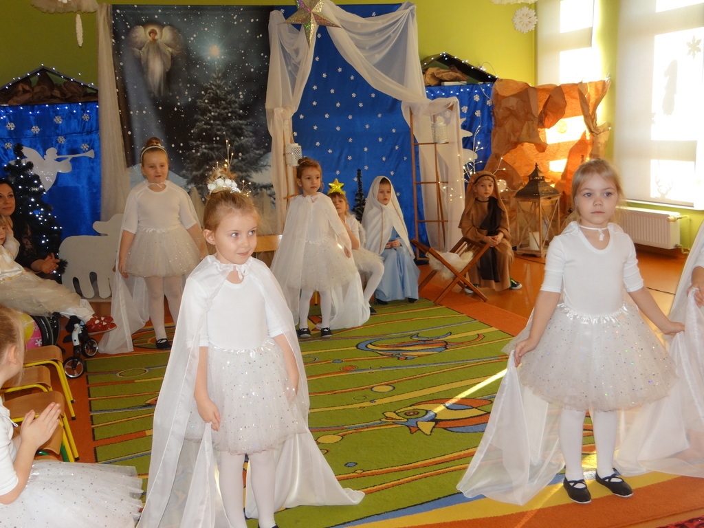 Aby Święta Bożego Narodzenia były bliskością i spokojem, dzieci z grupy „Muchomorków” dnia 16 grudnia zaprosiły personel  przedszkola i wszystkie pozostałe grupy na przygotowane przez siebie Jasełka. W atmosferze magii i narodzin Jezusa  zaproszeni goście mieli możliwość wysłuchania szeregu kolęd i pastorałek a wypowiadane teksty wprowadziły  zebranych w odległe czasy Narodzenia Pańskiego. Na zakończenie pani Dyrektor życzyła wszystkim, aby Święta Bożego Narodzenia były pełnego ciepła spojrzeniem na innych ludzi i otaczający świat oraz wytchnieniem  w gronie rodziny i przyjaciół.