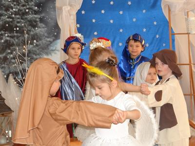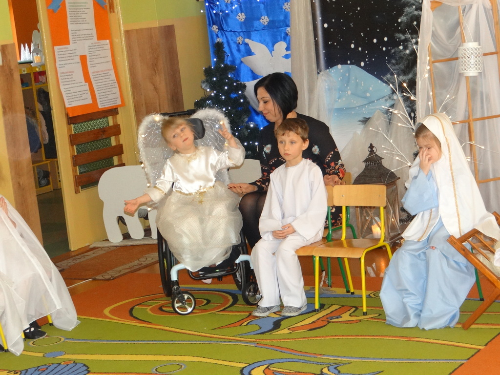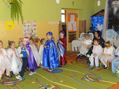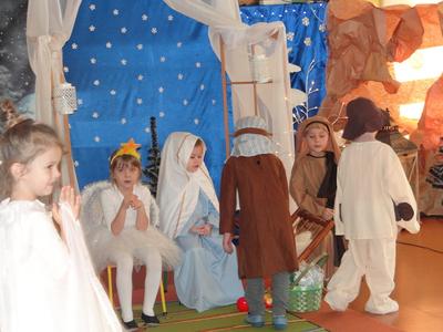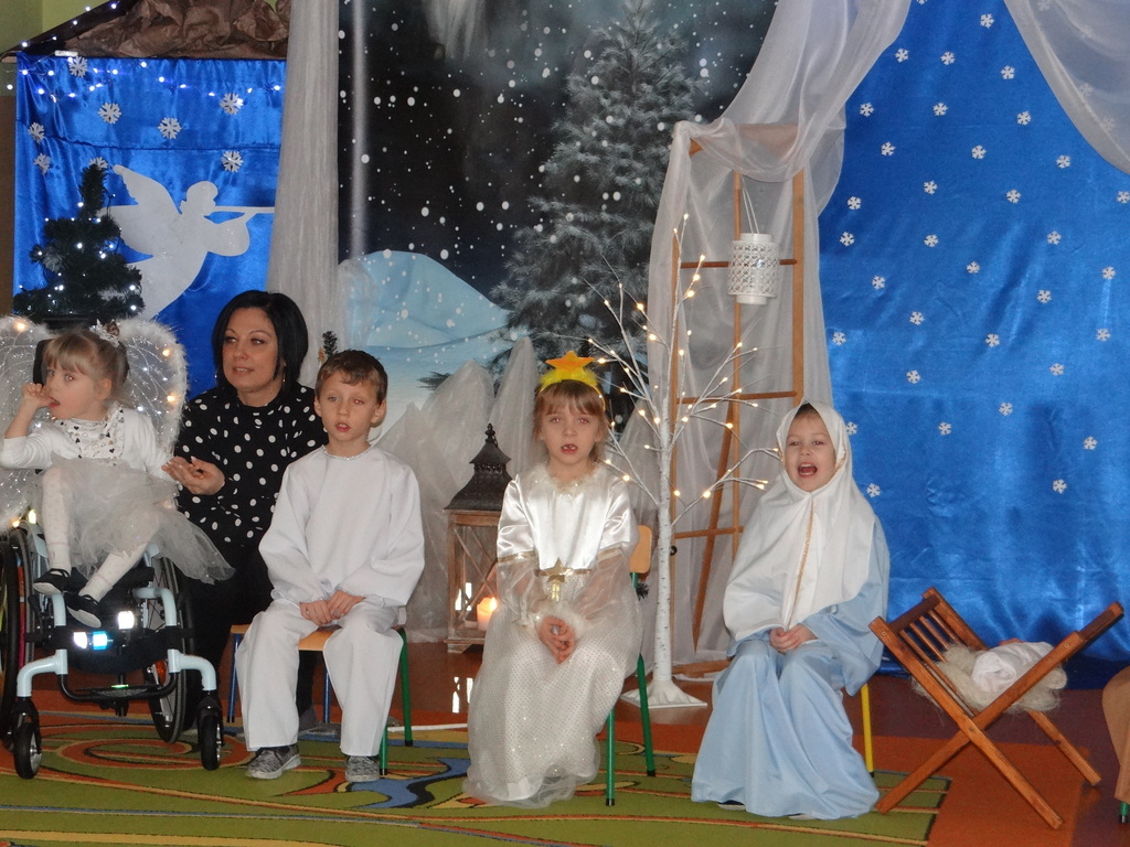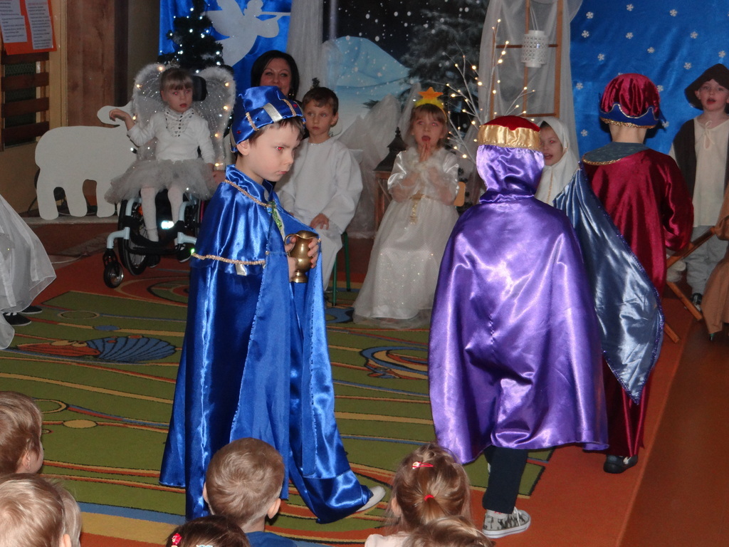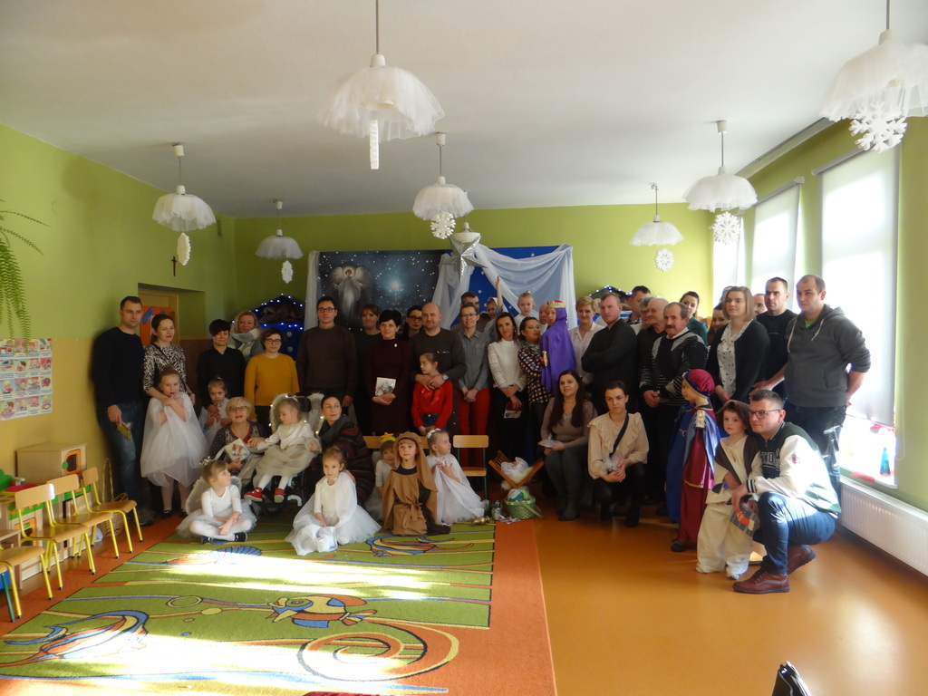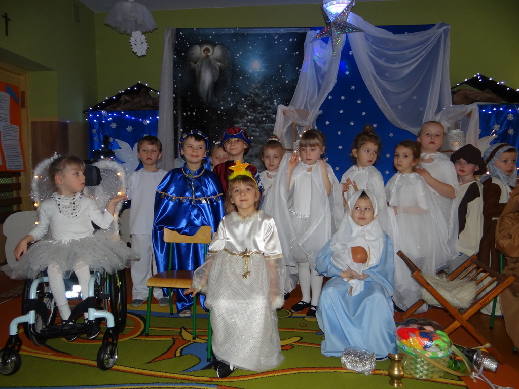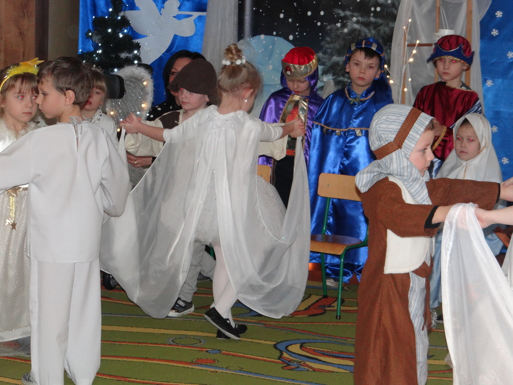 Aby Święta Bożego Narodzenia były bliskością i spokojem, dzieci z grupy „Muchomorków” dnia 16 grudnia zaprosiły personel  przedszkola i wszystkie pozostałe grupy na przygotowane przez siebie Jasełka. W atmosferze magii i narodzin Jezusa  zaproszeni goście mieli możliwość wysłuchania szeregu kolęd i pastorałek a wypowiadane teksty wprowadziły  zebranych w odległe czasy Narodzenia Pańskiego. Na zakończenie pani Dyrektor życzyła wszystkim, aby Święta Bożego Narodzenia były pełnego ciepła spojrzeniem na innych ludzi i otaczający świat oraz wytchnieniem  w gronie rodziny i przyjaciół.