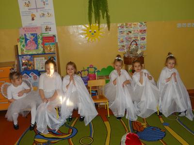 A wszystkie dzieci wraz z personelem przedszkola życzą wszystkim zaproszonym i niezaproszonym osobom, aby wzięli  do ręki biały opłatek,choćby  nawet nie mieli go, z kim dzielić  i niech życzą  szczęścia całemu światu niech się wszystkie serca rozweselą!