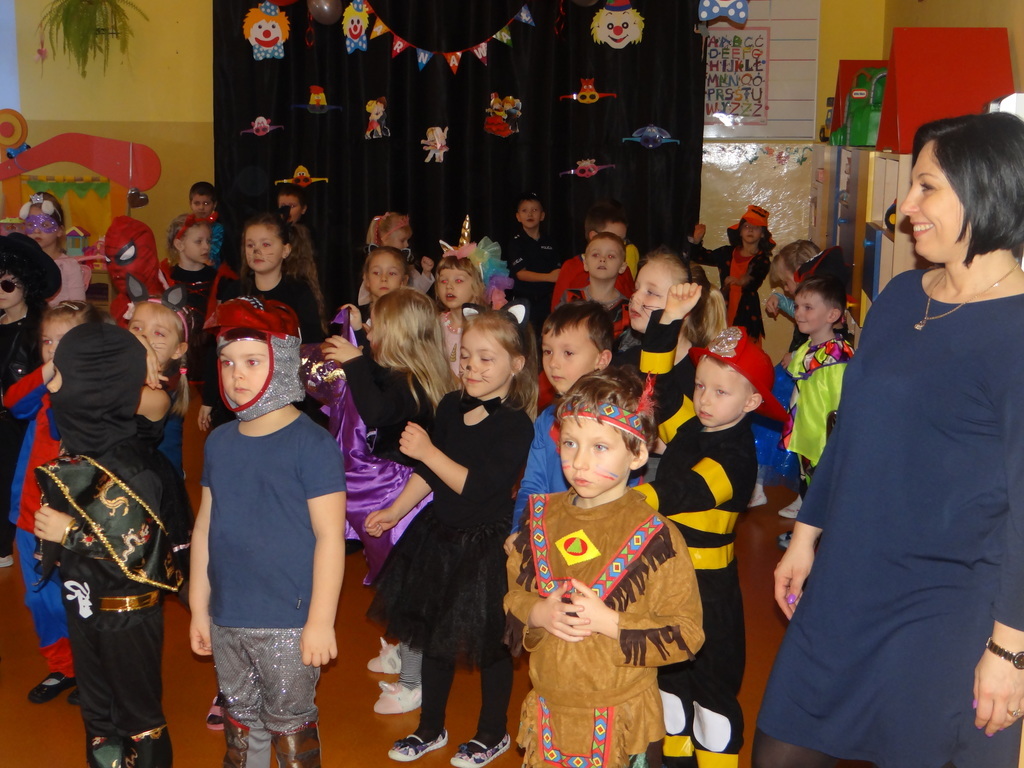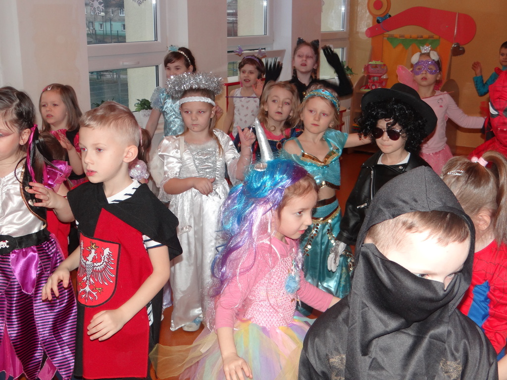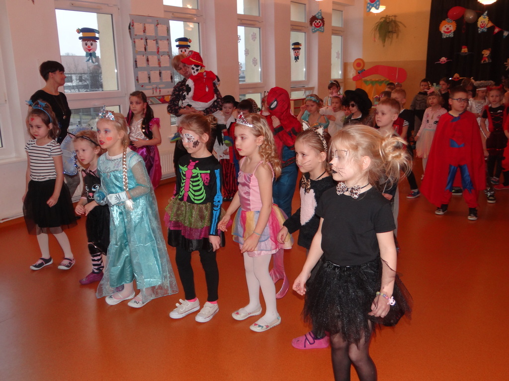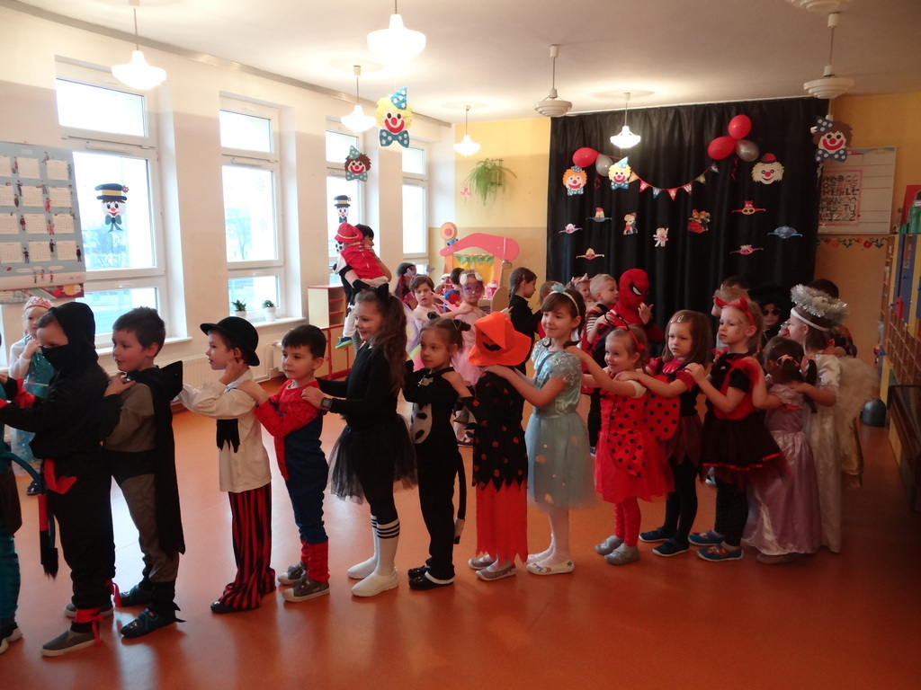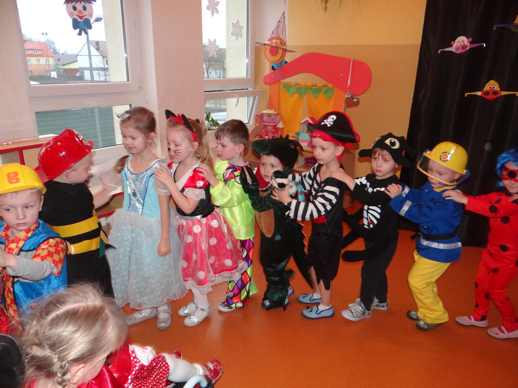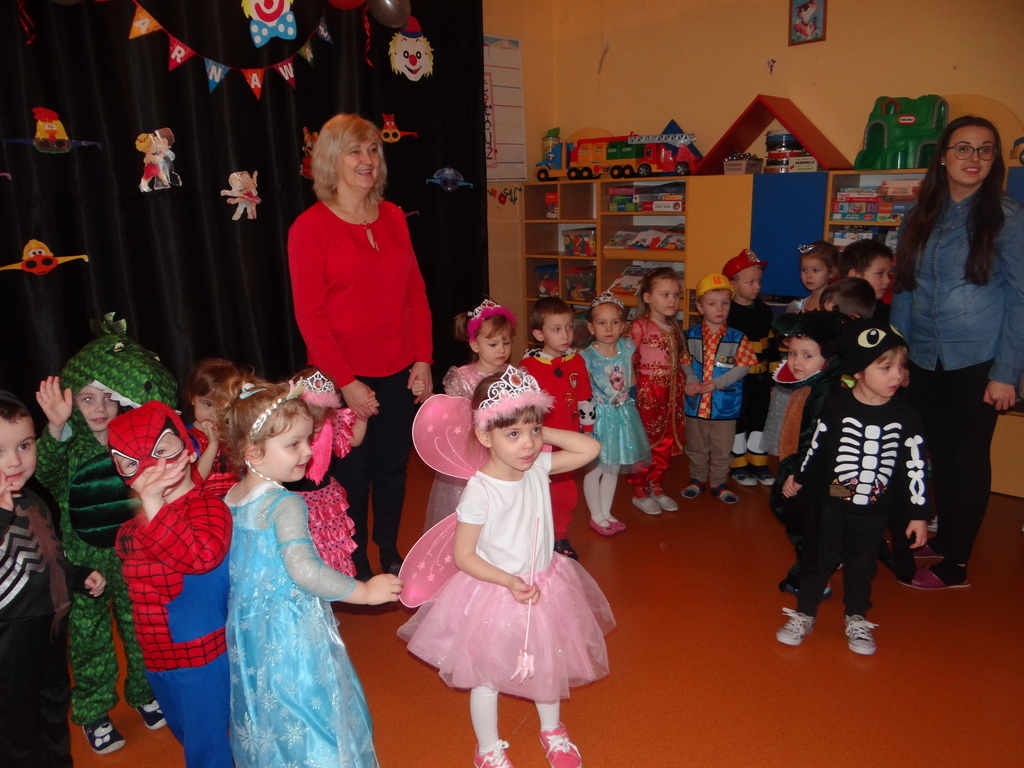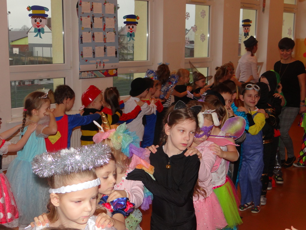 Karnawał w pełni. Czas balów i zabaw. Dzieci uwielbiają takie wydarzenia i czekają na nie z zapartym tchem. Dnia 30 stycznia już od samego rana w drzwiach przedszkola pojawiały się różne postaci bajkowe, które po skonsumowanym śniadaniu ruszyły w tan z prowadzącymi zabawę animatorami. W toczącej się imprezie dzieci miały możliwość zaprezentowania swojego stroju oraz wykazania się kunsztem tanecznym i intelektualnym. Na koniec zabawy wszystkie dziewczynki zostały ogłoszone Królowymi a chłopcy Królami balu.