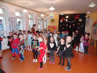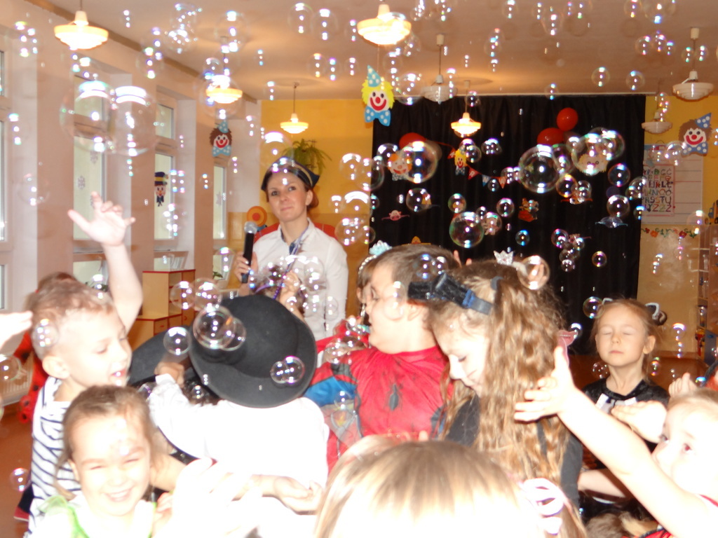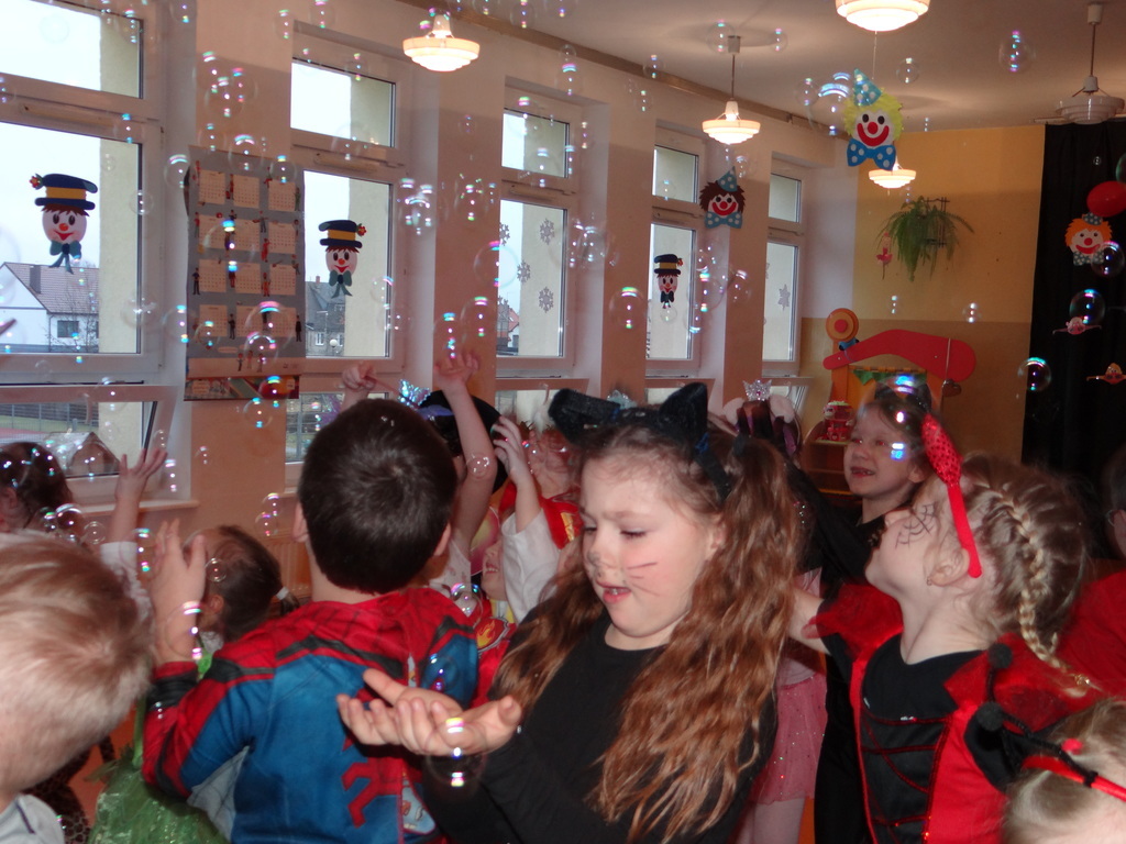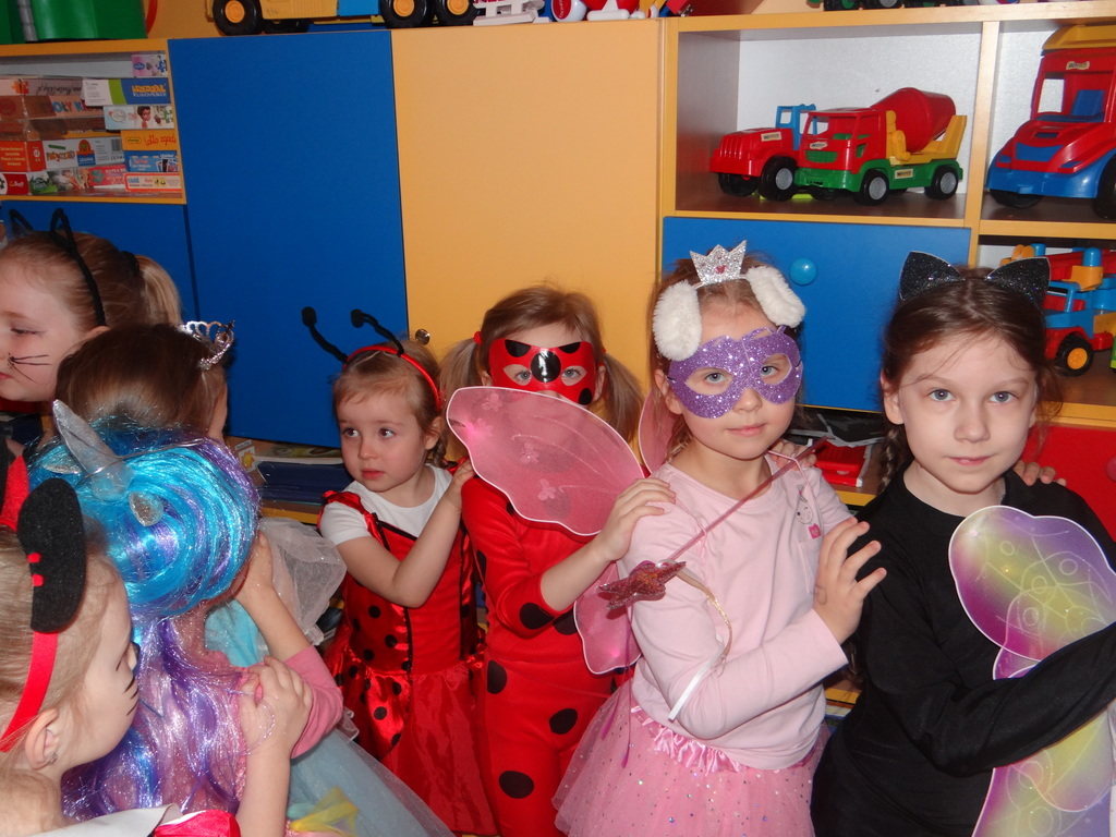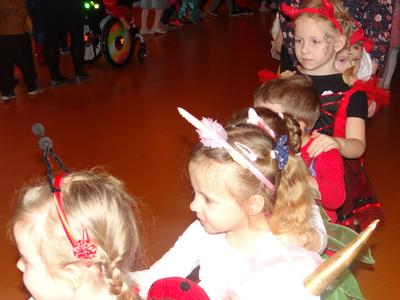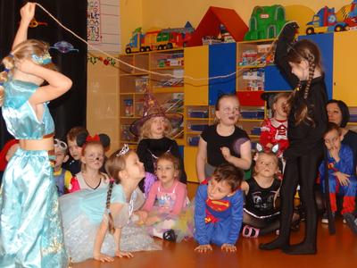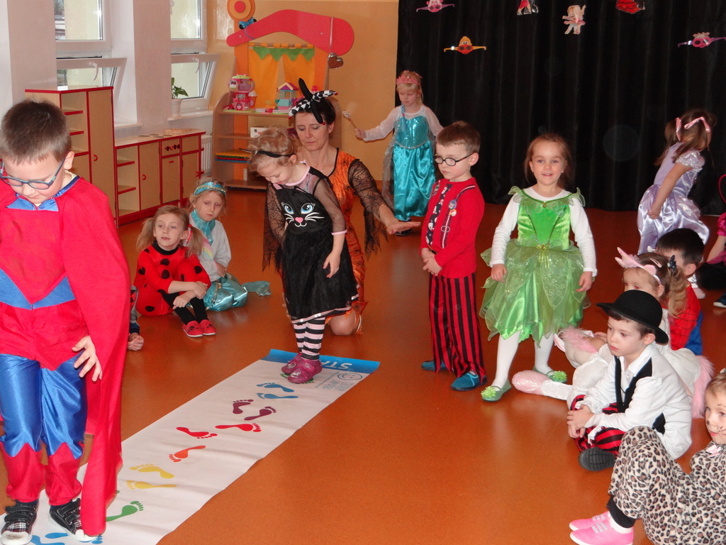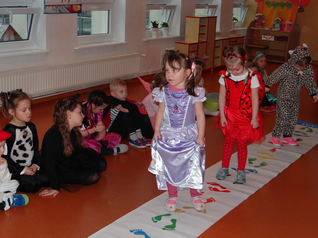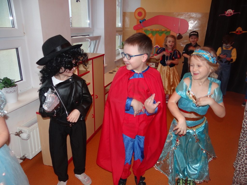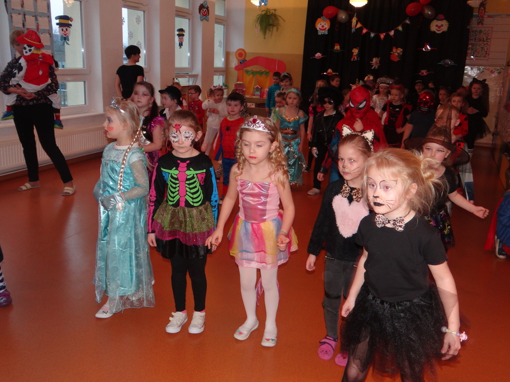 Karnawał w pełni. Czas balów i zabaw. Dzieci uwielbiają takie wydarzenia i czekają na nie z zapartym tchem. Dnia 30 stycznia już od samego rana w drzwiach przedszkola pojawiały się różne postaci bajkowe, które po skonsumowanym śniadaniu ruszyły w tan z prowadzącymi zabawę animatorami. W toczącej się imprezie dzieci miały możliwość zaprezentowania swojego stroju oraz wykazania się kunsztem tanecznym i intelektualnym. Na koniec zabawy wszystkie dziewczynki zostały ogłoszone Królowymi a chłopcy Królami balu.