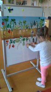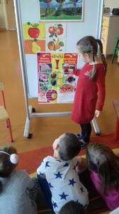 Realizując temat kompleksowy "Biedronki" dostrzegały zmiany zachodzące w przyrodzie jesienią w sadzie i ogrodzie, nazywały owoce i warzywa, porządkowały według gatunków oraz wykonanych z nich przetworów. Kształtowały właściwe nawyki żywieniowe. Dzieci pogłębiły swoją wiedzę na temat warzyw i owoców ekologicznych oraz powstałych z nich przetworów realizując treści programu "Skąd się biorą produkty ekologiczne''.
