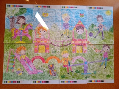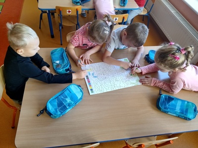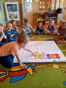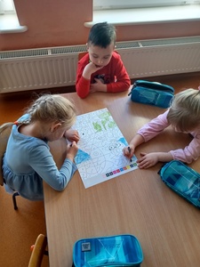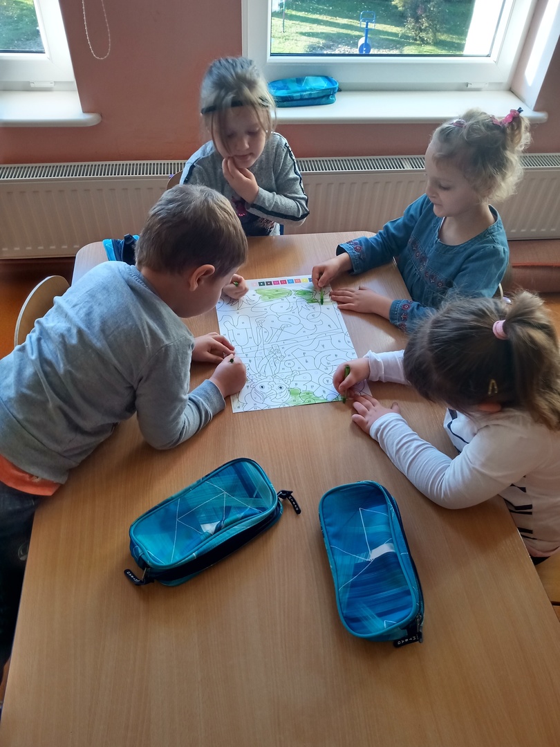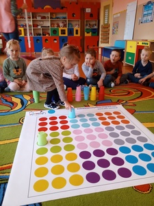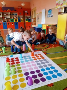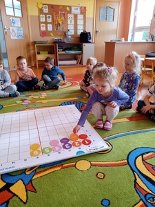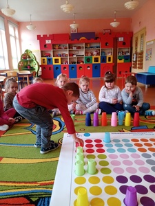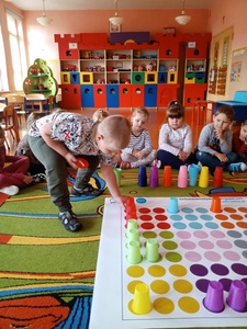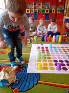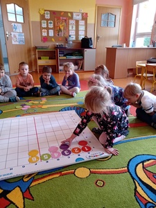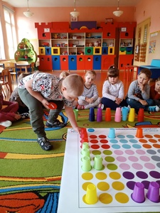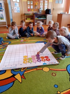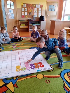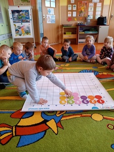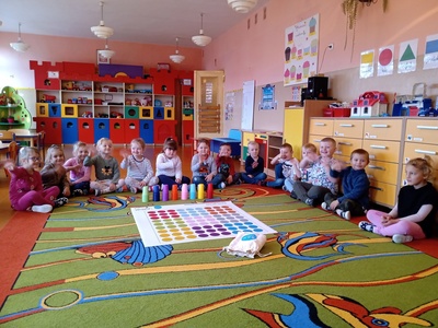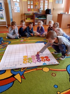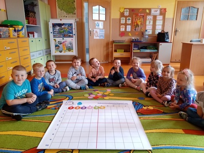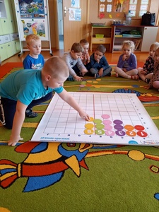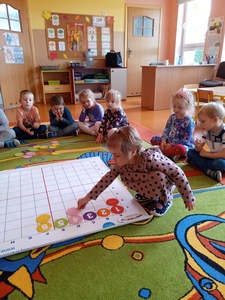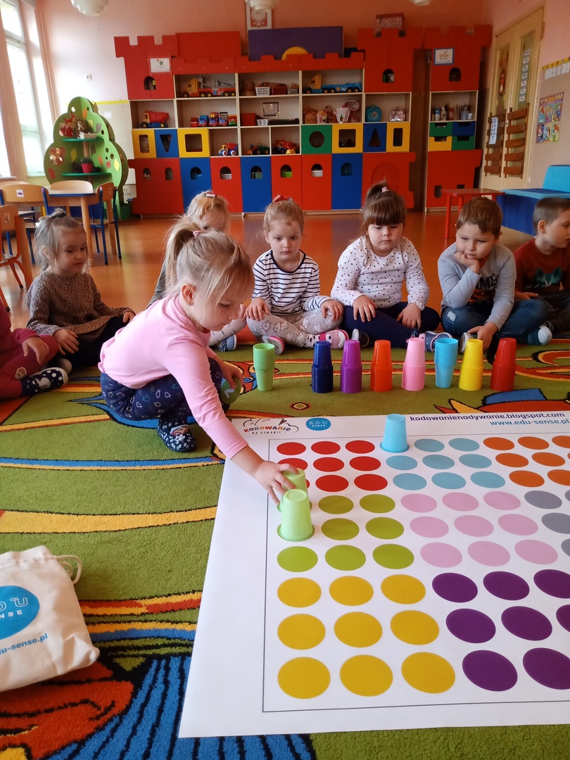 W dniach 19.10 - 23.10 dzieci z grupy „Tęczowe Nutki” wzięły udział w Europejskim Tygodniu Kodowania Code Week. W ramach akcji przeprowadzony został cykl zajęć poświęconych kodowaniu. Podczas zajęć dzieci doskonaliły umiejętności kodowania oraz logicznego myślenia. Do zajęć wykorzystane zostały także ciekawe pomoce dydaktyczne, takie jak: mata do kodowania, kolorowe kubeczki, magiczny worek i wielkoformatowa kolorowanka. Przedszkolaki bawiły się wyśmienicie.