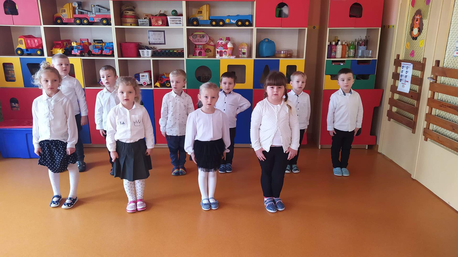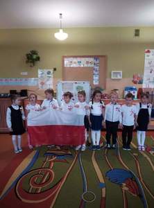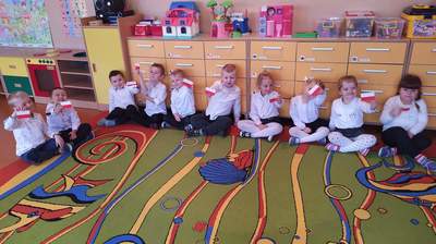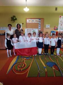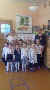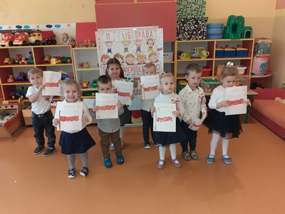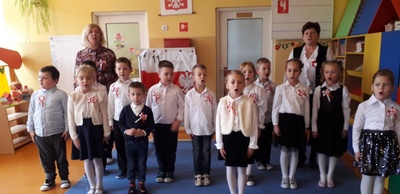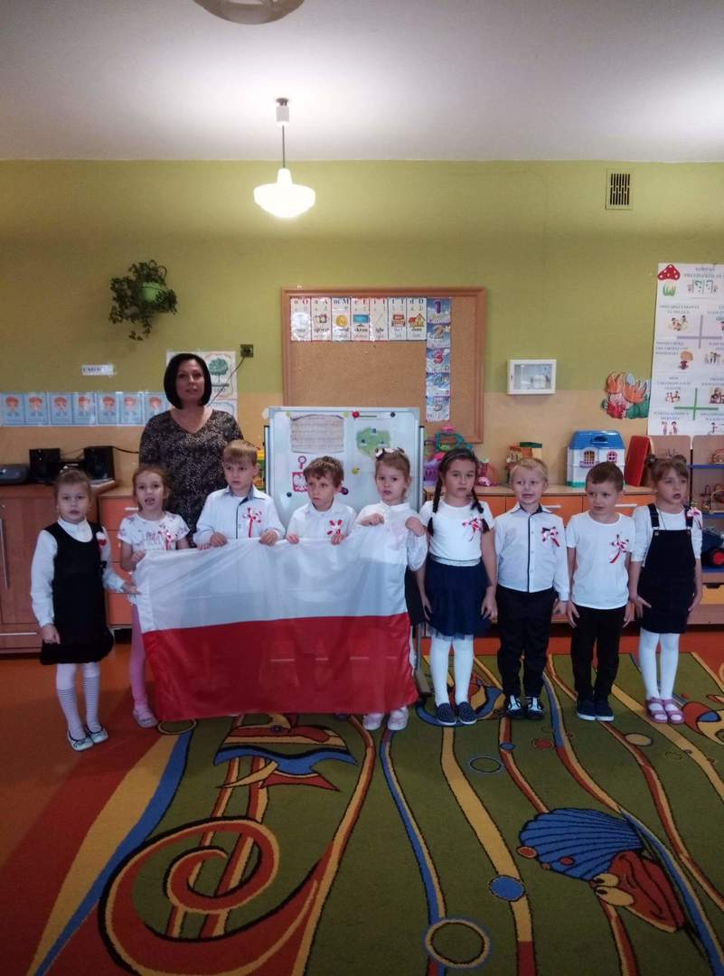 W naszym przedszkolu również  uczczono rocznicę odzyskania niepodległości. Dzieci z biało – czerwonymi kotylionami uroczyście odśpiewały hymn państwowy w swoich salach udekorowanych symbolami narodowymi, zapaliły znicz pod pomnikiem. Poprzez kultywowanie uroczystości narodowych dzieci uczą się patriotyzmu, postawy młodego pokolenia. Młodych ludzi powinien pociągać dobry przykład osób szczerze zatroskanych o Polskę. Patriotyzm trzeba w narodzie pielęgnować i to jest zadanie dla nas wszystkich.