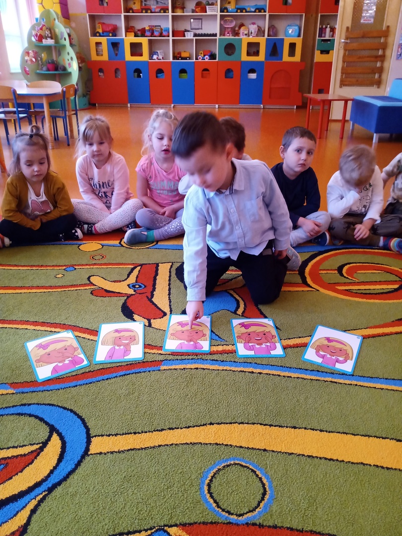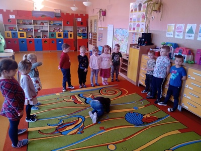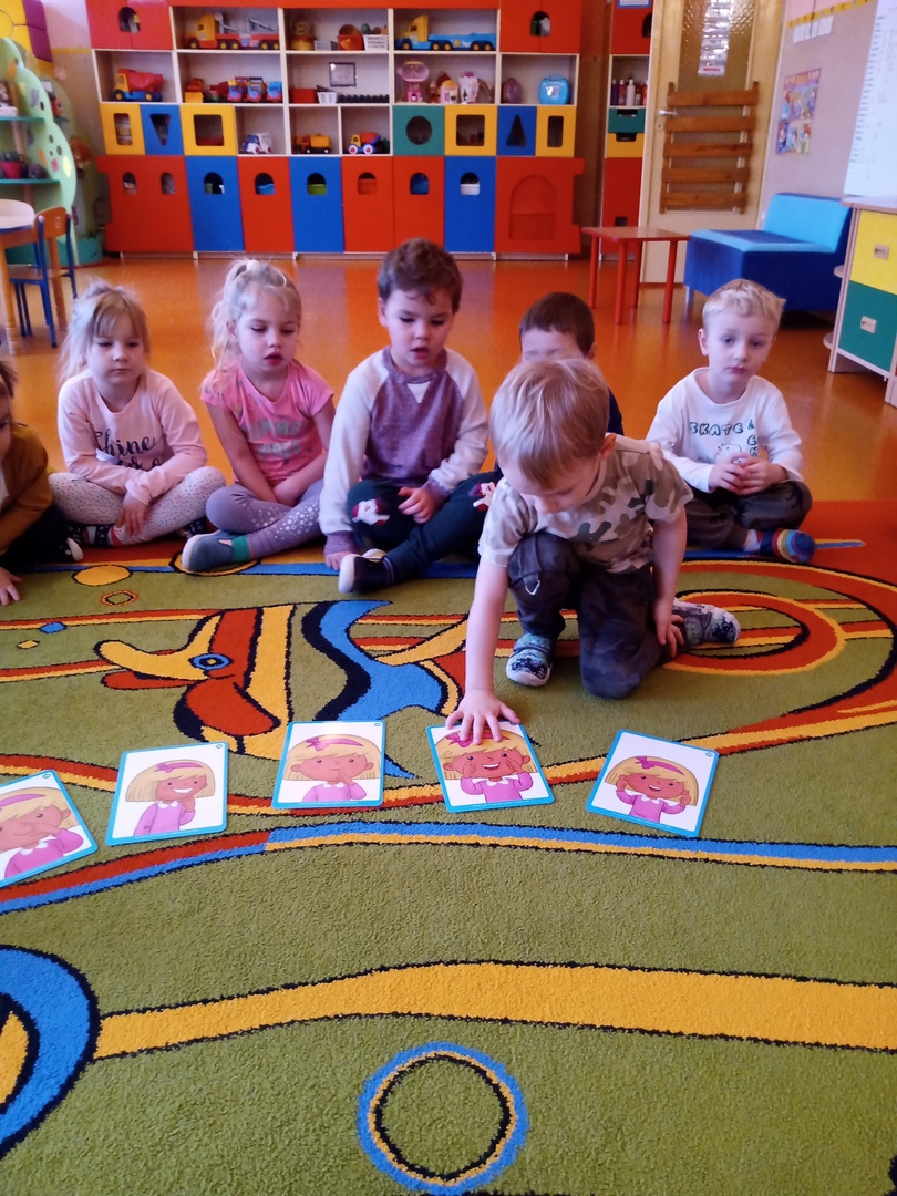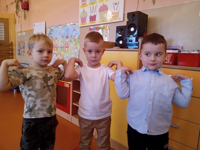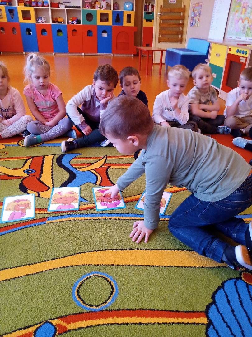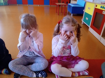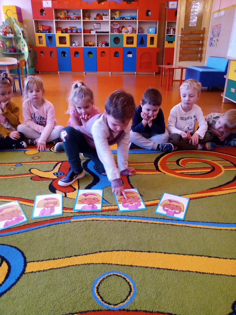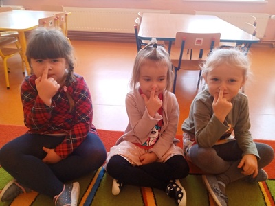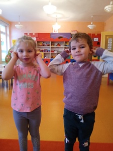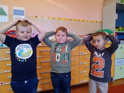 W listopadzie w ramach realizowania innowacji pedagogicznej z języka angielskiego „Hello English” dzieci z grupy „Tęczowe Nutki” poznały słownictwo związane z częściami ciała. Dzieci uczestniczyły w zabawach ruchowych przy piosence „Baby shark", "Head, shoulders, knees and toes" oraz "Touch your head".  Ponadto świetnie się bawiły w stracha na wróble przy piosence "Scarecrow"oraz w Głuchy Telefon po angielsku. Przedszkolaki utrwalały również kolory i liczebniki 1-5.