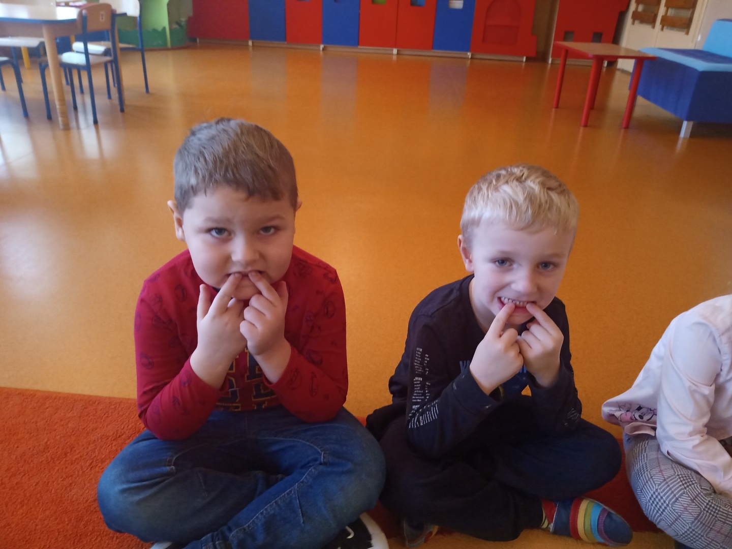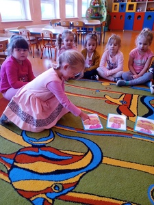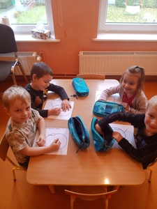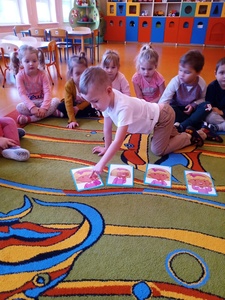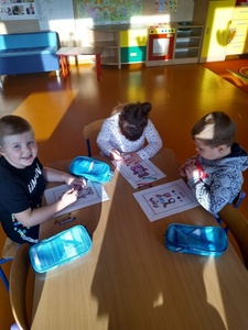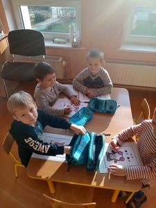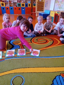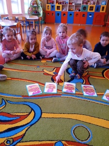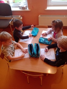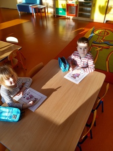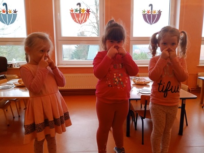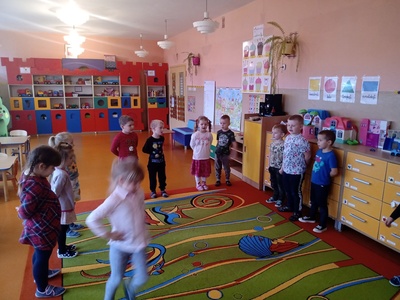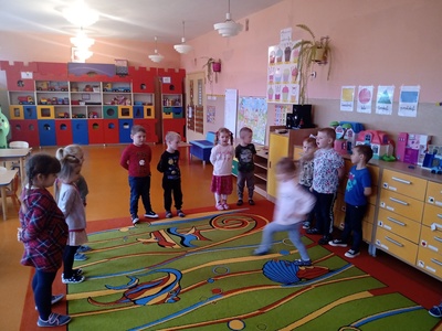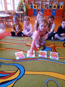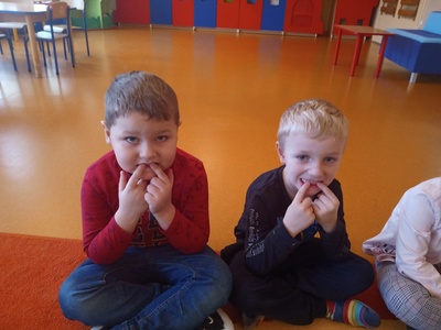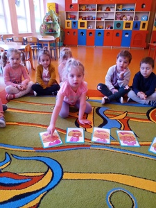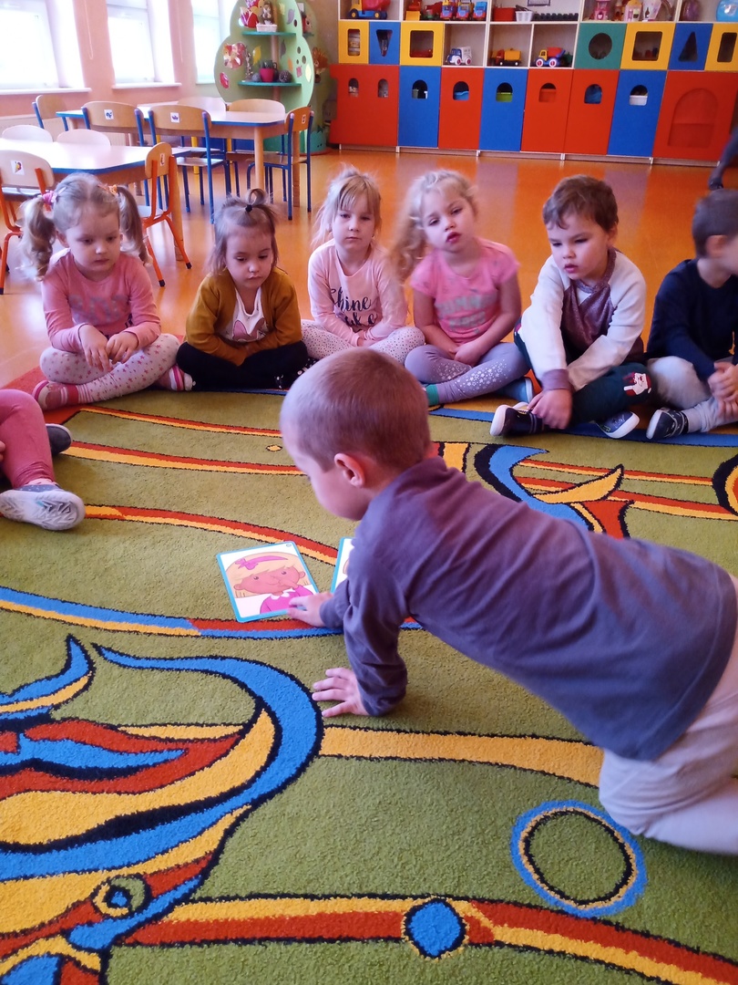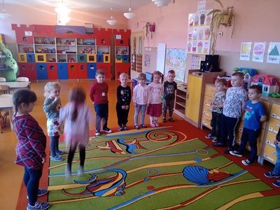 W listopadzie w ramach realizowania innowacji pedagogicznej z języka angielskiego „Hello English” dzieci z grupy „Tęczowe Nutki” poznały słownictwo związane z częściami ciała. Dzieci uczestniczyły w zabawach ruchowych przy piosence „Baby shark", "Head, shoulders, knees and toes" oraz "Touch your head".  Ponadto świetnie się bawiły w stracha na wróble przy piosence "Scarecrow"oraz w Głuchy Telefon po angielsku. Przedszkolaki utrwalały również kolory i liczebniki 1-5.