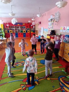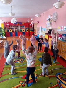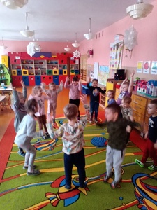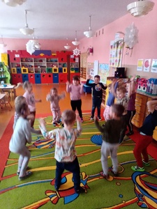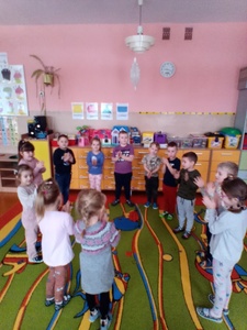 W styczniu w ramach realizowania innowacji pedagogicznej z języka angielskiego „Hello English” dzieci z grupy „Tęczowe Nutki” poznały słownictwo związane z ubraniami. Przedszkolaki uczyły się także piosenki "If you're happy" oraz uczestniczyły w zabawie ruchowej do tej piosenki. Dzieci utrwalały poznane słownictwo w języku angielskim w zabawie tradycyjnej "Głuchy telefon". Tęczowe Nutki ćwiczyły rówież reagowanie na proste polecenia w języku angielskim, takie tak: wstań, usiądź, klaśnij w dłonie, podskocz.