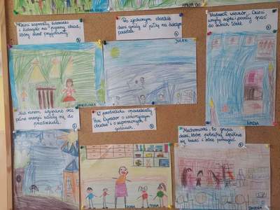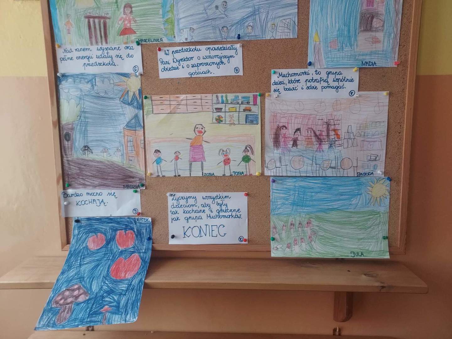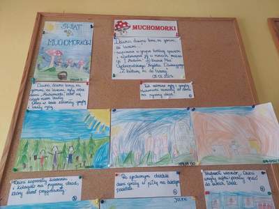5 lutego grupa Muchomorków poznała etapy powstawania papieru. Następnie dzieci z pomocą nauczyciela poznały budowę książki. Wszystko po to, by w kolejnych krokach spróbować napisać własną książkę. W ramach realizacji I Modułu- " W krainie Muz", Ogólnopolskiego Projektu Edukacyjnego " Z Kulturą mi do twarzy" zadaniem dzieci było napisanie i zilustrowanie krótkiej opowieści. Dzieci stworzyły przepiękną opowieść pt. " Świat Muchomorów", która opowiada o losach dzieci, które sobie wzajemnie pomagają i bardzo mocno się kochają. Podczas wykonywania tego zadania grupa bardzo ze sobą współpracowała. Dzieci były z siebie bardzo zadowolone, a nauczyciele dumni, ponieważ Muchomorki stały się autorami i ilustratorami opowieści.
