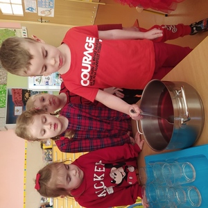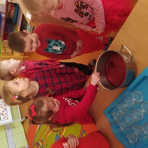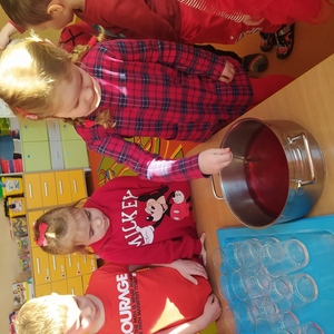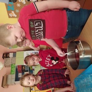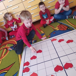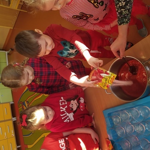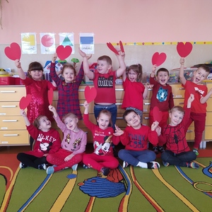 12 lutego w naszej grupie obchodziliśmy kolejny kolorowy dzień, który połączyliśmy z Walentynkami. Wszystkie dzieci ubrane w kolory czerwieni ułożyły zakodowane serduszko, poznały zwyczaje związane z Walentynkami, segregowały owoce i warzywa pasujące kolorystycznie do tematu. Dzieci uczestniczyły w wielu zabawach ruchowych, a na koniec dnia wspólnie wykonały galaretkę truskawkową, która była świetnym deserem po pysznym obiedzie.