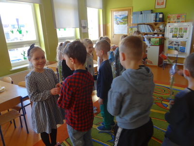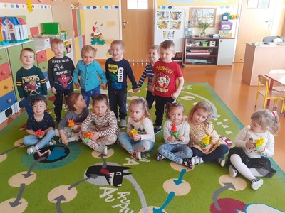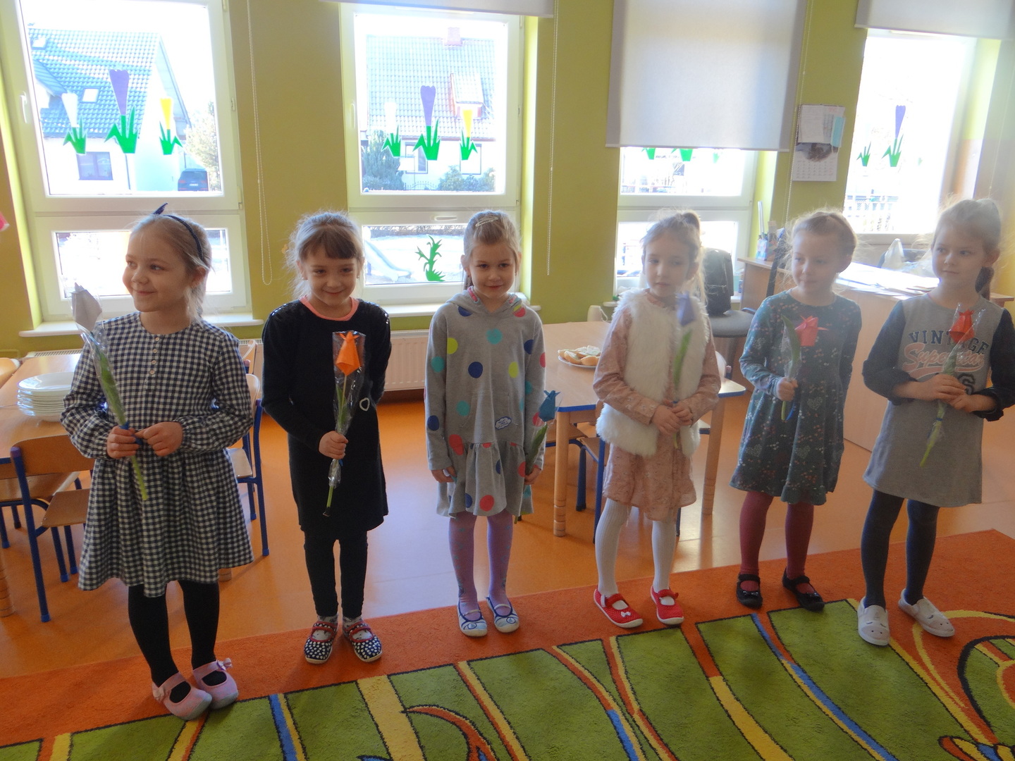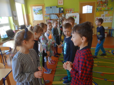 8 marca to wyjątkowy dzień szczególnie dla wszystkich pań zarówno tych dużych jak i małych. Z tej okazji w każdej grupie przedszkolnej obchodzono uroczyście Dzień Kobiet. Chłopcy składali życzenia dziewczynkom i paniom. Nie obyło się bez cukierków, drobnych upominków i kwiatów. Na dziewczęcych buziach uśmiech gościł przez cały dzień, a chłopcy byli mili i uczynni. Cudownie by było, gdyby to dobre zachowanie udało się przenieść na wszystkie pozostałe dni Mrugnięcie Wszystkie panie  i dziewczynki dziękują chłopcom za piękne życzenia i kwiaty.