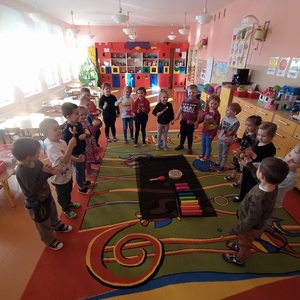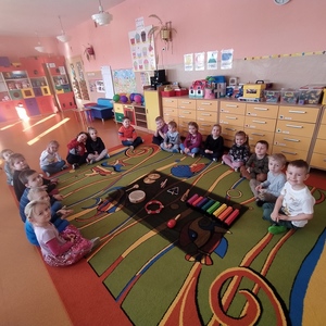 15 lutego dzieci z grupy "Tęczowe Nutki" zrealizowały zadanie z I moduł projektu edukacyjnego "Z kulturą mi do twarzy", pt.: "W magicznym świecie dźwięków". Tego dnia w naszej sali było bardzo głośno za sprawą wielu instrumentów. Dzieci poznały ich nazwy, brzmienie oraz wygląd. Rozpoznawały je poprzez dotyk oraz usłyszane dźwięki. Na koniec wspólnymi siłami zagrały do utworu "Country dance"
