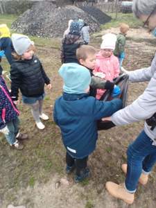 Dnia 22 kwietnia w naszym przedszkolu obchodzono Dzień Ziemi. We wszystkich grupach zostały zorganizowane zabawy i zajęcia, których celem było uwrażliwianie dzieci na problemy planety oraz kształtowanie postaw proekologicznych. Dzieci poszerzały wiedzę na temat zagrożeń i sposobów dbania o środowisko, m.in. poprzez słuchanie opowiadania o chorej planecie. Wspólnie ustalały zasady dbania o środowisko naturalne, uczyły się prawidłowego segregowania odpadów, śpiewały piosenki ekologiczne i bawiły się przy nich. Wykonywały prace plastyczne odzwierciedlające tematykę dnia. Dzień ten był również okazją przyłączenia się do akcji "sprzątania świata". Dzieci z chęcią porządkowały okolice przedszkola, by w ten sposób przysłużyć się Ziemi.