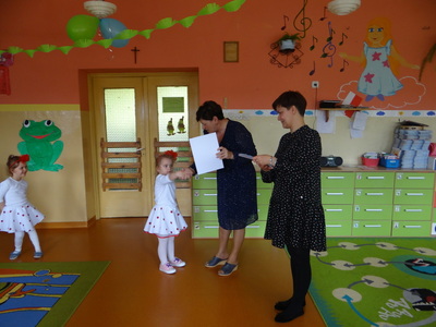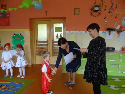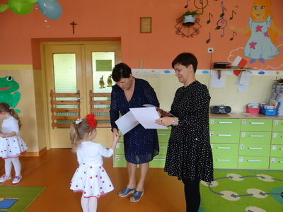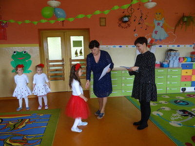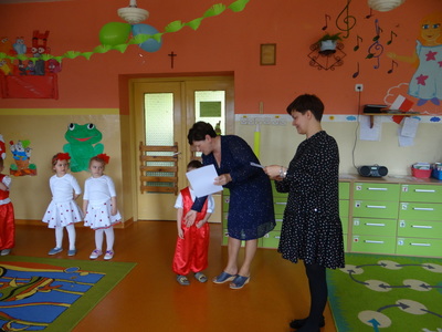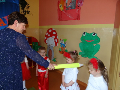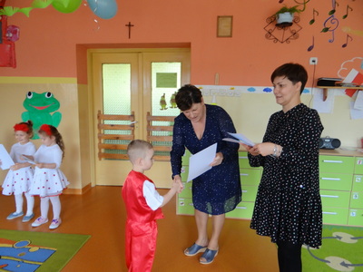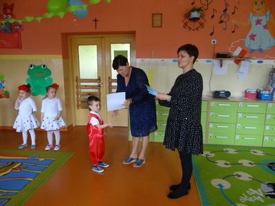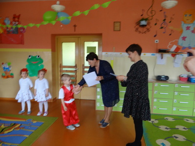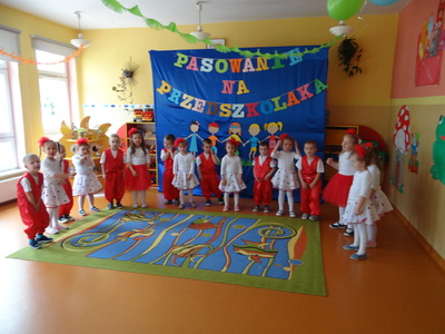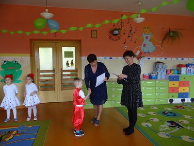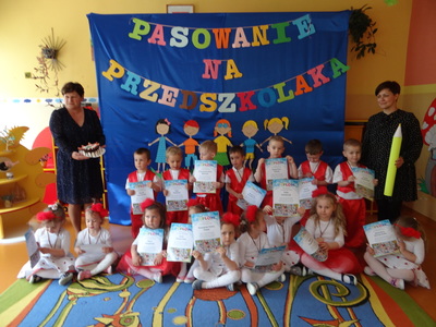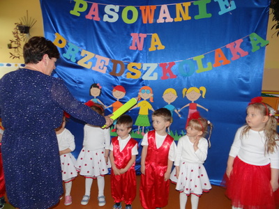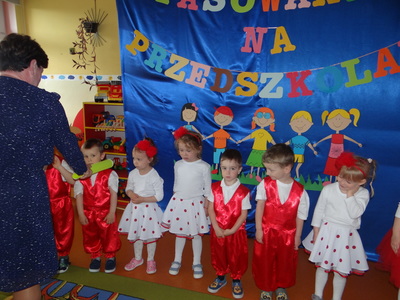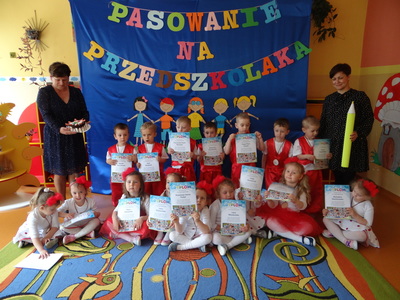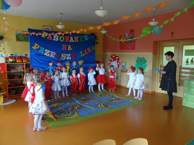 27 maja w grupie "Krasnoludków" odbyło się uroczyste "Pasowanie na Przedszkolaka". Dzieci, w krótkim występie artystycznym, zaprezentowały swoje umiejętności recytatorskie, wokalne oraz taneczne. Po przyrzeczeniu przedszkolaków, Pani Dyrektor pasowała dzieci "zaczarowanym" ołówkiem na prawdziwego przedszkolaka. Na pamiątkę pierwszej, tak ważnej dla dzieci uroczystości, Krasnoludki otrzymały dyplomy i medale. Cieszymy się, że kolejne zuchy dołączyły do grona dzielnych przedszkolaków. Gratulujemy!