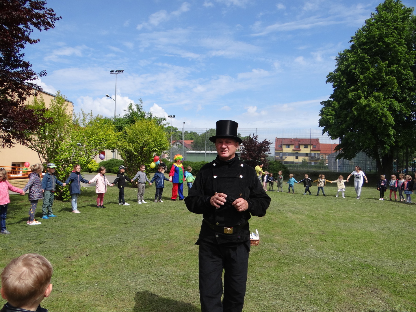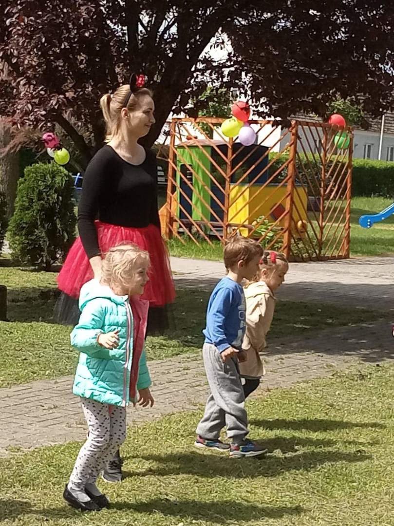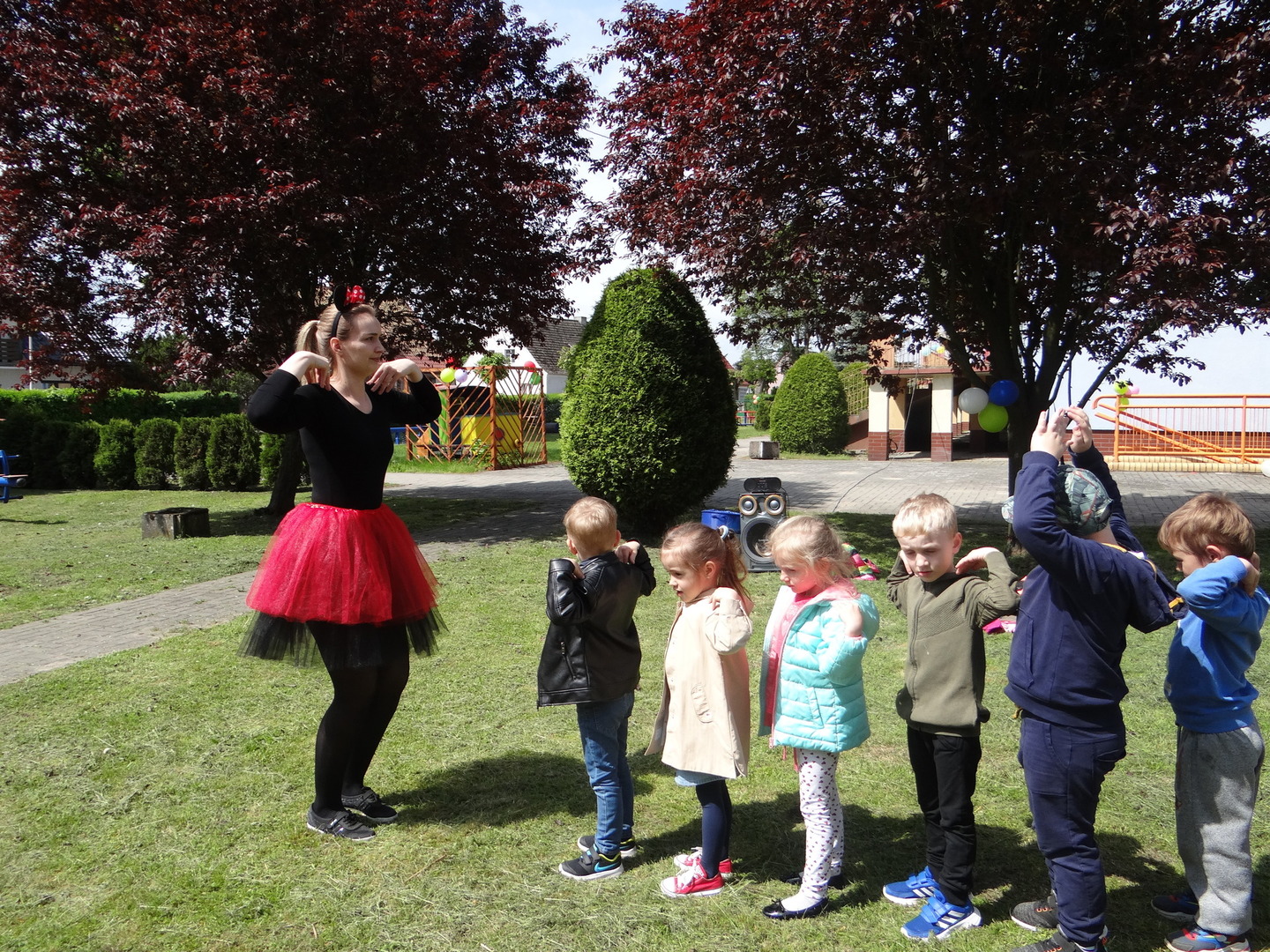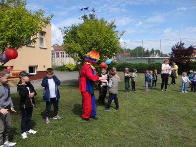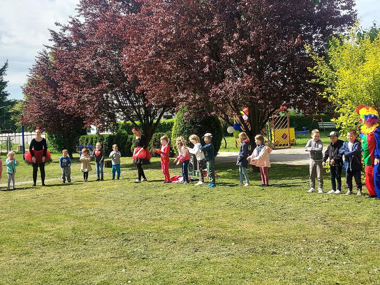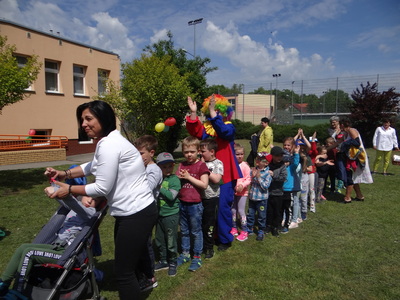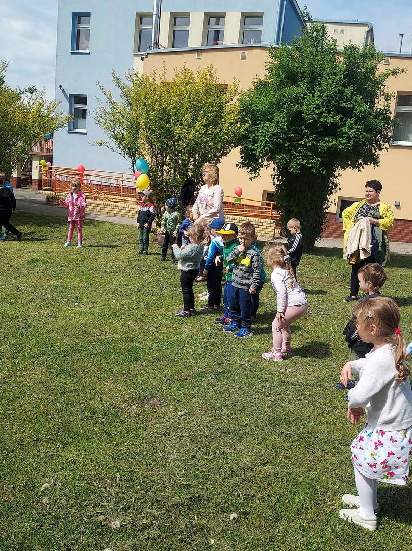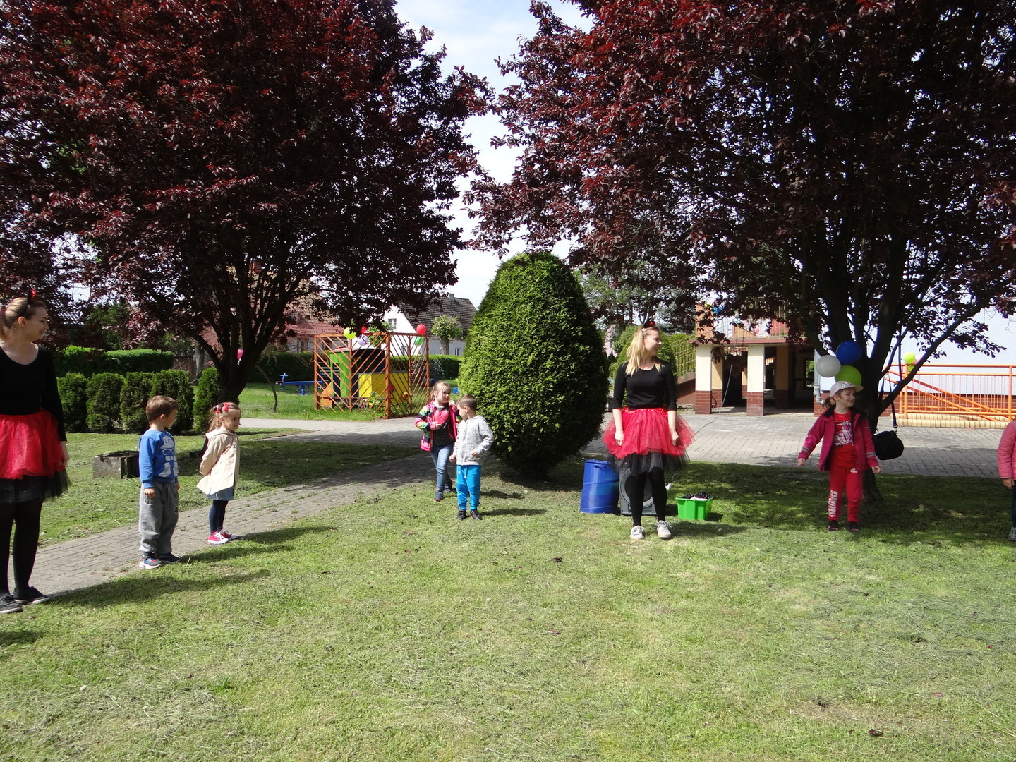 Piękna pogoda pozwoliła na spędzenie reszty tego dnia na placu przedszkolnym przystrojonym na tę okazję kolorowymi balonami. Ile okrzyków radości świadczących o dobrej zabawie rozlegało się dokoła. Wszystkie dzieci brały udział w tańcach przy muzyce. Wesoła zabawa, tańce i teatrzyk sprawiły, że był to wspaniały, niezapomniany czas. I oczywiście na wszystkie dzieci czekały słodkie paczuszki i balony. Każdy przedszkolak wracał dp domu z uśmiechem od ucha do ucha.