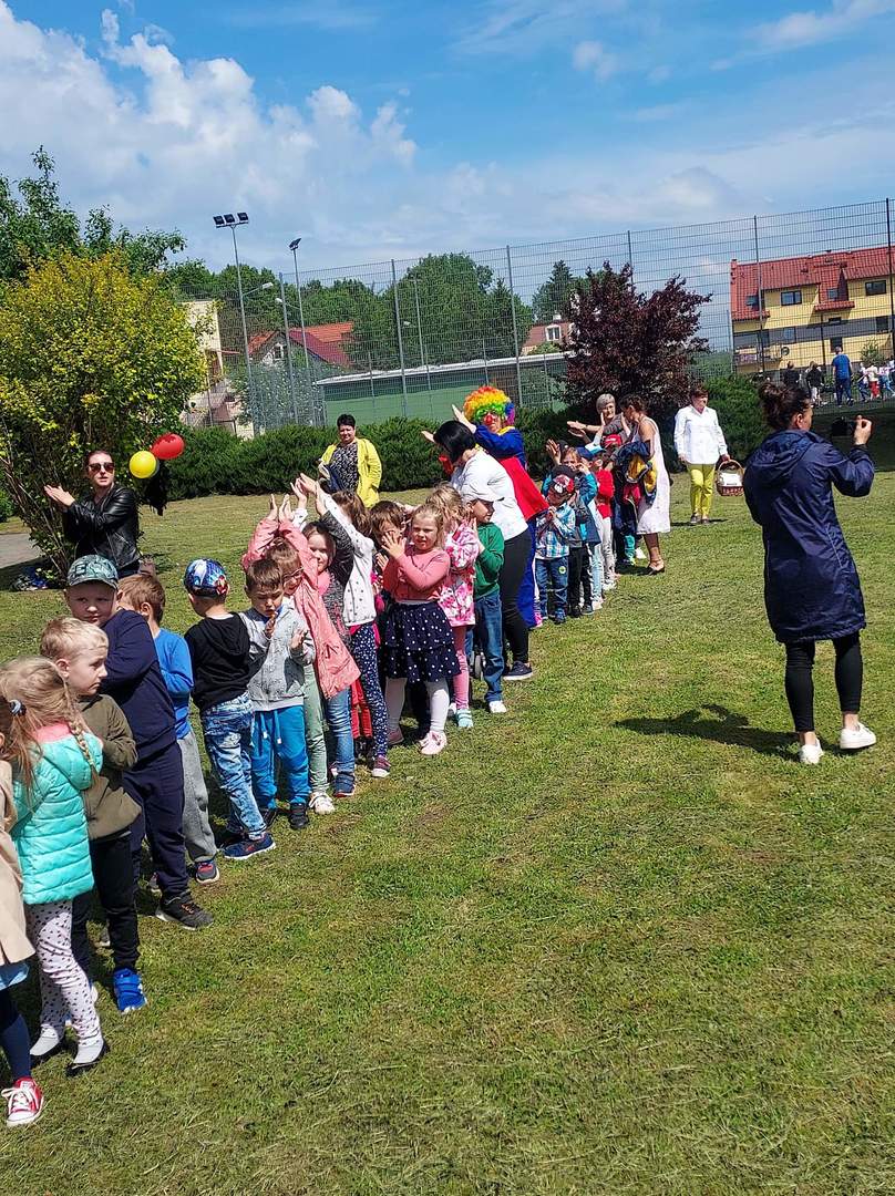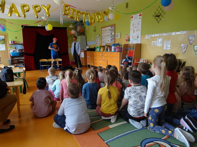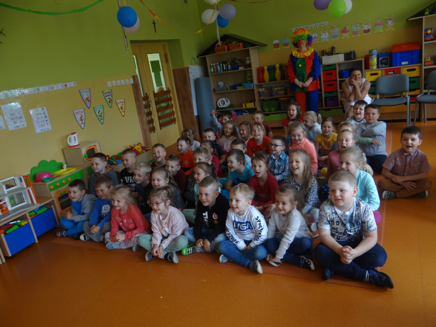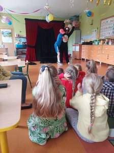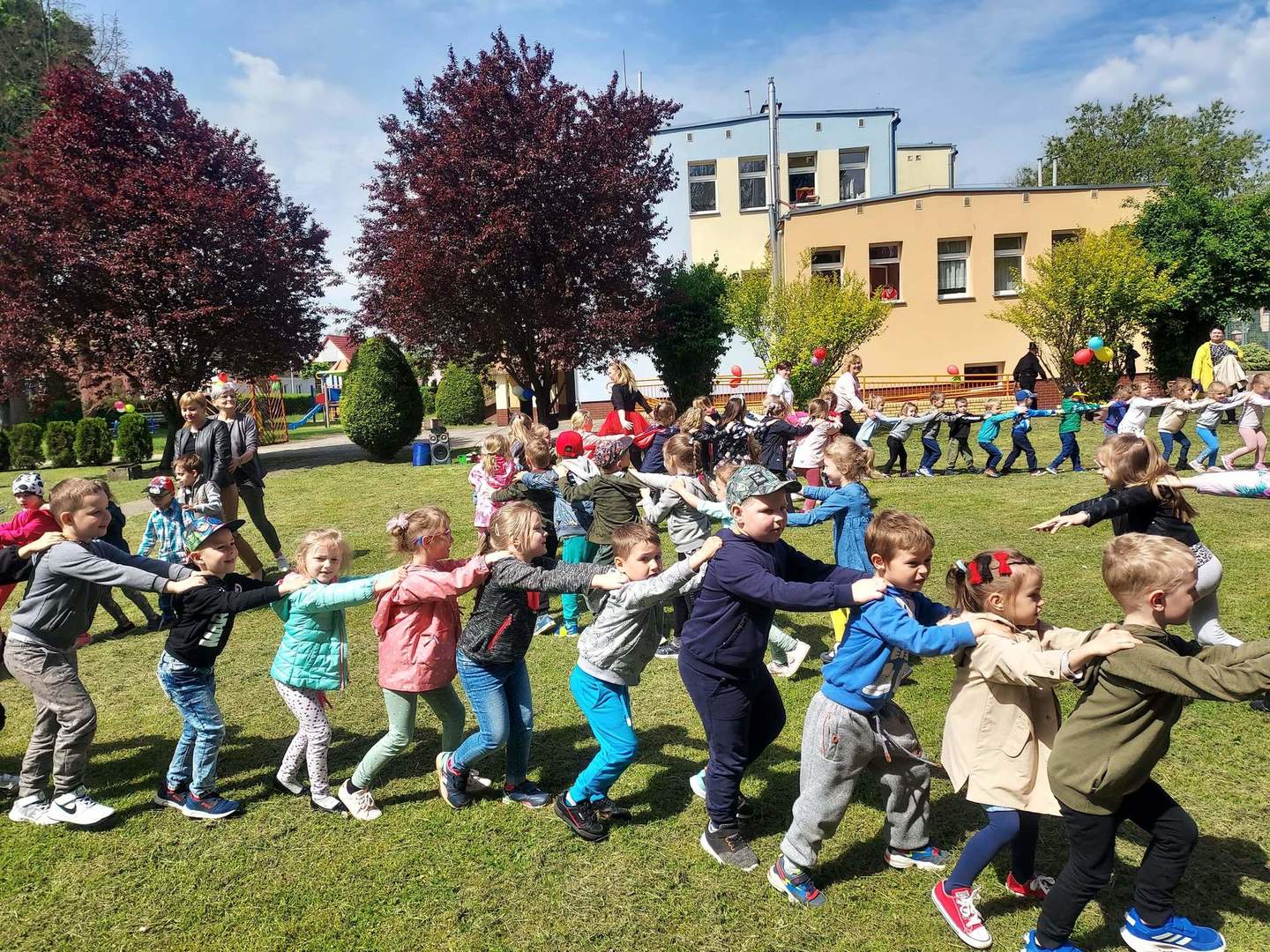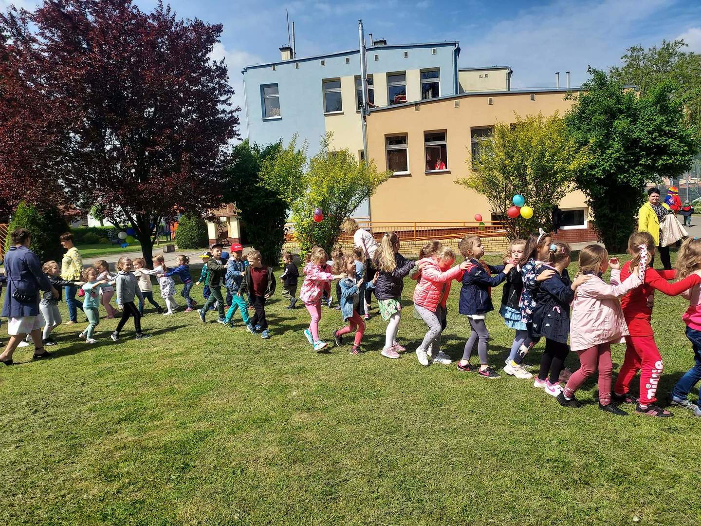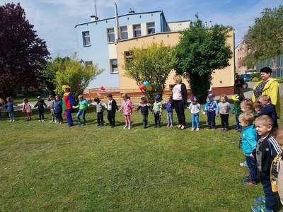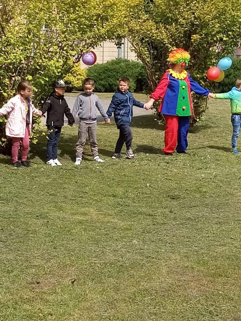 Piękna pogoda pozwoliła na spędzenie reszty tego dnia na placu przedszkolnym przystrojonym na tę okazję kolorowymi balonami. Ile okrzyków radości świadczących o dobrej zabawie rozlegało się dokoła. Wszystkie dzieci brały udział w tańcach przy muzyce. Wesoła zabawa, tańce i teatrzyk sprawiły, że był to wspaniały, niezapomniany czas. I oczywiście na wszystkie dzieci czekały słodkie paczuszki i balony. Każdy przedszkolak wracał dp domu z uśmiechem od ucha do ucha.