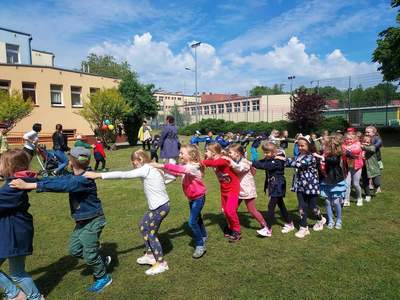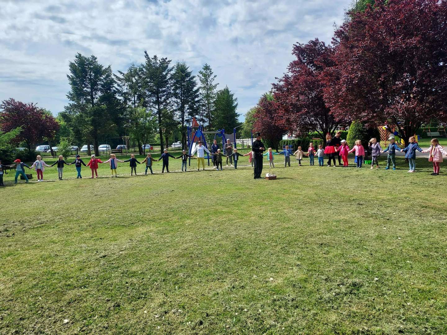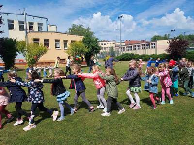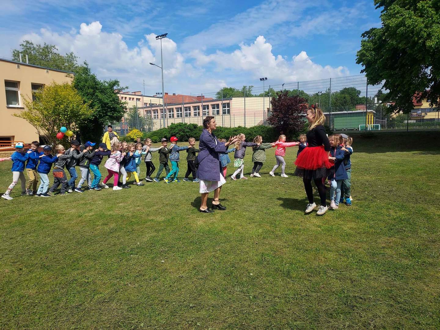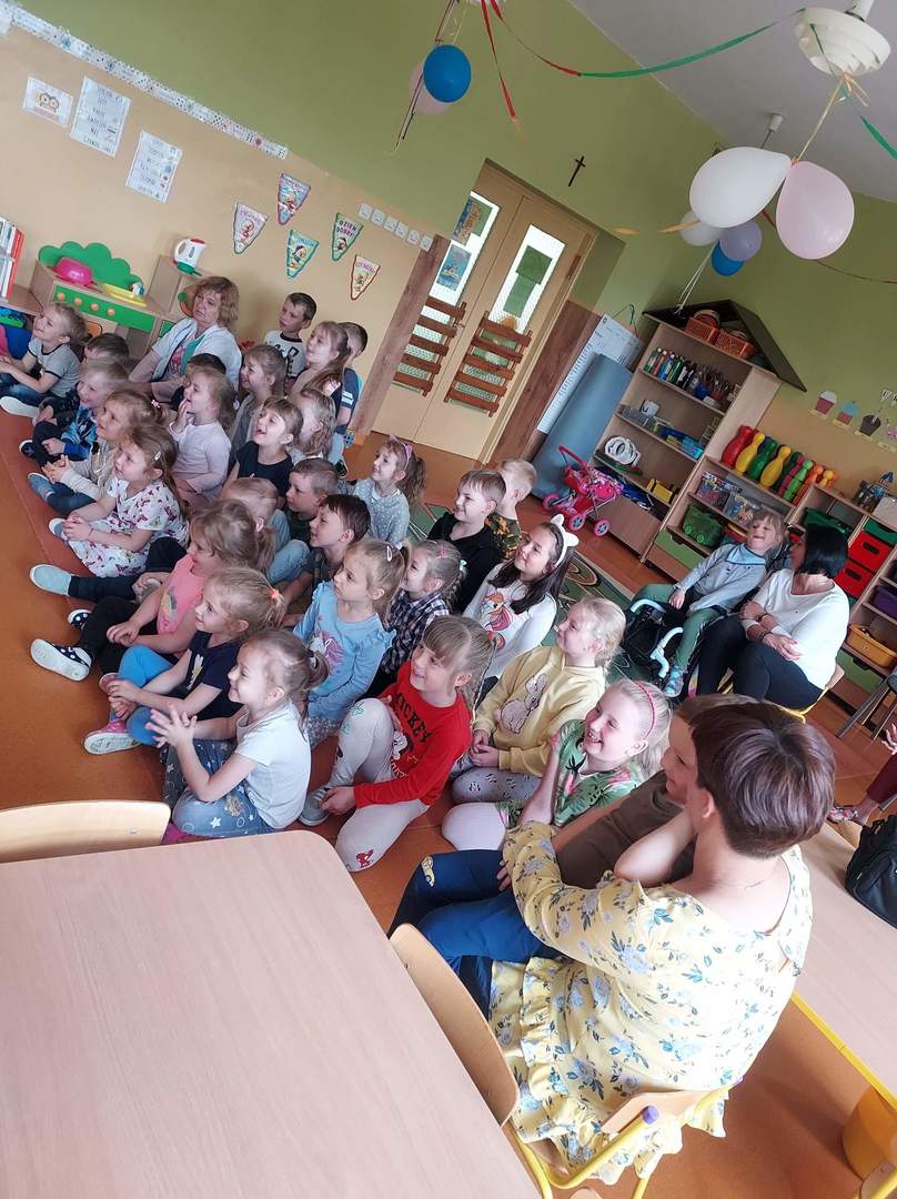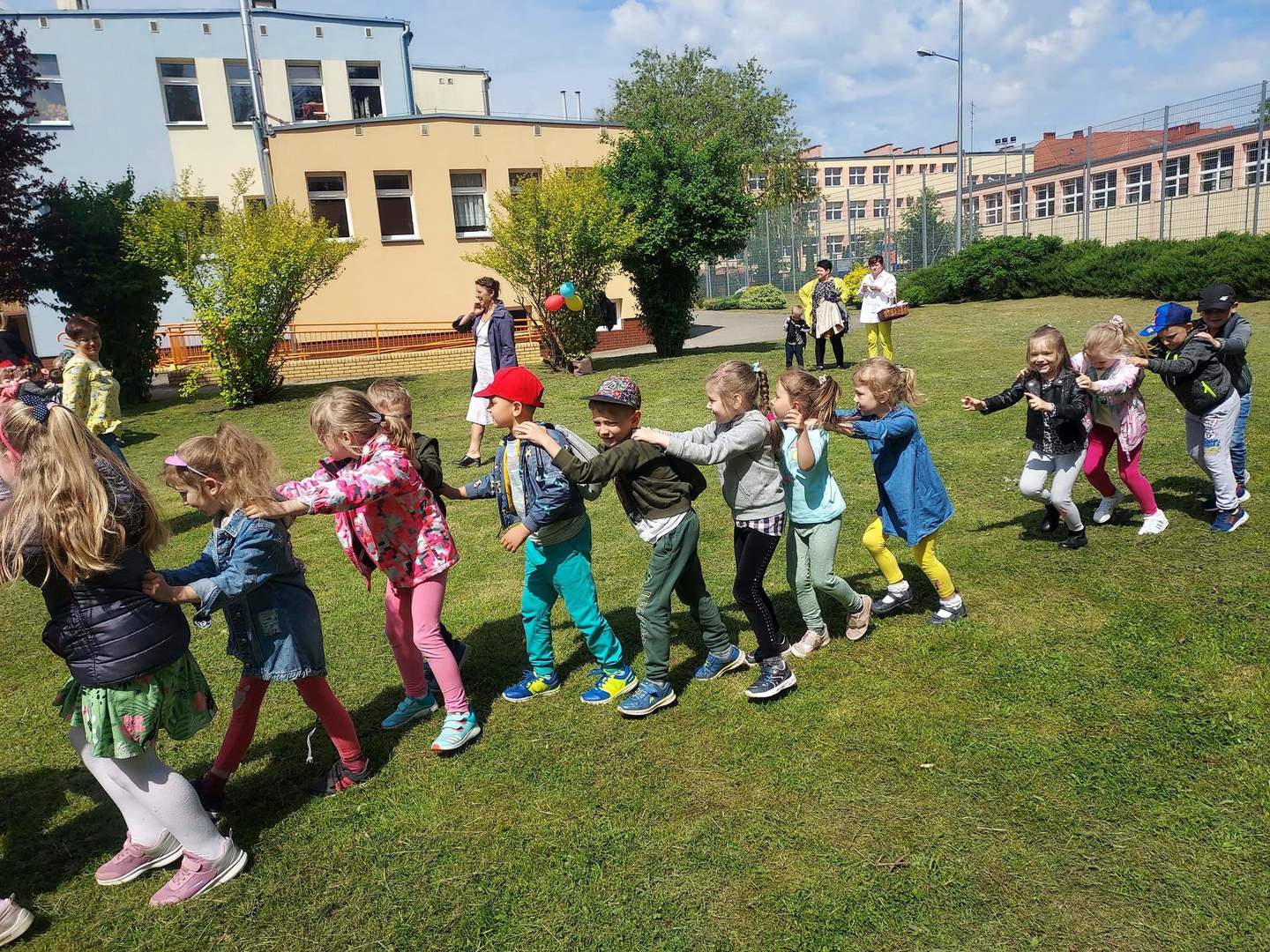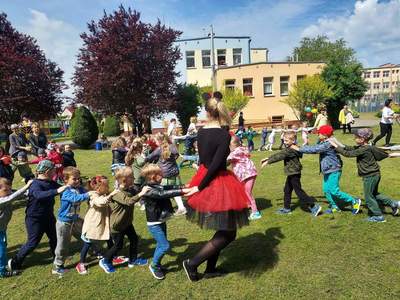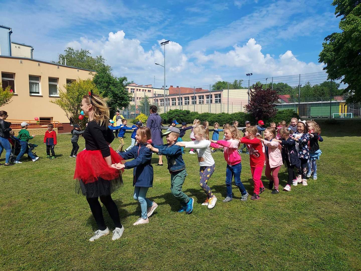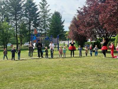 Piękna pogoda pozwoliła na spędzenie reszty tego dnia na placu przedszkolnym przystrojonym na tę okazję kolorowymi balonami. Ile okrzyków radości świadczących o dobrej zabawie rozlegało się dokoła. Wszystkie dzieci brały udział w tańcach przy muzyce. Wesoła zabawa, tańce i teatrzyk sprawiły, że był to wspaniały, niezapomniany czas. I oczywiście na wszystkie dzieci czekały słodkie paczuszki i balony. Każdy przedszkolak wracał dp domu z uśmiechem od ucha do ucha.