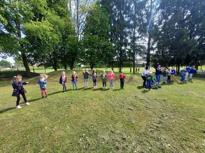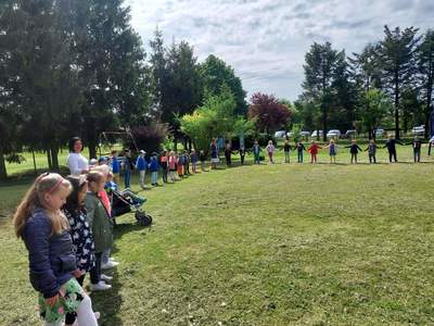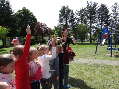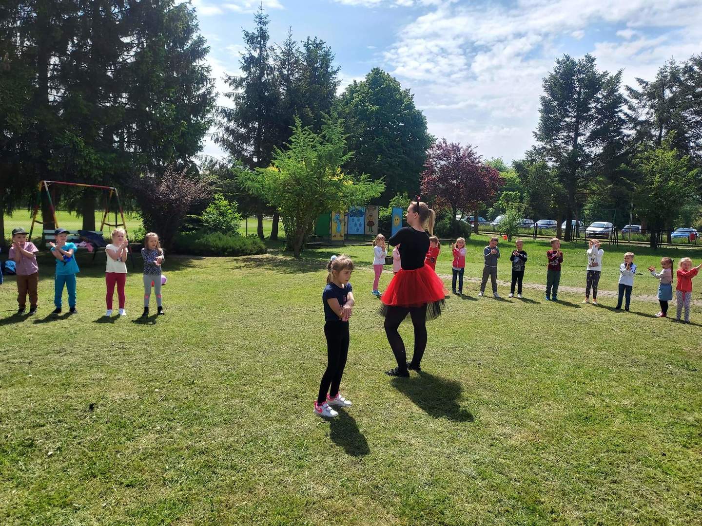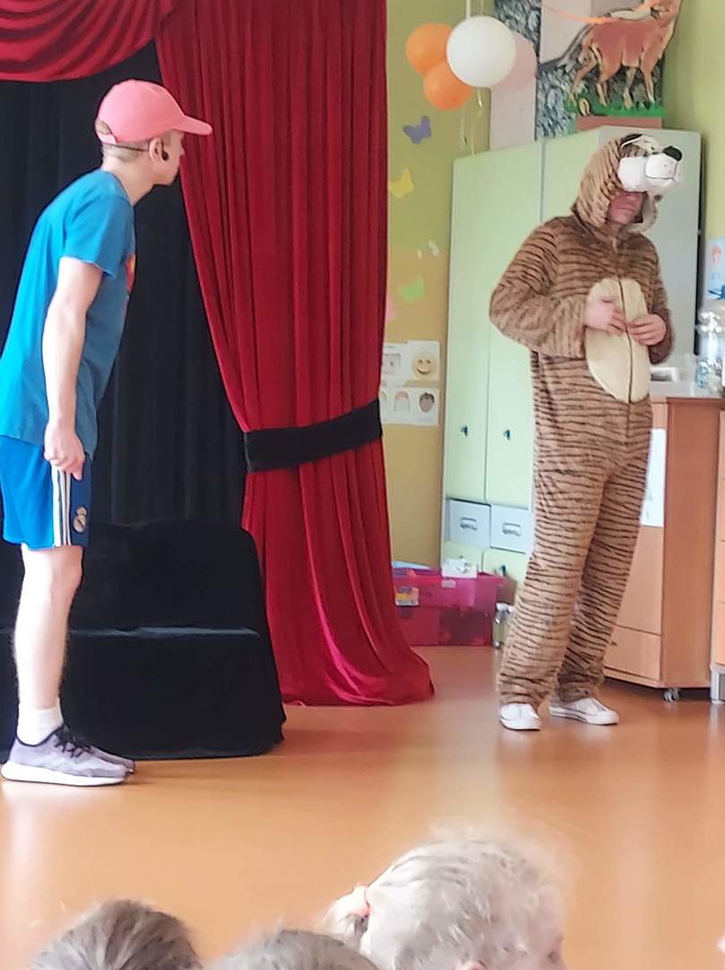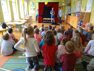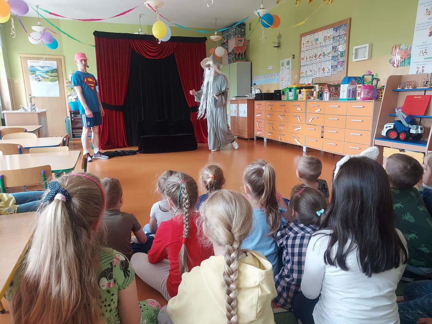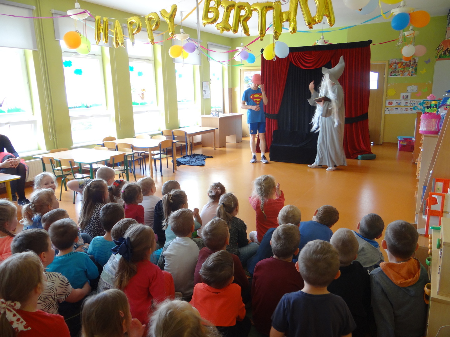 1 czerwca od rana rozbrzmiewała w przedszkolu wesoła muzyka, a dzieci witały uśmiechnięte "słoneczka" i częstowały je cukierkami. Tego dnia czekało na dzieci mnóstwo atrakcji. Jedną z nich był spektakl profilaktyczny pt. „Kraina przygód” w wykonaniu aktorów Teatru „Kurtyna” z Krakowa w ramach projektu finansowanego przez Gminną Komisję Rozwiązywania Problemów Alkoholowych. To pełna akcji i muzyki bajka, która pokazuje, że wyobraźnia dziecka nie zna granic. Jest to historia Krzysia, wesołego chłopca, który każdą wolną chwilę spędza ze swoją ulubioną maskotką o imieniu Stefan. Bajka rozpoczyna się rozmową Krzysia z tatą na temat bałaganu w jego pokoju i prośbą taty o posprzątanie zabawek. Ponieważ cała sytuacja ma miejsce wieczorem, zmęczony po całym dniu zabawy Krzyś zasypia w trakcie porządkowania swojego pokoju. Zaczyna śnić, a jego wyobraźnia nieoczekiwanie ożywia ulubione zabawki, które zabierają chłopca na wycieczkę do tytułowej Krainy Przygód. Aktorzy ukazali jak ważne w życiu są wartości, takie jak empatia i szacunek dla słabszych, pokazali również właściwe normy i wzorce zachowań godne naśladowania.