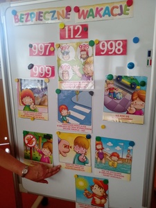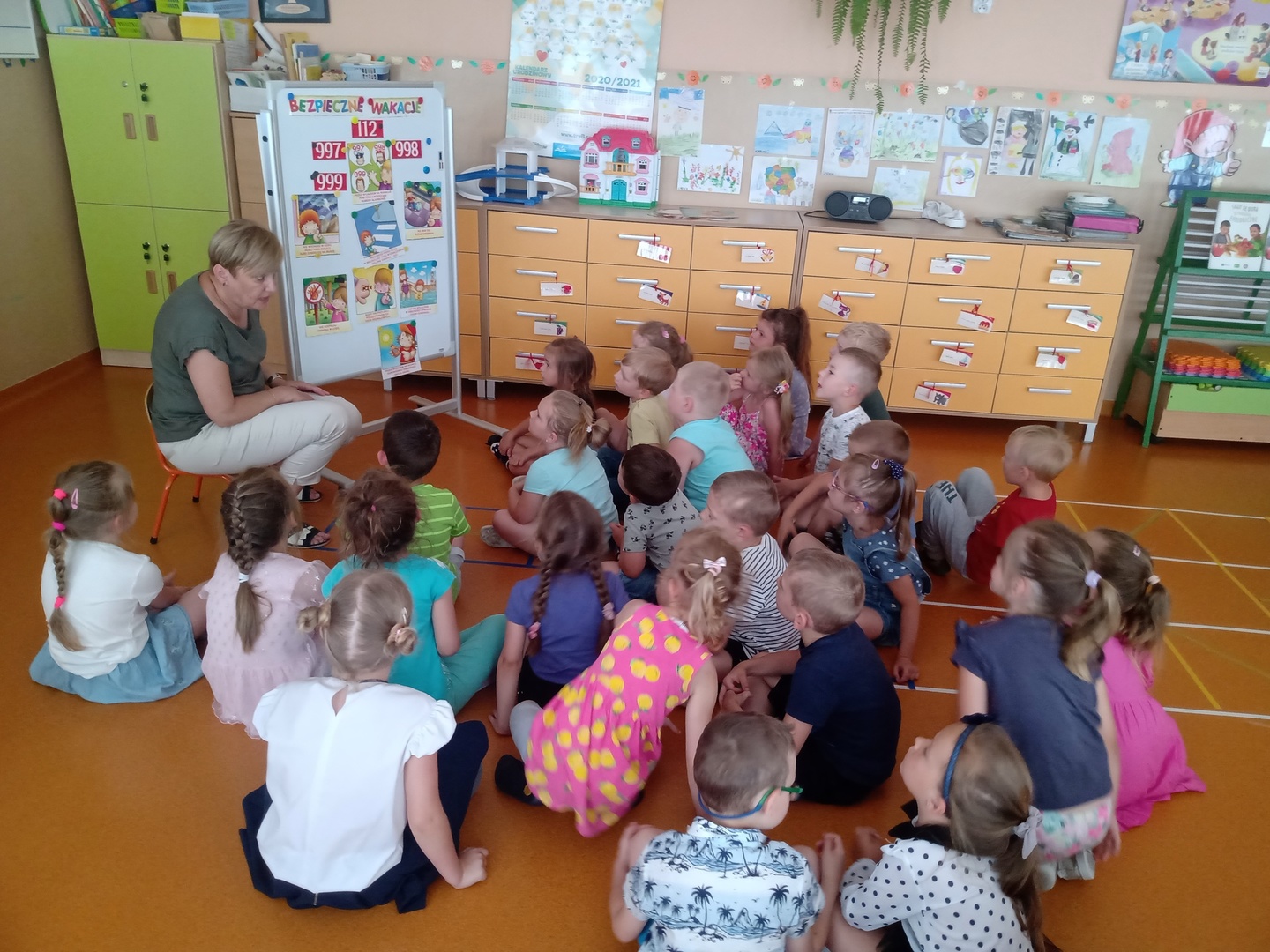 Dnia 23.06 dzieci z grupy "Biedronki" i "Tęczowe Nutki" uczestniczyły w zajęciach "Bezpieczne wakacje". Celem zajęć było wzmacnianie pozytywnych wzorców spędzania wolnego czasu i uwrażliwianie na aspekt bezpieczeństwa oraz wzrost świadomości na temat bezpiecznego spędzania wolnego czasu przez dzieci. Przedszkolaki podczas zajęć miały okazję utrwalić numery alarmowe oraz "zadzwonić" na policję, straż pożarną, karetkę oraz numer 112. Życzymy wszytskim bezpiecznych wakacji!:)
