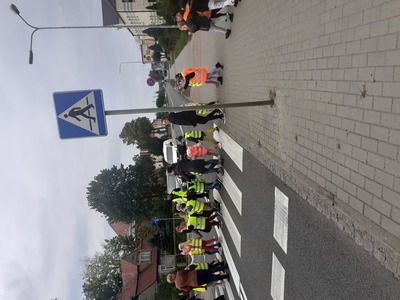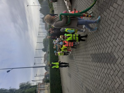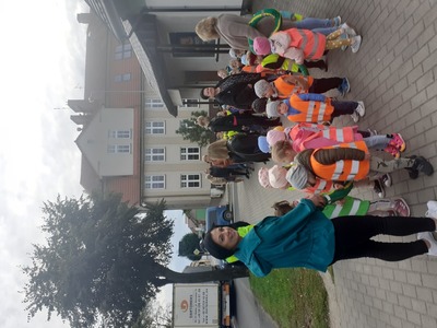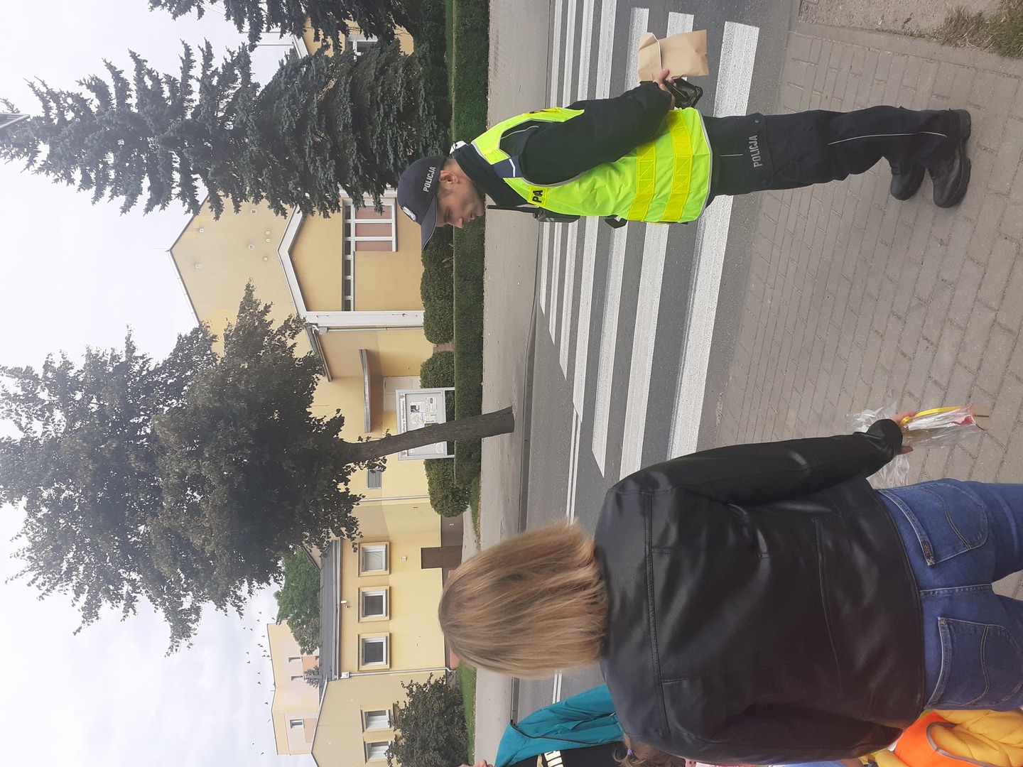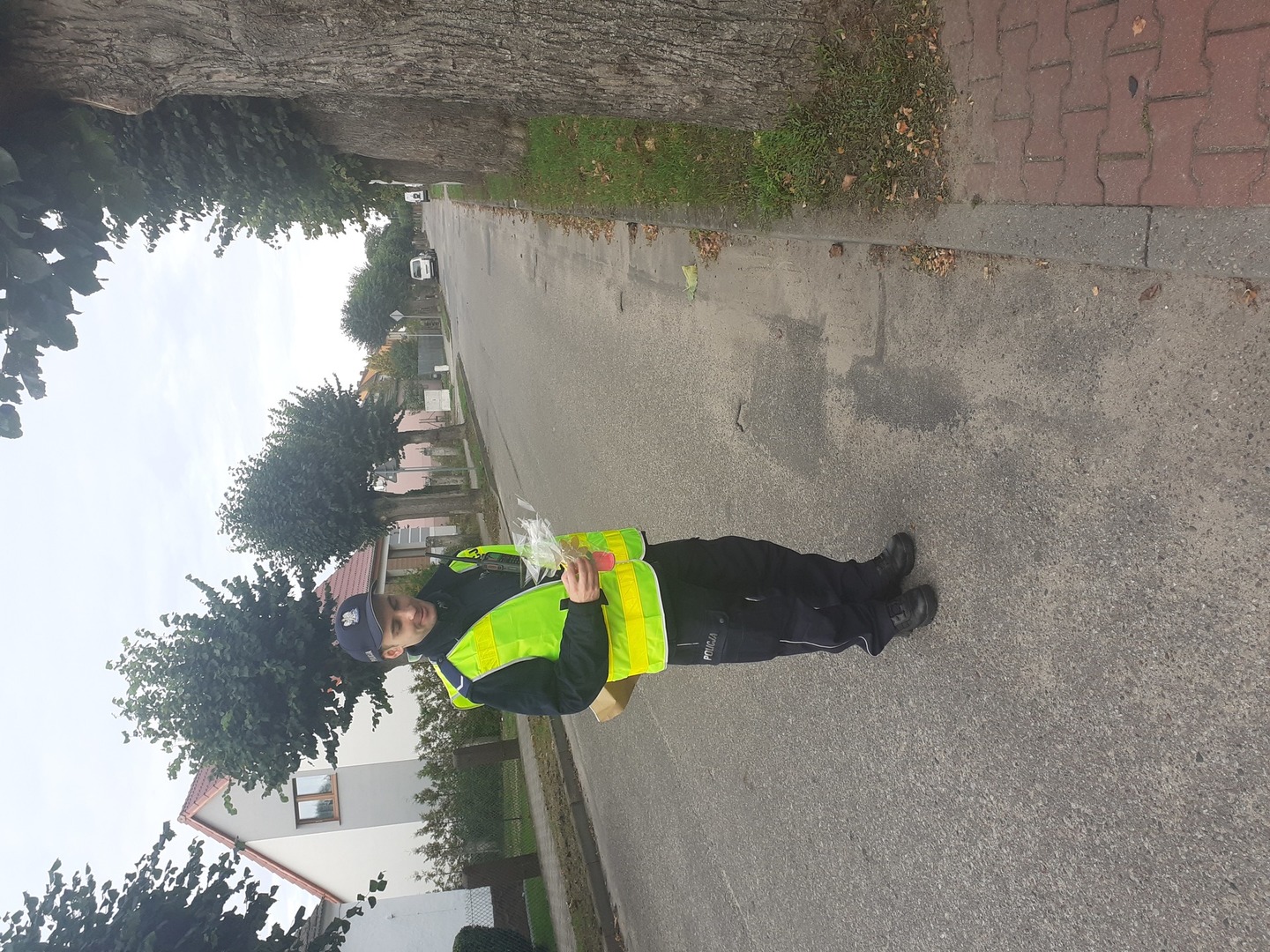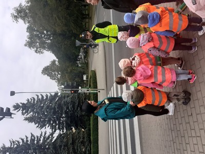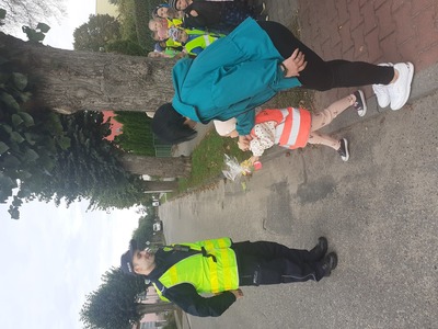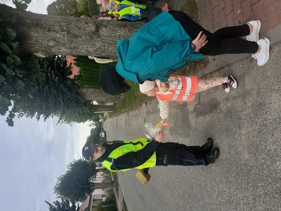 21 września dzieci z naszego przedszkola spotkały się z Policjantem, by utrwalić zasady bezpiecznego przechodzenia przez ulicę. Przedszkolaki ubrane w odblaskowe kamizelki udały się na spacer z Paniami i w asyście Policjanta, który dbał o bezpieczeństwo dzieci na drodze i przekazał ważne informacje dotyczące zachowania ostrożności na ulicy oraz rozpoznawania znaków drogowych. W podziękowaniu za spotkanie dzieci wręczyły Panu Policjantowi drobny upominek.