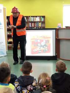 Dnia 22.09.2021r. "Biedronki" na zaproszenie Biblioteki Publicznej w Mirosławcu uczestniczyły w spotkaniu z Panem Romanem Pankiewiczem. Autor książek dla dzieci i podróżnik zapoznał dzieci z książkami pt.:"5 ważnych zawodów". Dzieci poznały zawód nauczycielki przedszkola, strażaka, żołnierza i policjanta. Aktywnie uczestniczyły w spotkaniu i wykazały się dużą wiedzą. Spotkanie było bardzo miłe i wartościowe. Dziękujemy.