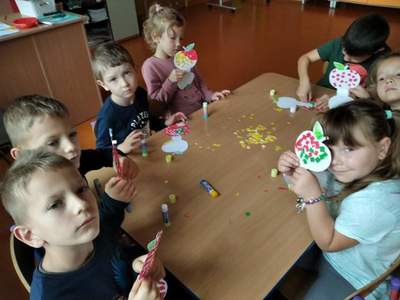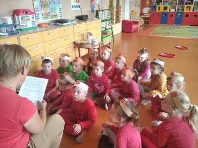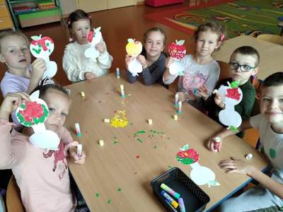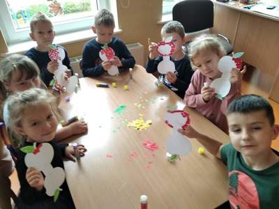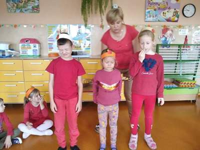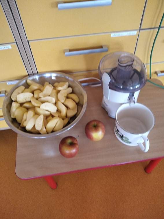 Realizując program ,,Skąd się biorą produkty ekologiczne’’ 29 września 2021r. w grupie Biedronki odbyły się zajęcia pod hasłem Jabłka – pyszne dary jesieni. Tego dnia przedszkolaki przyszły ubrane na czerwono. Dzieci wszechstronnie poszerzały wiedzę o jabłku. Poznawały budowę jabłka, rozpoznawały kształt, zapach, kolor, smak. Zdobywały wiadomości na temat potraw i przetworów z jabłek. Ponadto rozwiązywały zagadki, słuchały wierszy i piosenek o jabłuszku. Przedszkolaki ze smakiem degustowały jabłuszka i powstały z nich sok. Każde dziecko z pewnością zapamięta, że jabłka są nie tylko smaczne ale i zdrowe.