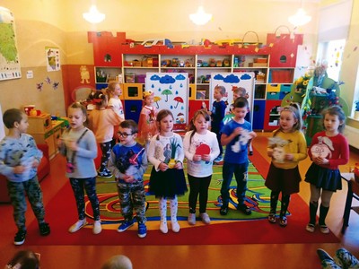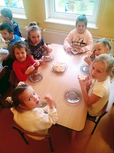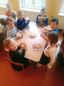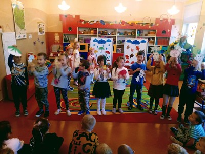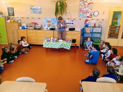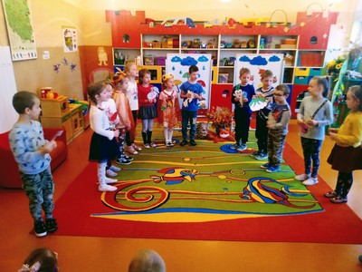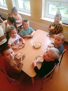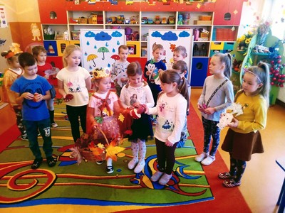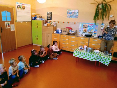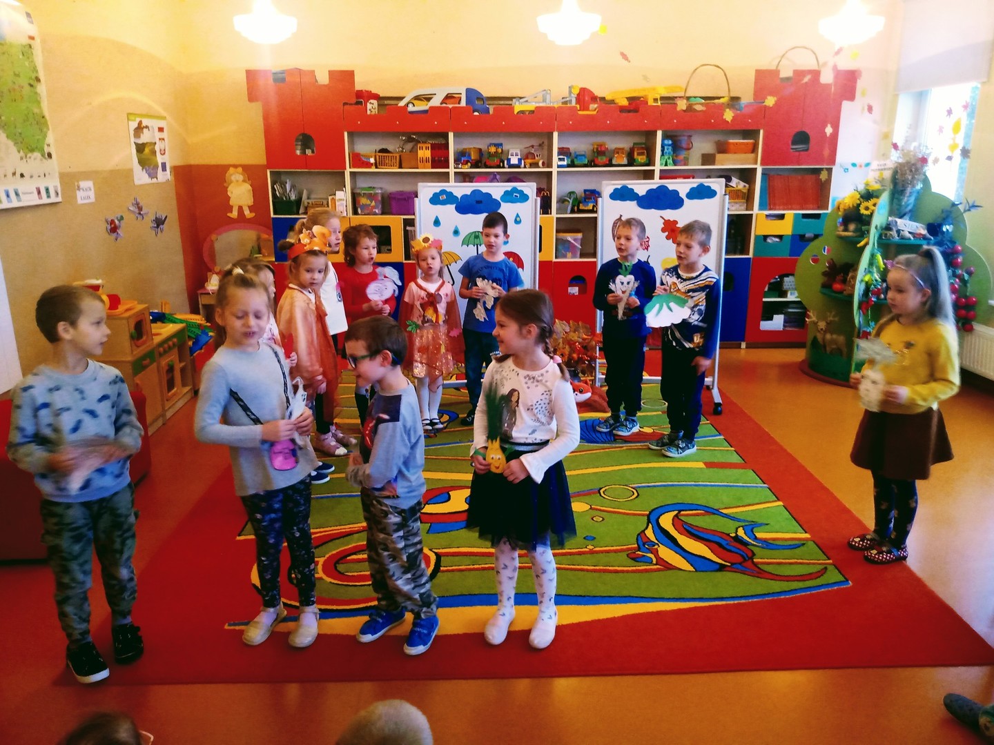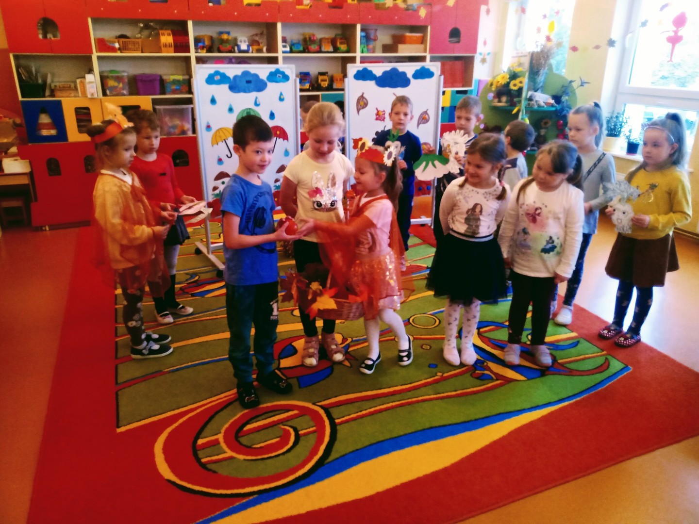 Dnia 21 października Biedronki i Tęczowe Nutki zaprezentowały jesienne przedstawienie złożone z inscenizacji, piosenek i wierszy. Przedszkolaki realizując program "Skąd się biorą produkty ekologiczne" utrwaliły zdobytą wiedzę na temat wytwarzania produktów zbożowych, mlecznych oraz buraków cukrowych a także wykorzytsania ich w kuchni. Wykorzystując mąkę, mleko i słodki dżem owocowy dzieci upiekły pyszne gofry. Sprawiło to dużo radości i uśmiechu a także dało dużo zdrowia.