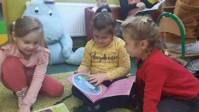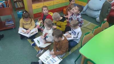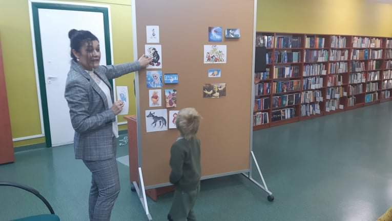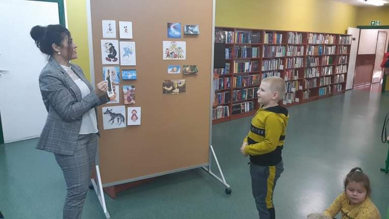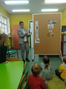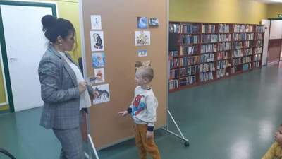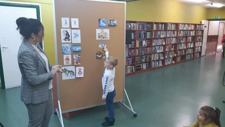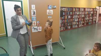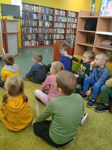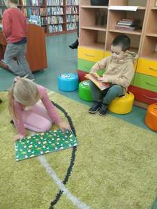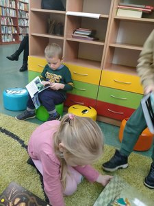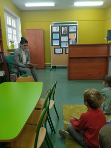 Dnia 29 października Tęczowe Nutki i Deszczowe Kropelki odwiedziły Bibliotekę Publiczą w Mirosławcu. Dzieci przywitała bardzo miła Pani Jola, która opowiedziała o zasadch jakie panują w bibliotece, pokazałe przeróżne ciekawe książki oraz przeczytała książkę, pt.: "Franklin i książka z biblioteki". W czytelni odbył się również quiz bajkowy, w którym aktywnie uczestniczyły nasze przedszkolaki. Na koniec Pani Jola włączyła dzieciom nagranie piosenki "Biblioteka". W prezencie przedszkolaki dostały zakładki do książek.