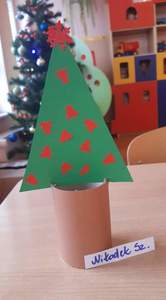 22 grudnia "Tęczowe Nutki" wykonały pracę plastyczną pt.: "Ekologiczna choinka". Jest to kolejne zadanie z projektu "Świat przyrody w oczach dziecka". Podczas zajęć przedszkolaki śpiewały kolędy.