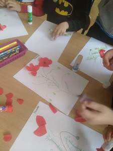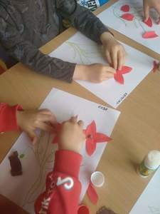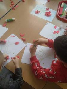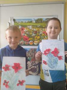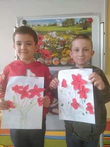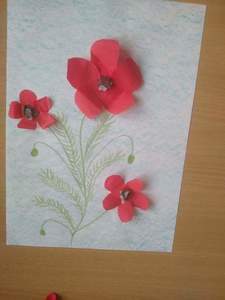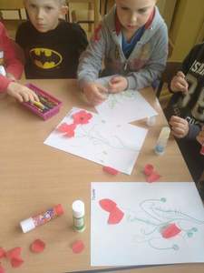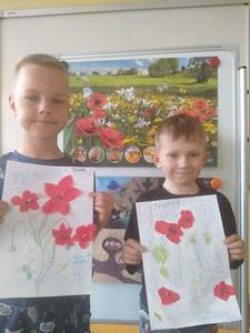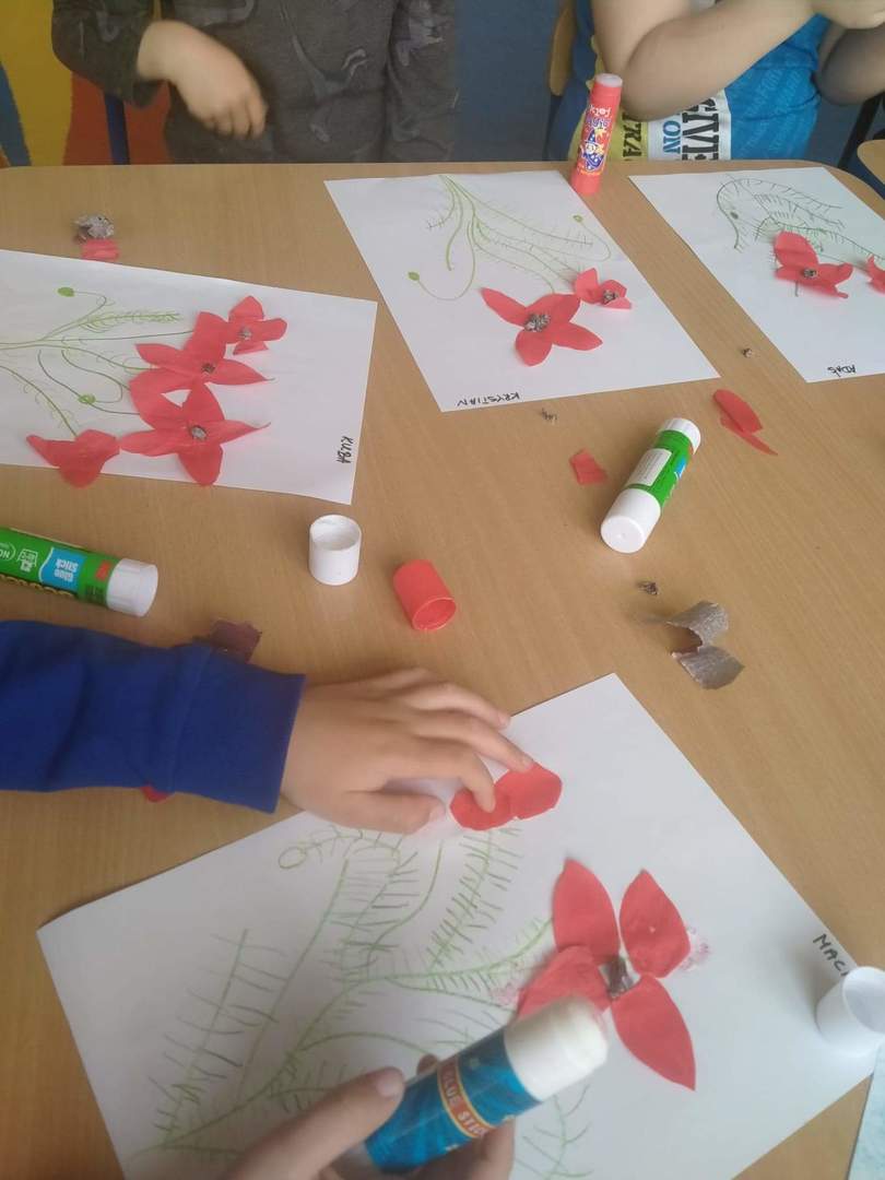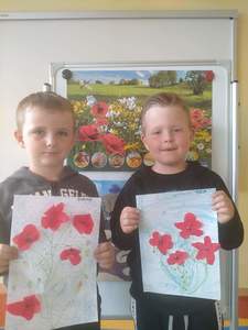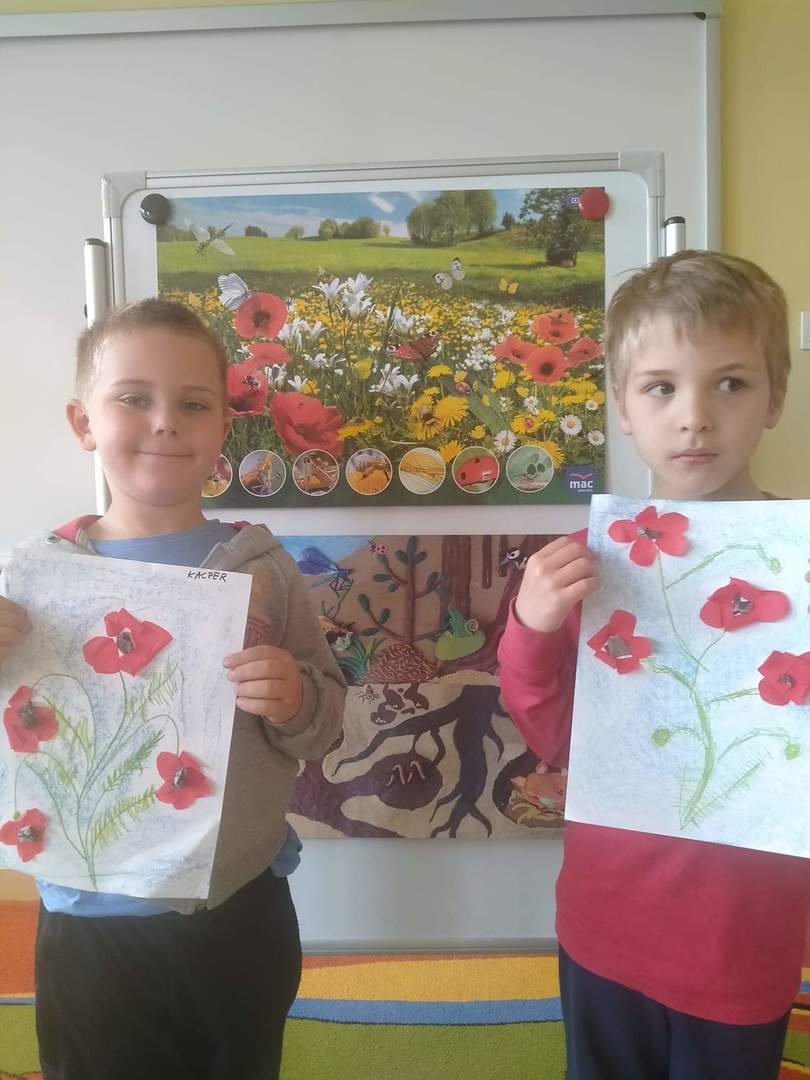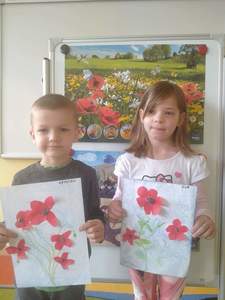 Dzieci z grupy ,,Deszczowe Kropelki" zrealizowały zadanie majowe z projektu ,,Oto Halabała zna go Polska cała". Wykonały pracę plastyczną pt,, Maki".