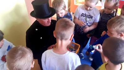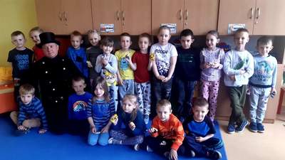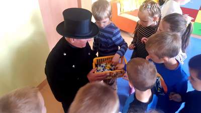 2 czerwca, z okazji Dnia Dziecka, odwiedził przedszkolaki kominiarz - Pan Leszek Mazur. Miły gość opowiedział dzieciom na czym polega praca kominiarza i dlaczego jest ubrany na czarno. Przedszkolaki z zainteresowaniem wysłuchały wszystkich ciekawostek. Pan Leszek, z okazji święta wszystkich dzieci, poczęstował je pysznymi cukierkami. Bardzo dziękujemy za miłą niespodziankę.