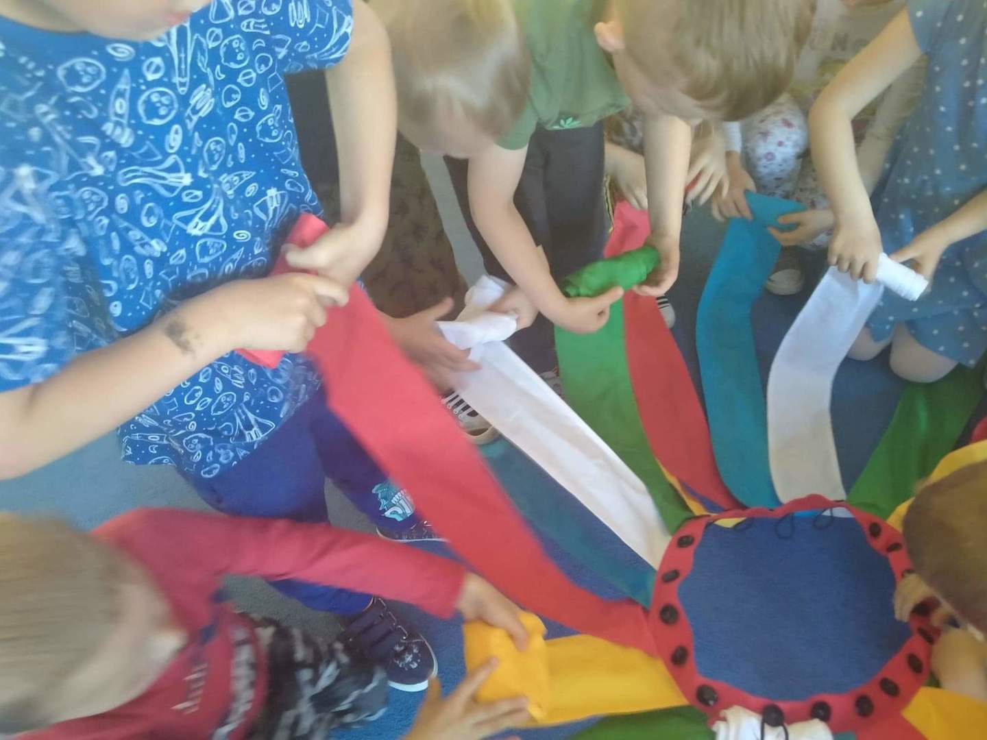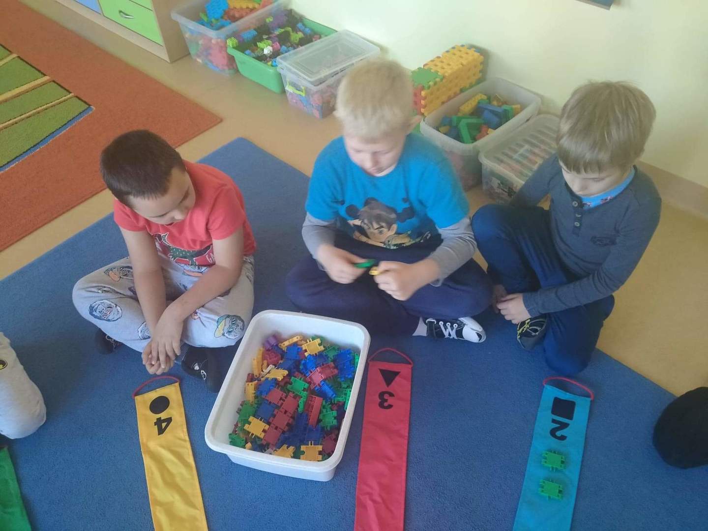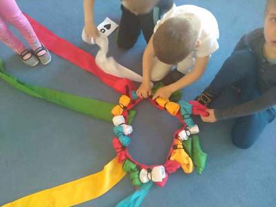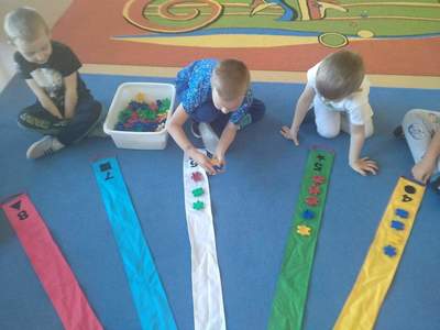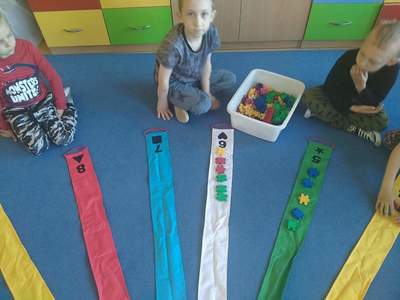 Przedszkolaki z grupy "Deszczowe Kropelki" poznały wiatrak matematyczny. Podczas wspólnych zabaw utrwaliły pojęcia matematyczne: figury geometryczne, kształty, kolory. Na poznanych cyfrach ułożyły tyle samo klocków. Dodawały i odejmowany, utrwaliły dni tygodnia i miesiące. Pobudzały wyobraźnię, uczyły się współpracy i działania w grupie. A przy tym świetne się bawiły.