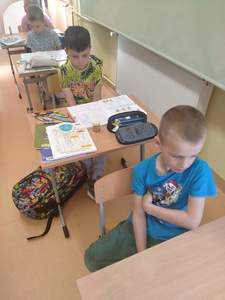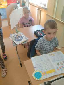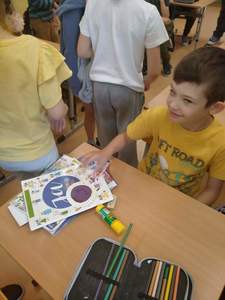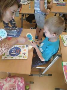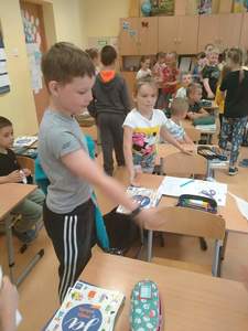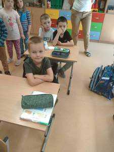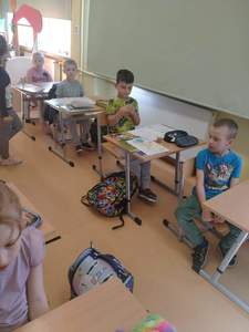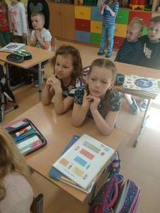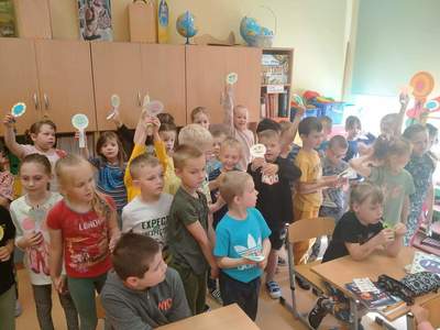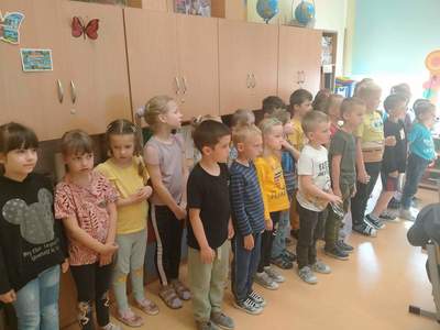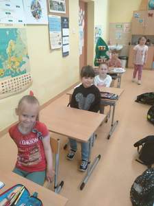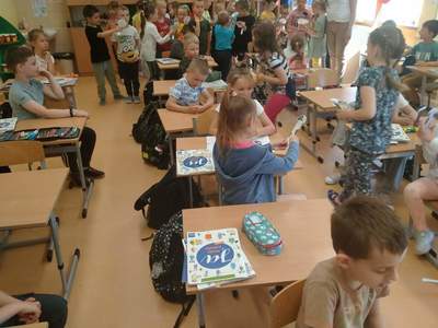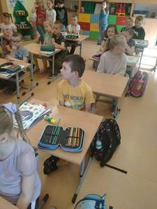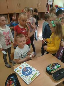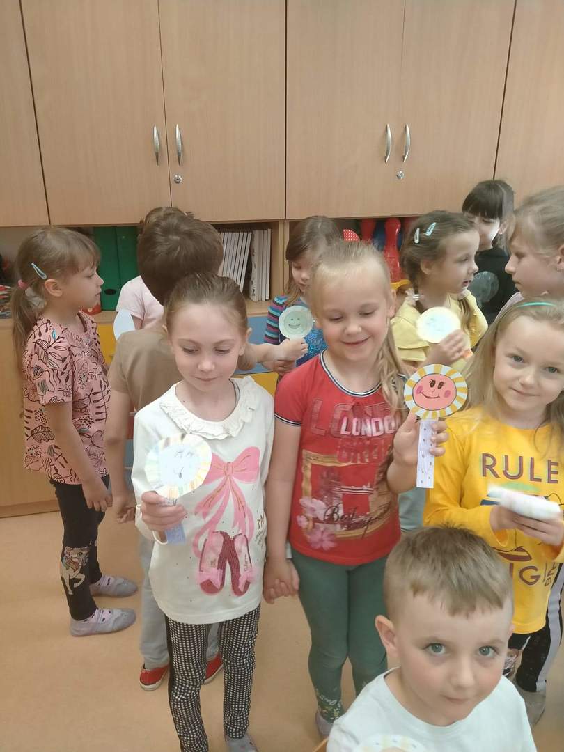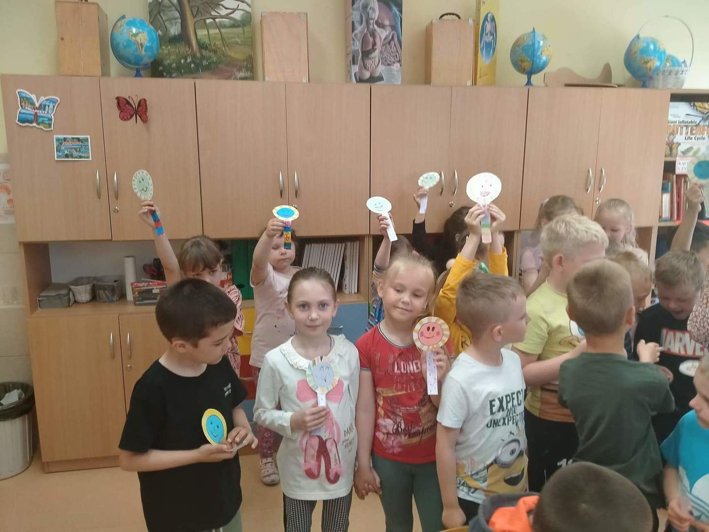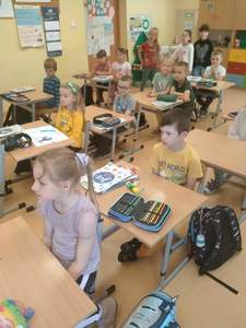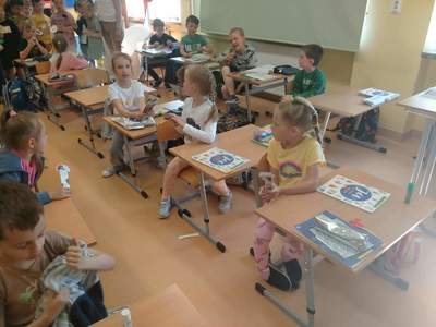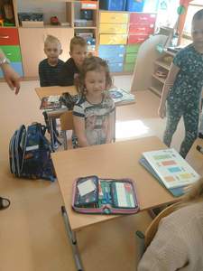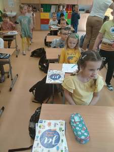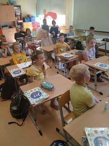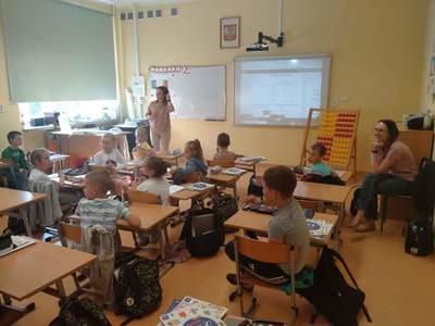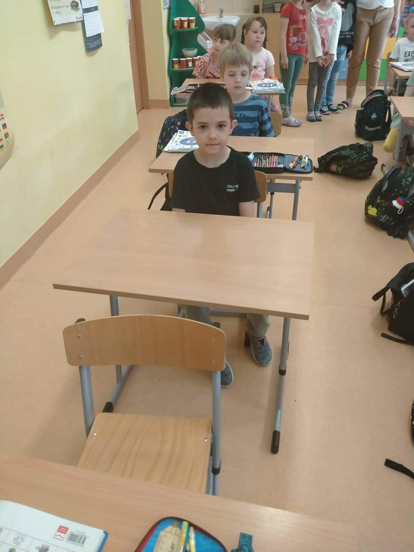 Dnia 7.06.2022r. "Biedronki" i "Tęczowe Nutk" i odwiedziły klasę szkolną. Dzieci miały okazję zobaczyć jak wygląda klasa i jej wyposażenie. Mogły posiedzieć przy stoliku pierwszaków, obejrzeć ich książki i przybory szkolne. Pani Kasia opowiedziała czego już nauczyły się pierwszaki. Zaprosiła wszystkie dzieci aby bez strachu i z uśmiechem na buzi przyszły do szkoły po wakacjach. Pierwszaki wręczyły przedszkolakom lizak papierowy z uśmiechem, a przedszkolaki zrobione przez siebie zakładki do książek. Panie życzyły dzieciom zdrowych, wesołych i bezpiecznych wakacji.