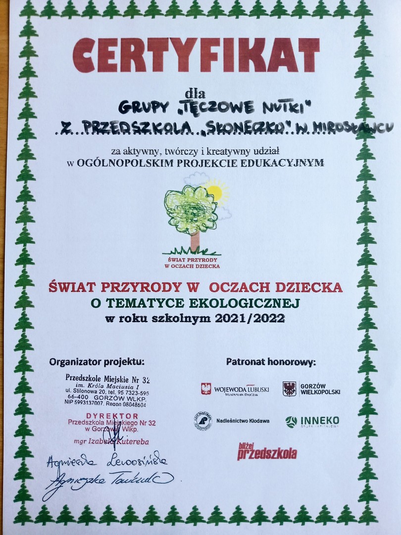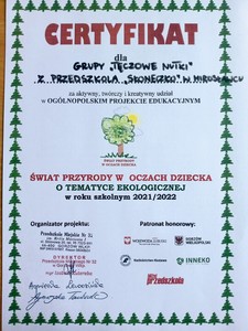 Grupa Tęczowe Nutki przez cały rok szkolny 2021/2022 realizowała ogólnopolski projekt edukacyjny "Świat przyrody w oczach dziecka".