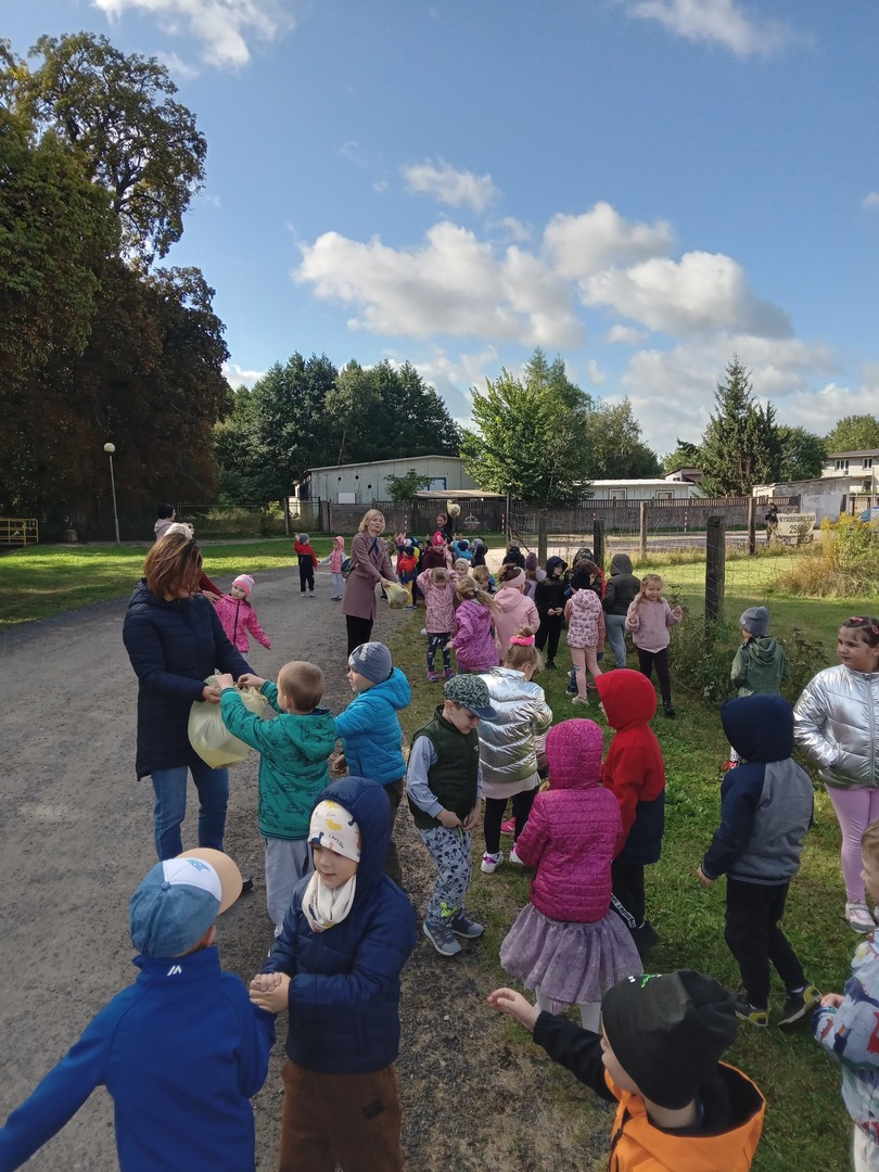 16 września przedszkolaki wzięły udział w Akcji Sprzątania Świata, która jest dla dzieci atrakcyjną, aktywną formą edukacji ekologicznej oraz realną lekcją ochrony środowiska, dzięki której uczą się bardziej przyjaznego stosunku do naszej planety. Dzielne i pełne zapału przedszkolaki wraz z paniami i Panią Małgorzatą Butkiewicz - Specjalistą SL ds. eduakcji przyrodniczo - leśnej i ochrony przyrody z Nadleśnictwa w Mirosławcu, wyruszyły na wielkie porządkowanie terenu przy fosie w Mirosławcu. Mamy nadzieję, że doświadczenie zdobyte podczas udziału w akcji zaowocuje w przyszłości dobrymi i ekologicznymi nawykami, wzbudzi w dzieciach wrażliwość emocjonalną oraz odpowiedzialność za własną przyszłość i stan środowiska naturalnego.